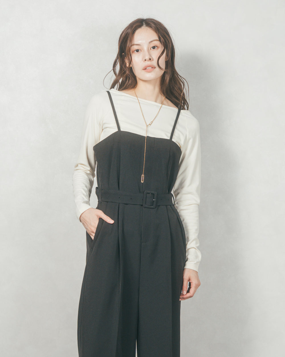ウエストベルト付 Twillキャミサロペ (BLACK)