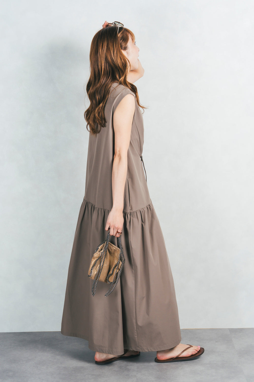 切替のティアード部分に、ギャザーが施されているのもポイントです。サイドポケット付きで使い勝手も◎