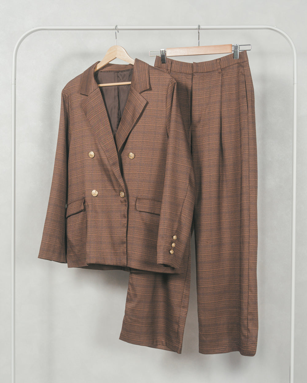 [SET]Effortless チェックジャケット+Effortless チェックタックパンツ(2SET)
