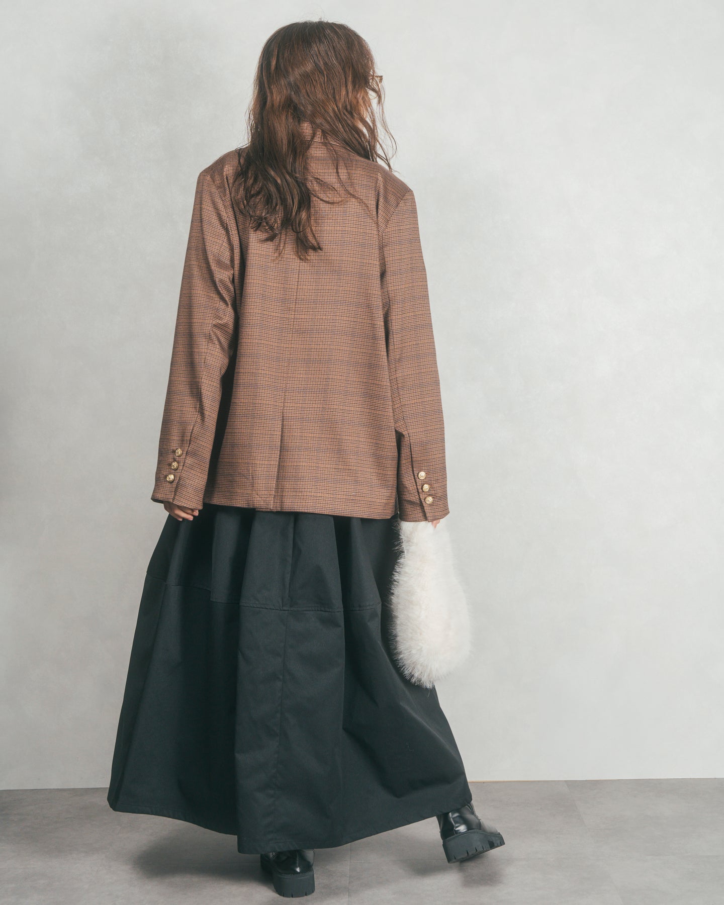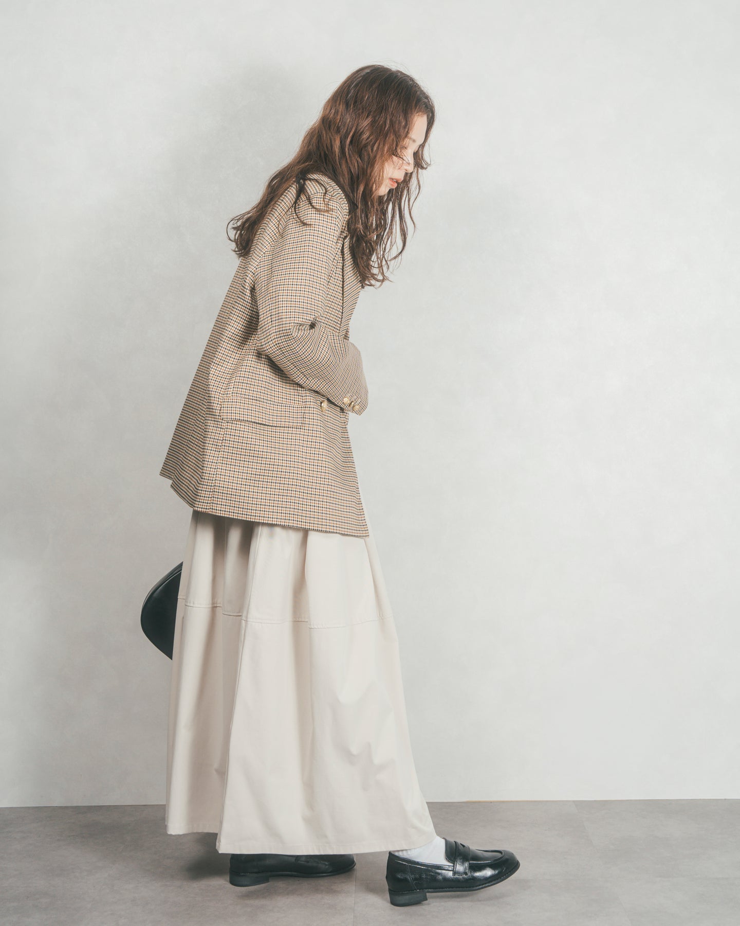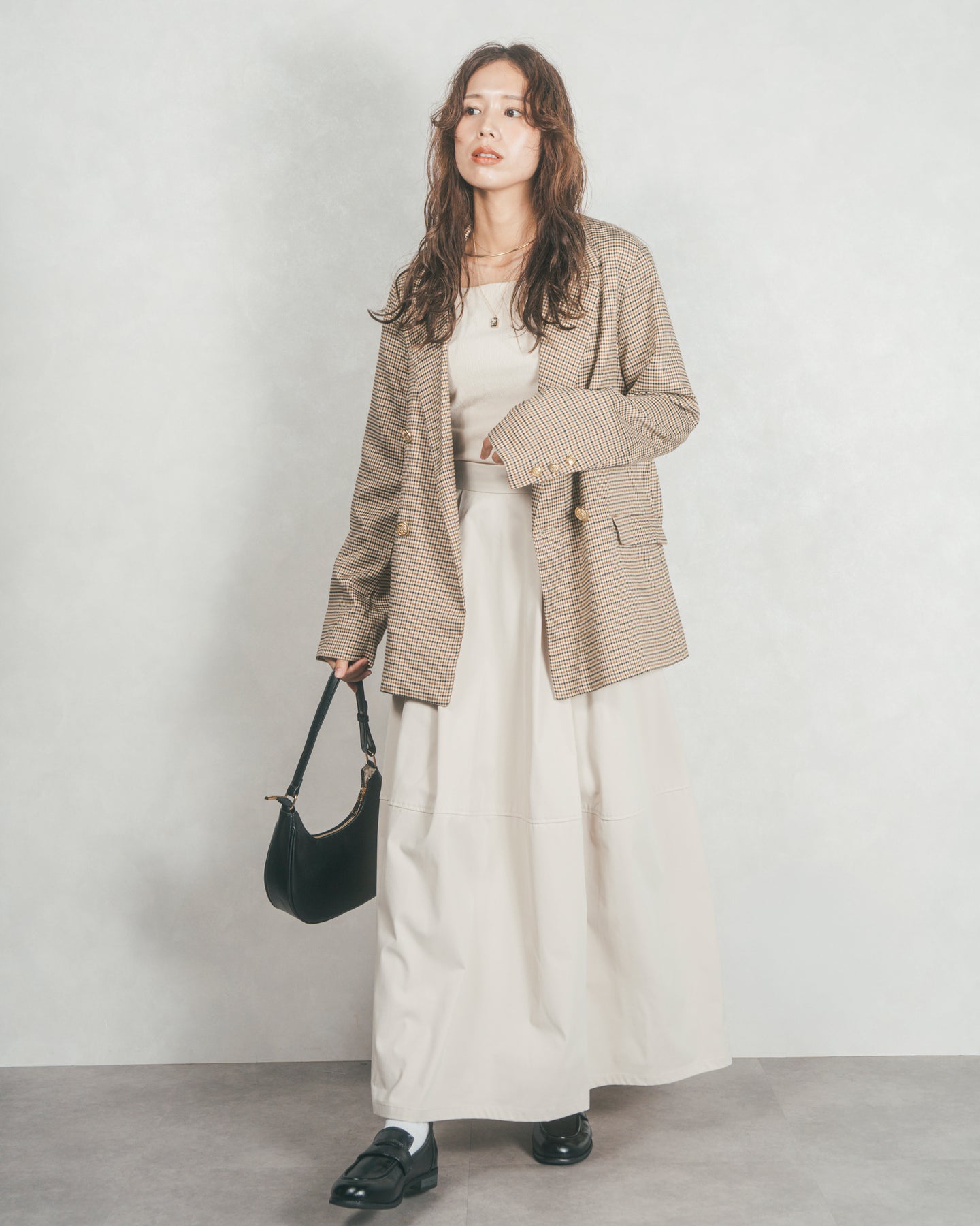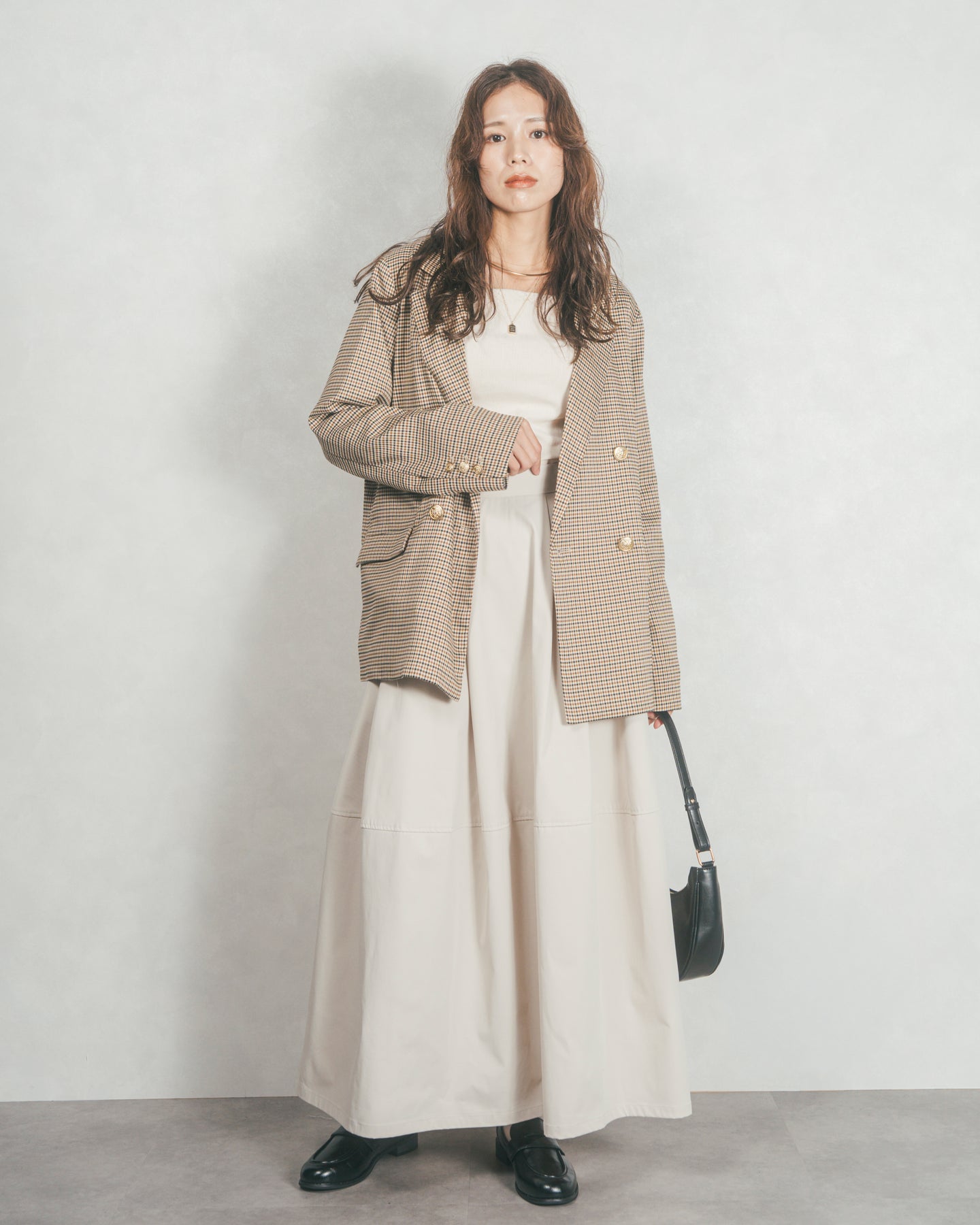 [SET]Effortless チェックジャケット+コクーンシルエットロングスカート(2SET)