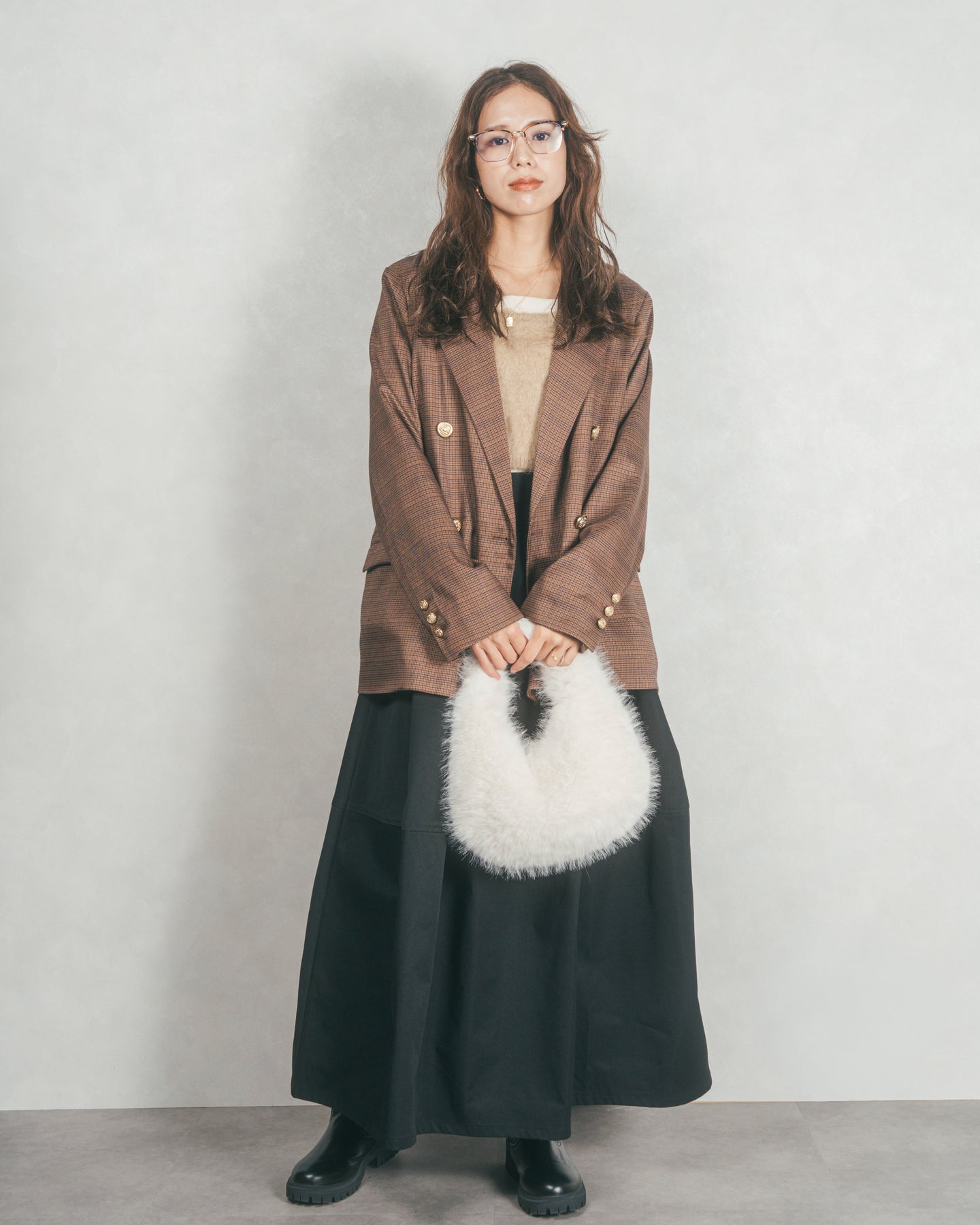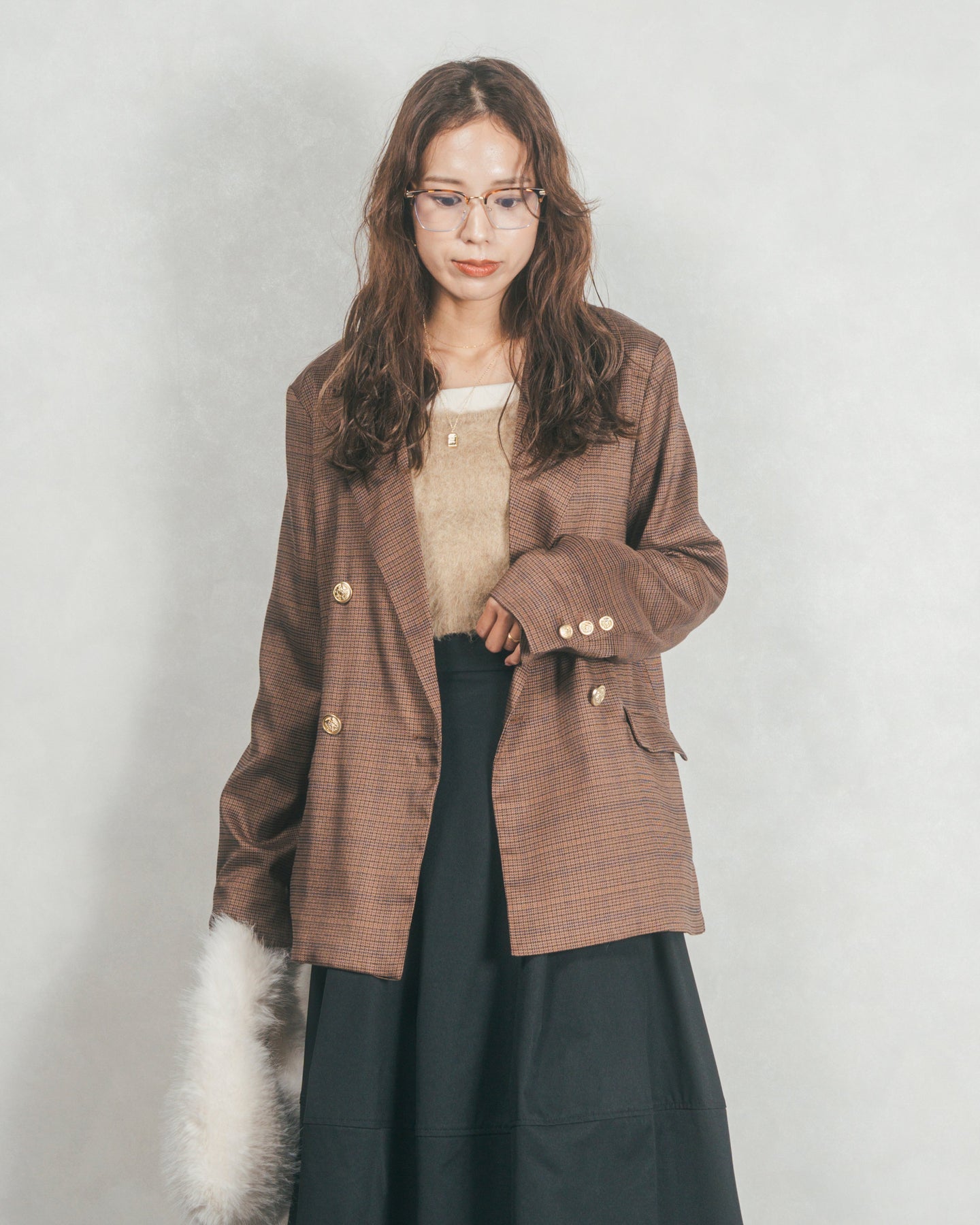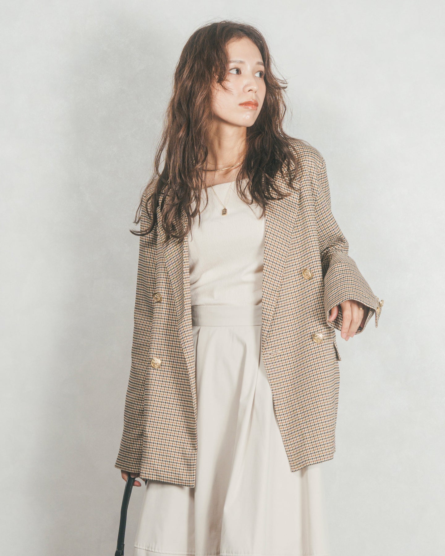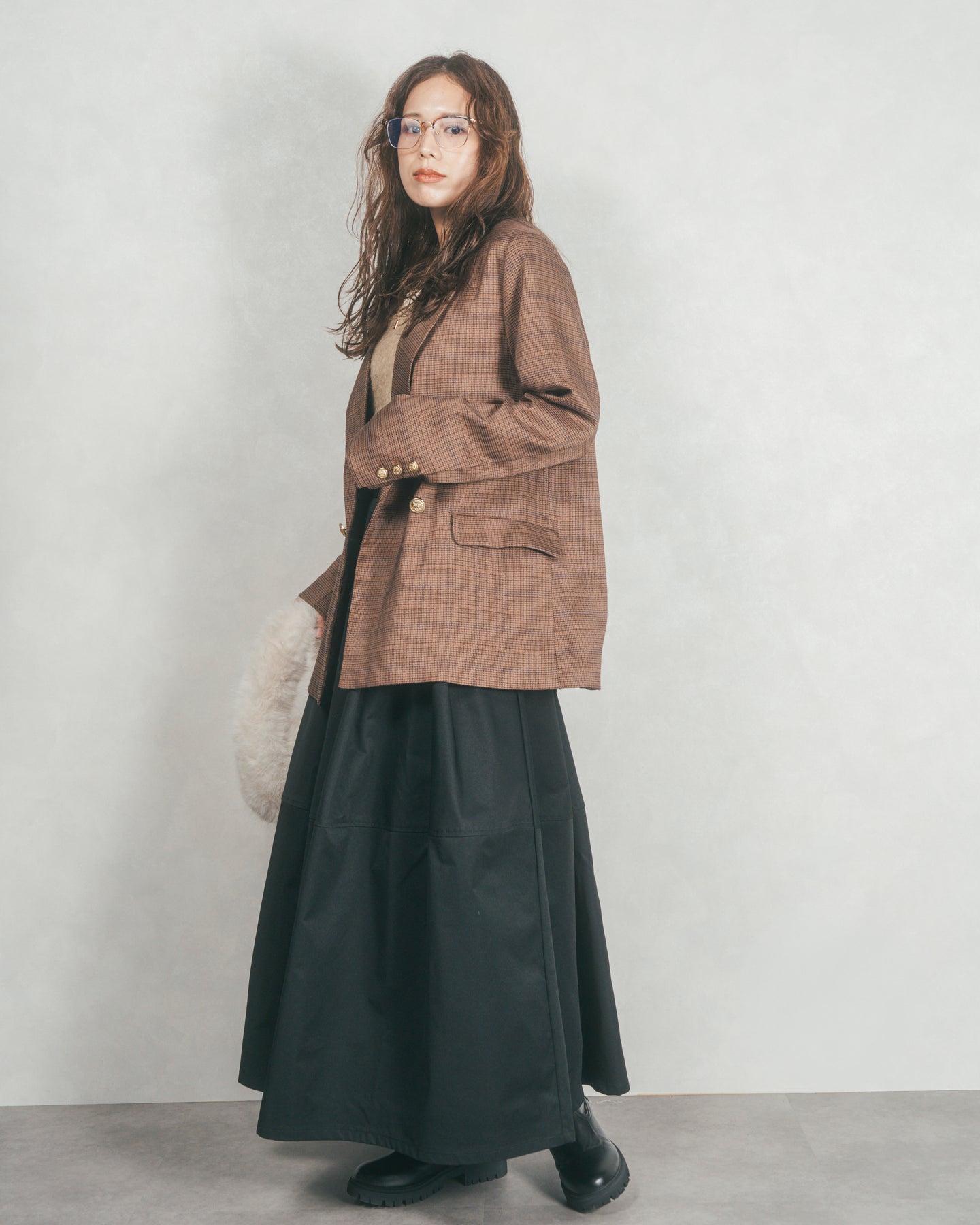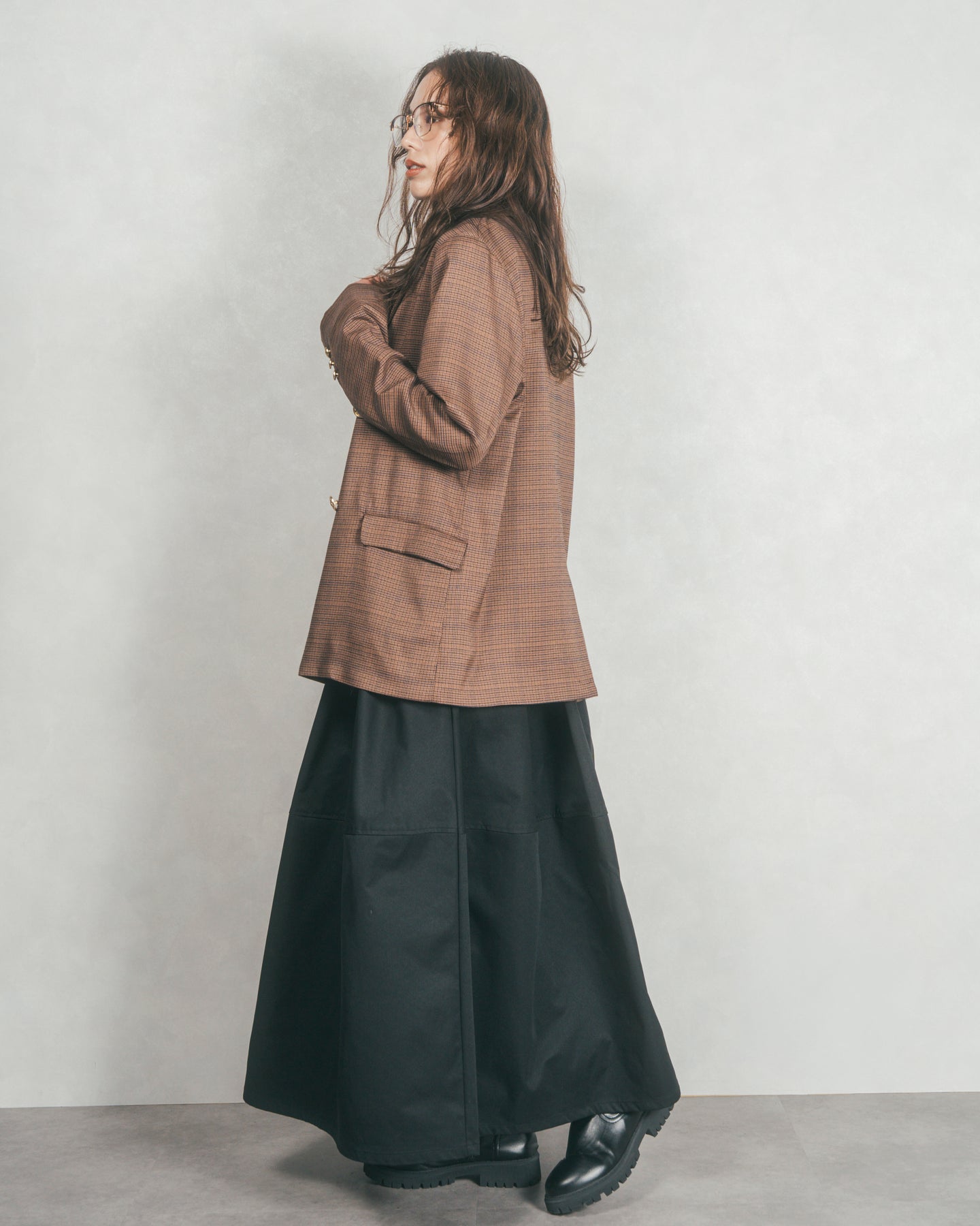 [SET]Effortless チェックジャケット+コクーンシルエットロングスカート(2SET)