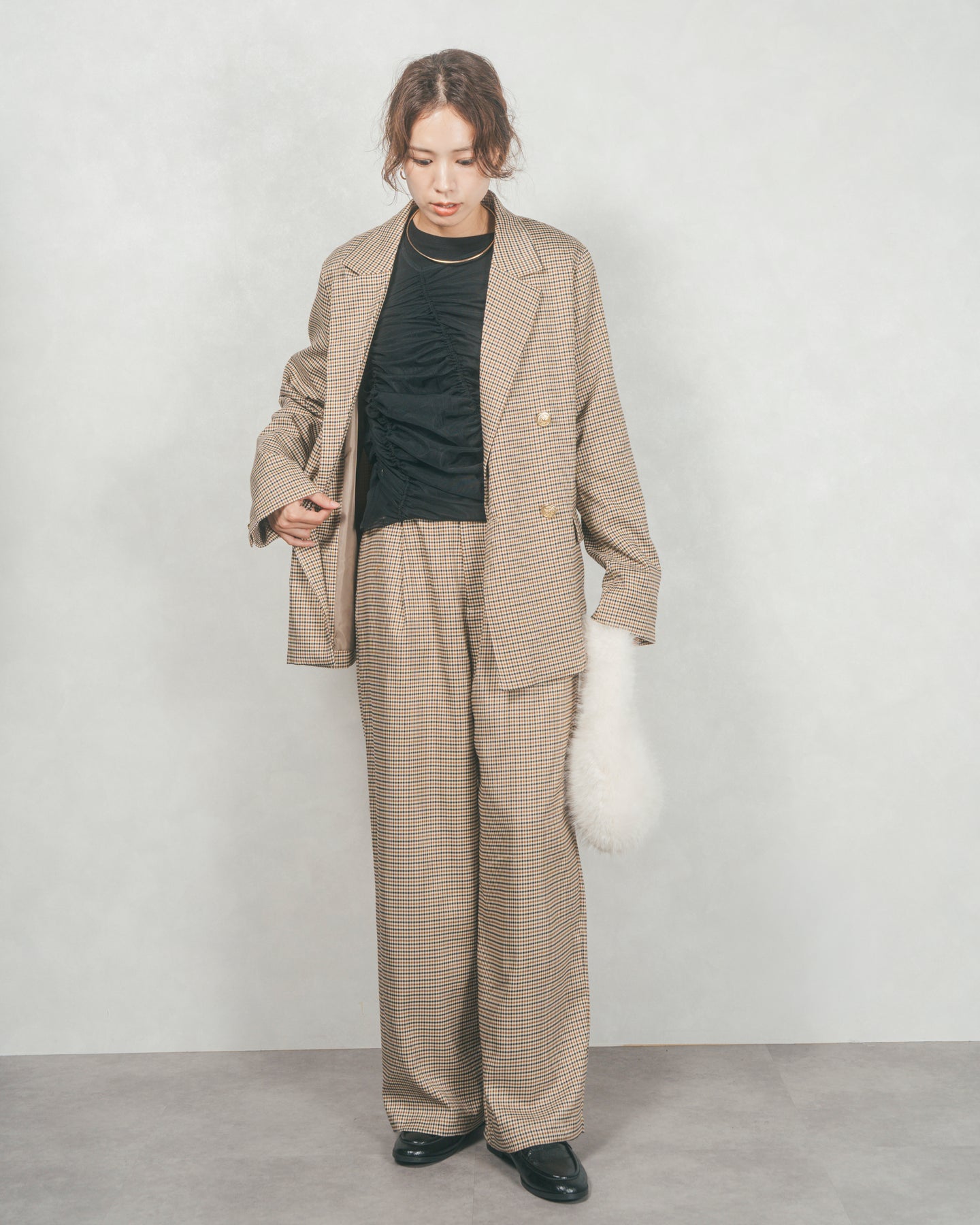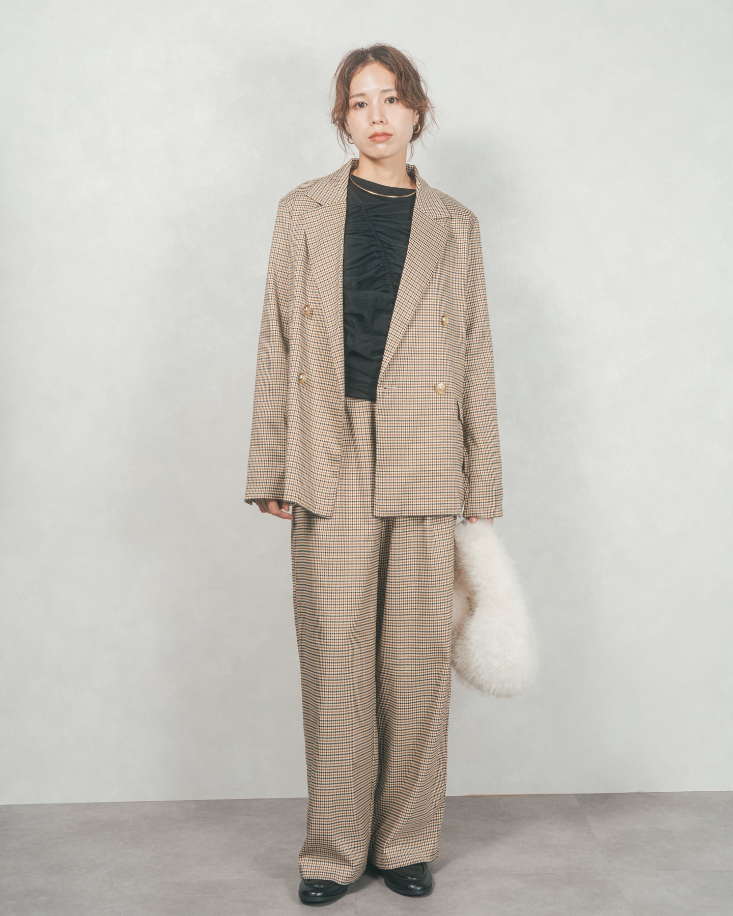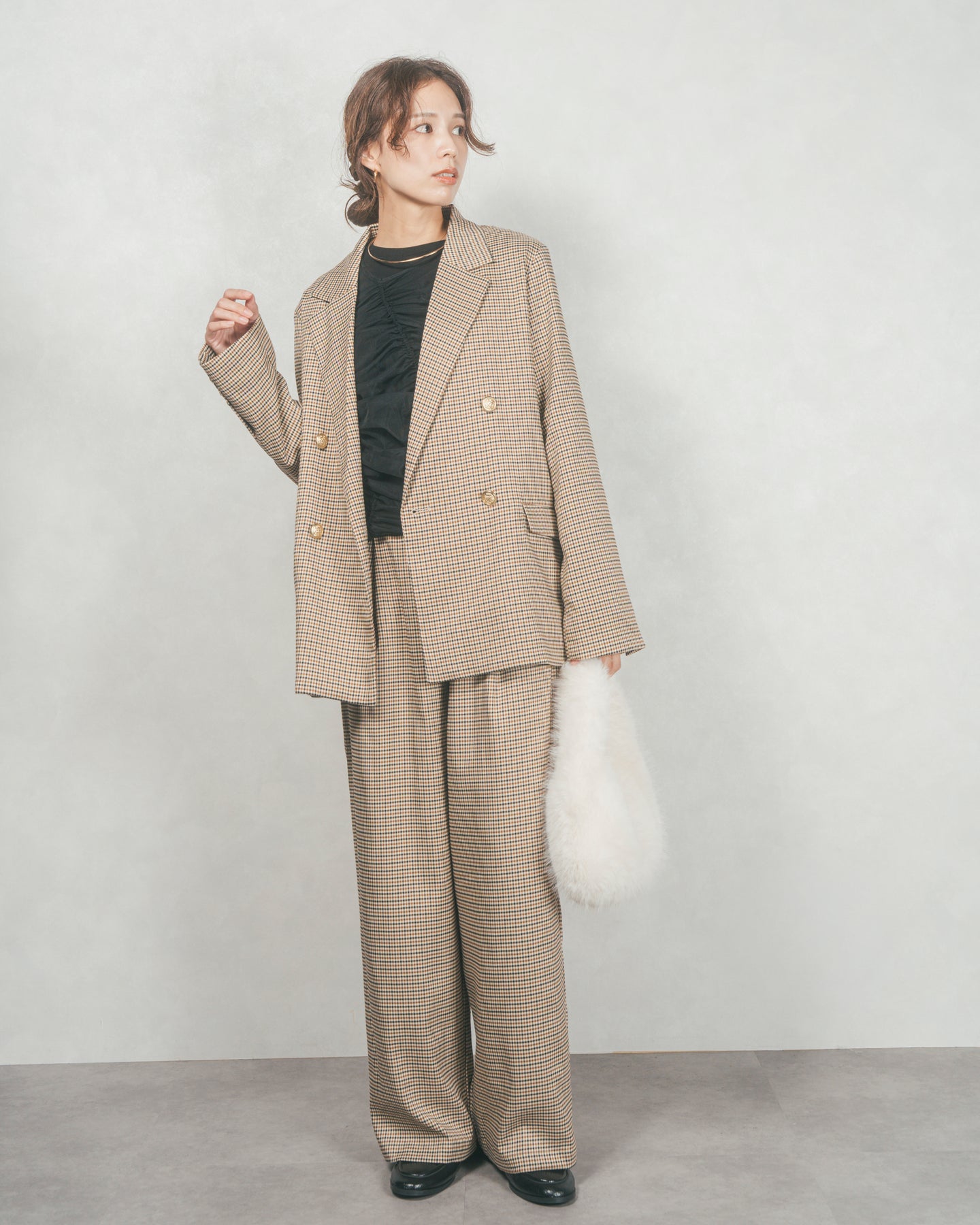 [SET]Effortless チェックジャケット+Effortless チェックタックパンツ(2SET)