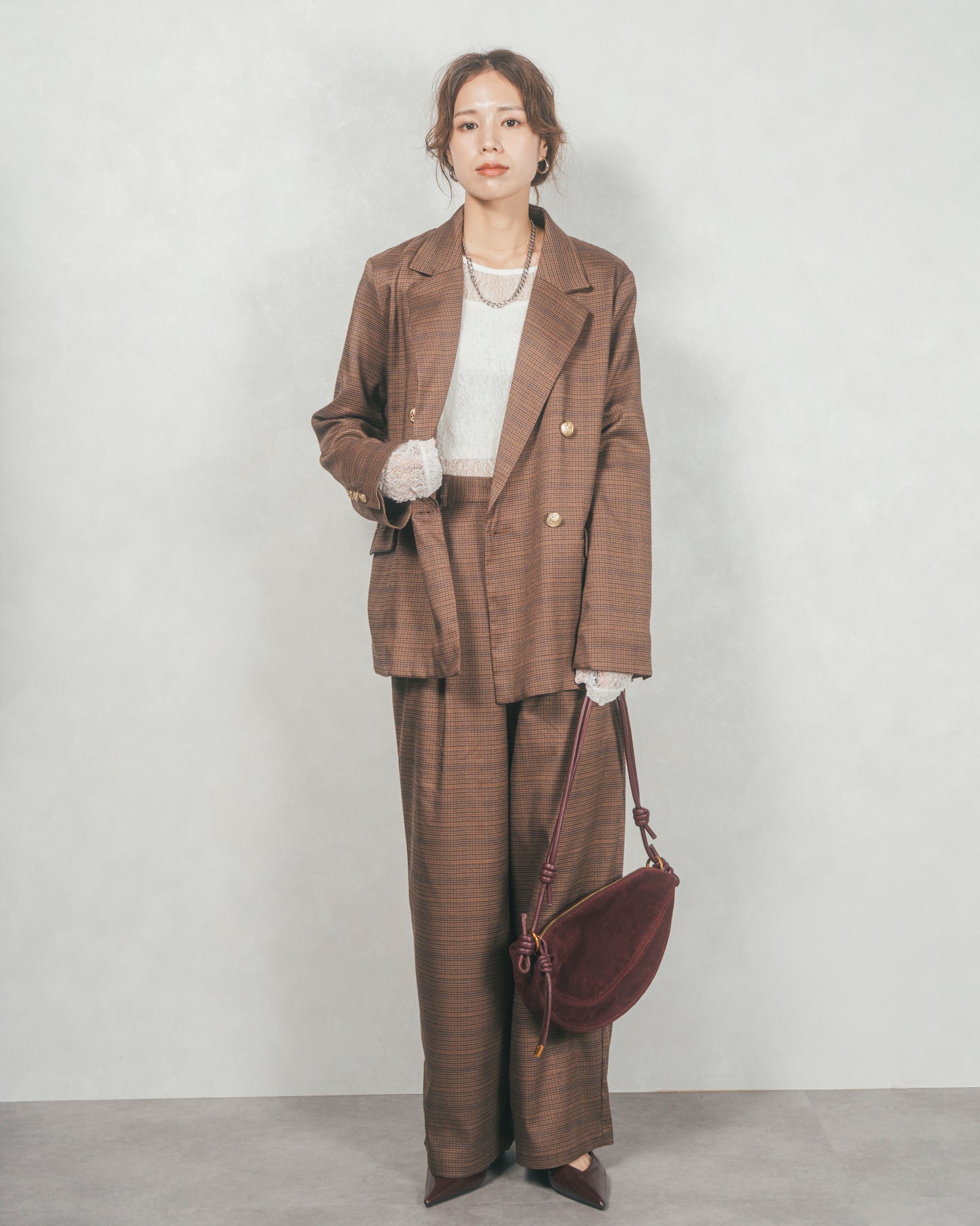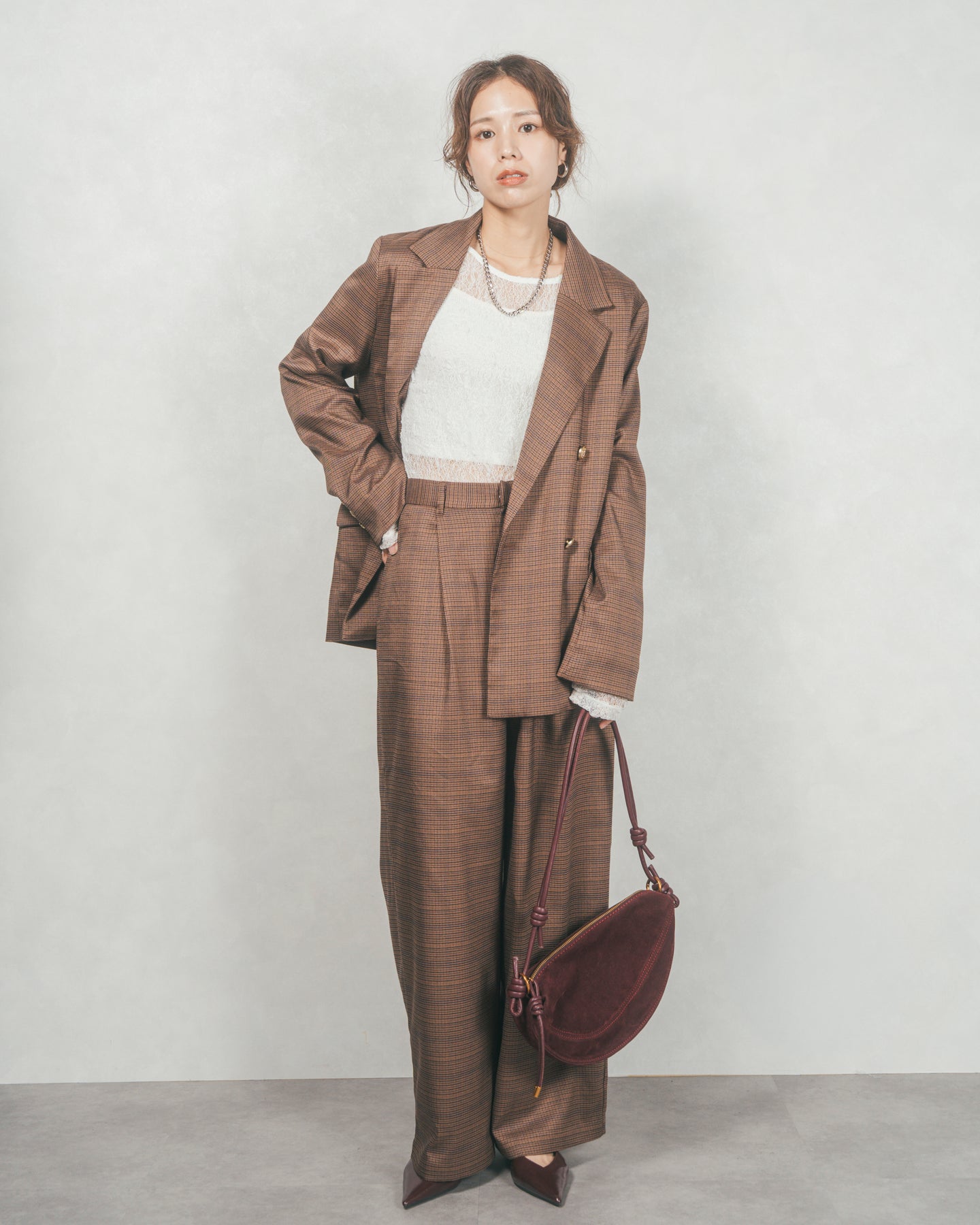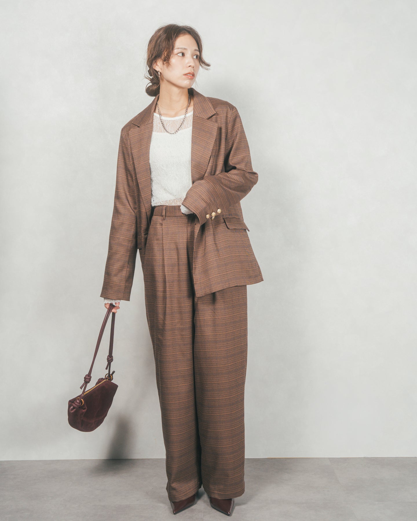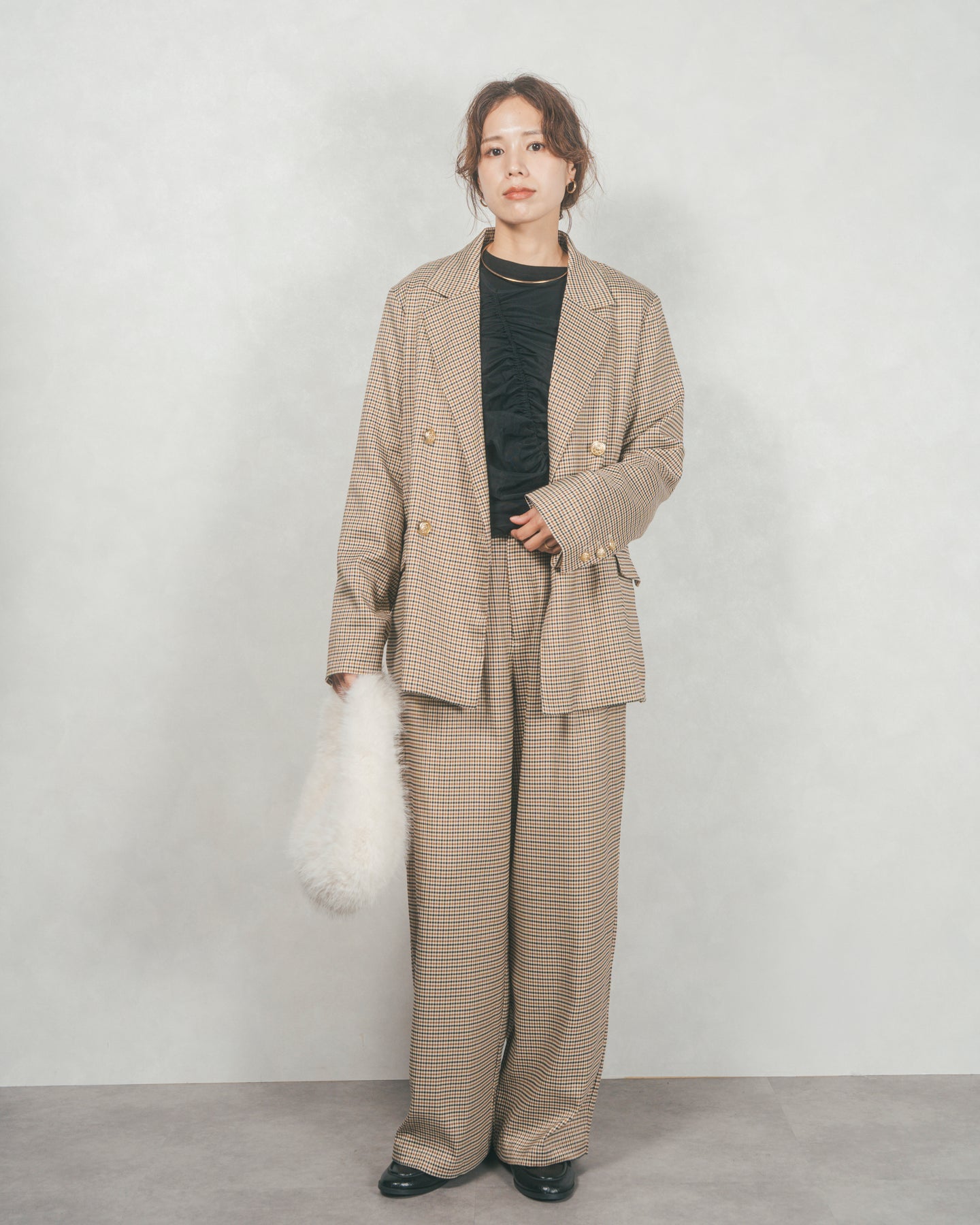 [SET]Effortless チェックジャケット+Effortless チェックタックパンツ(2SET)