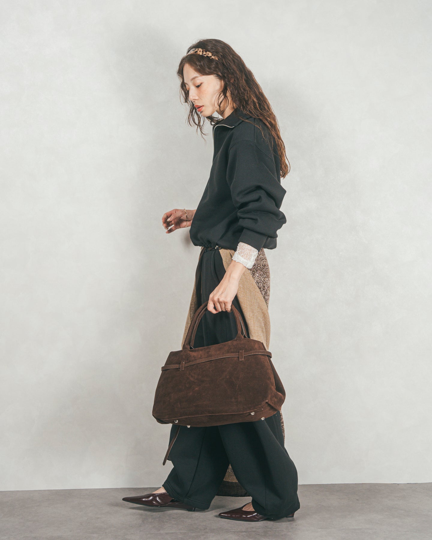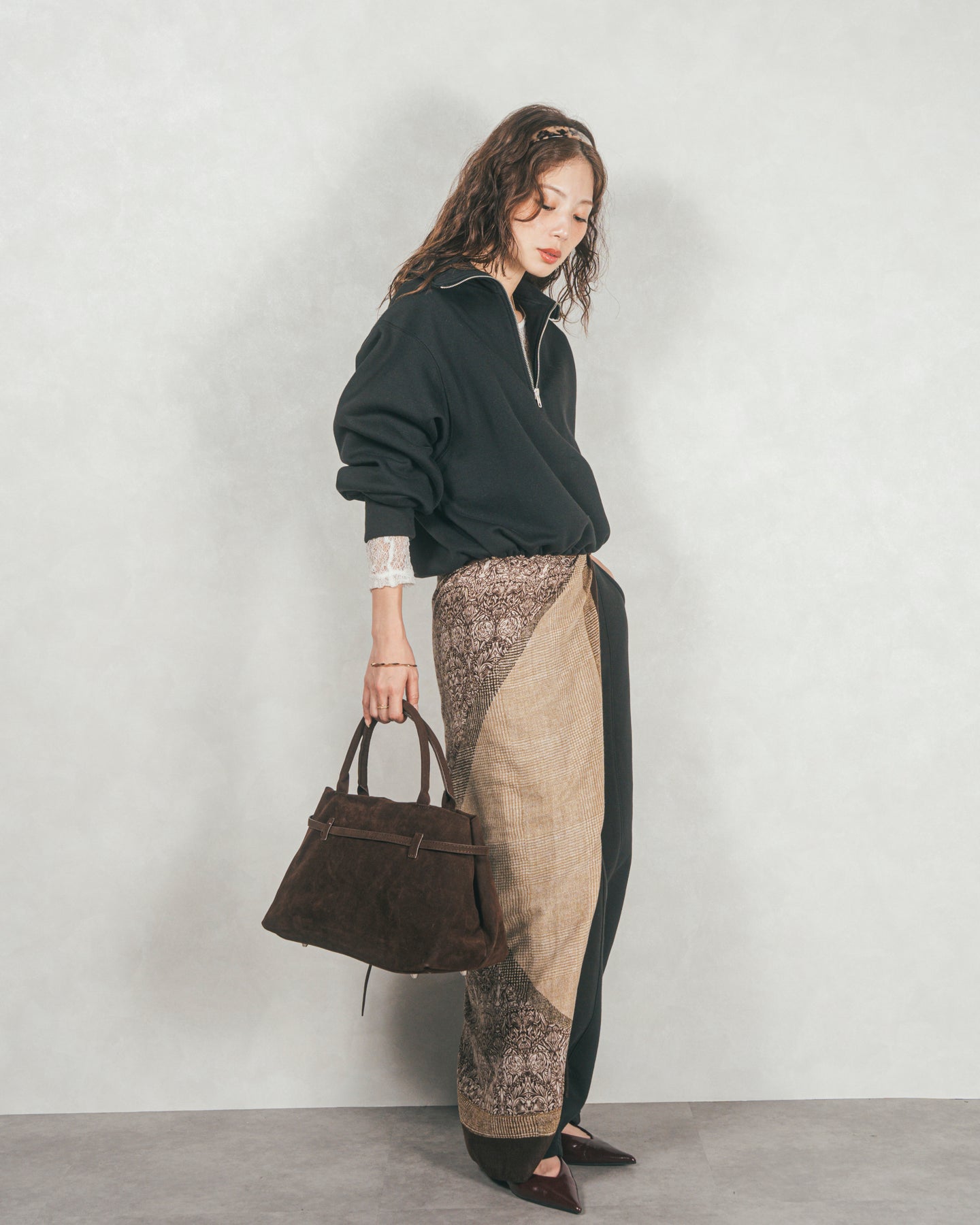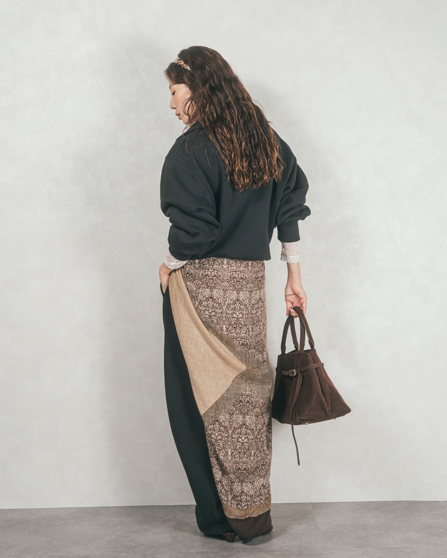 裾はふんわりとしたシルエットなので、すっきりとしたボトムに合わせるとスタイルアップ見えも◎