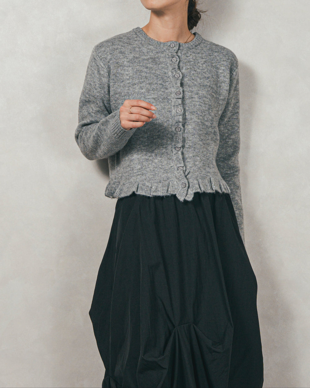 フロントフリルメランジニットカーデ(CHARCOAL)