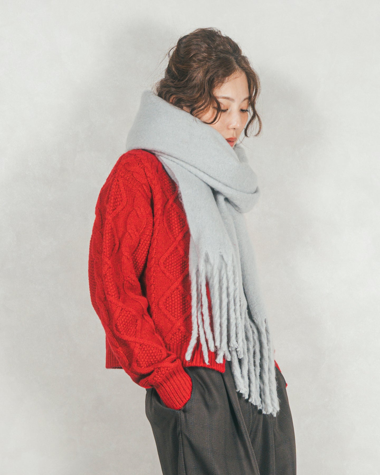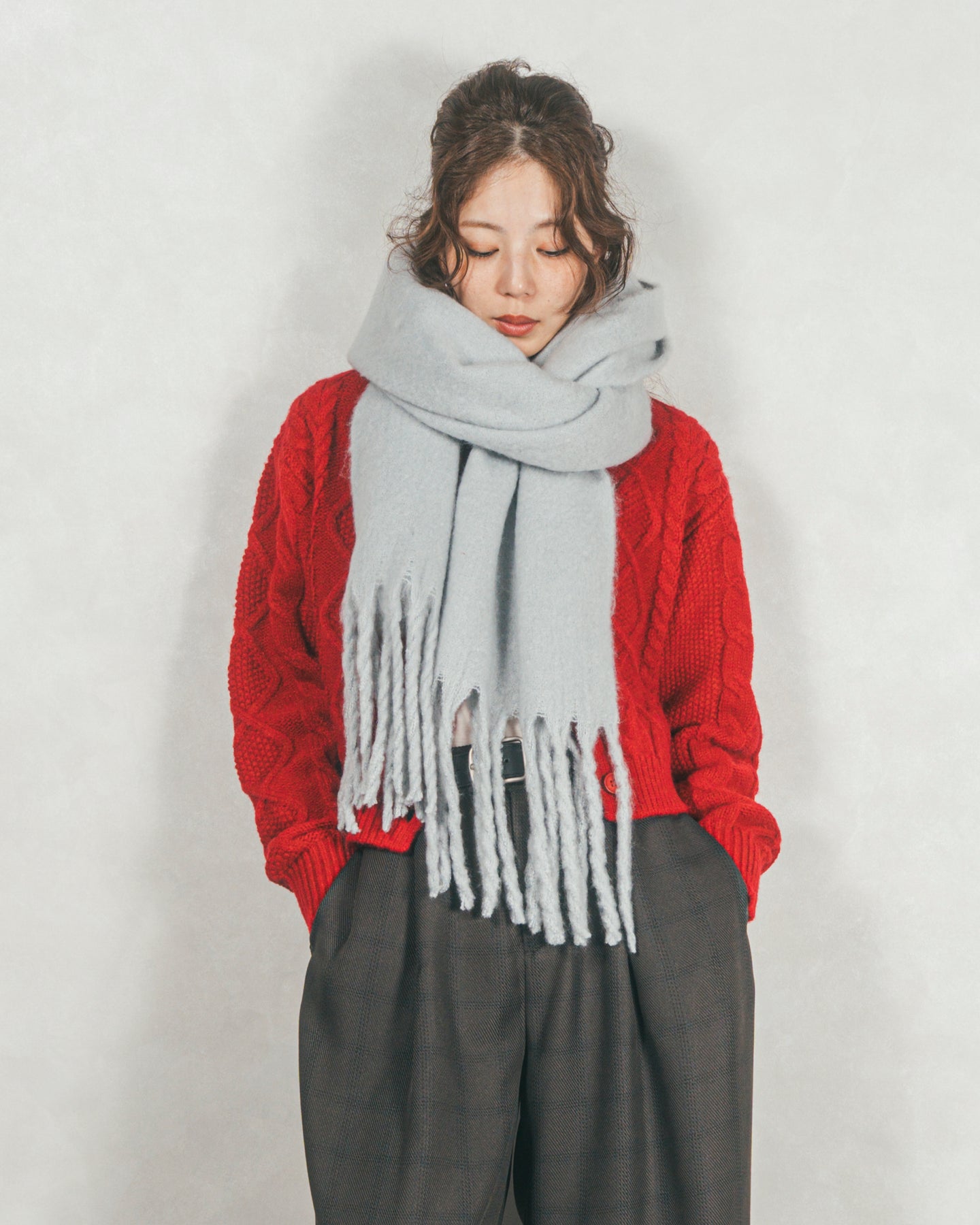 ボリュームフリンジ Shaggyマフラー (GRAY)
