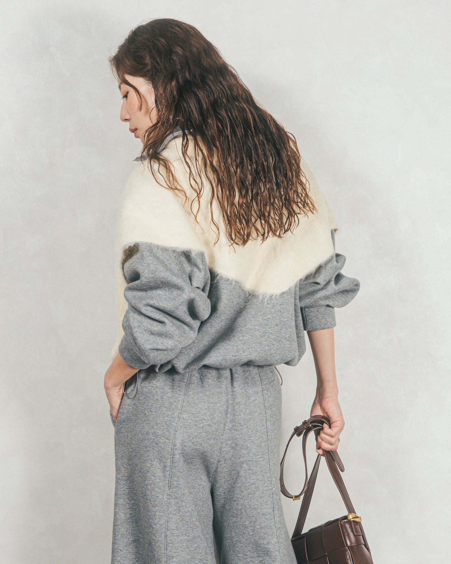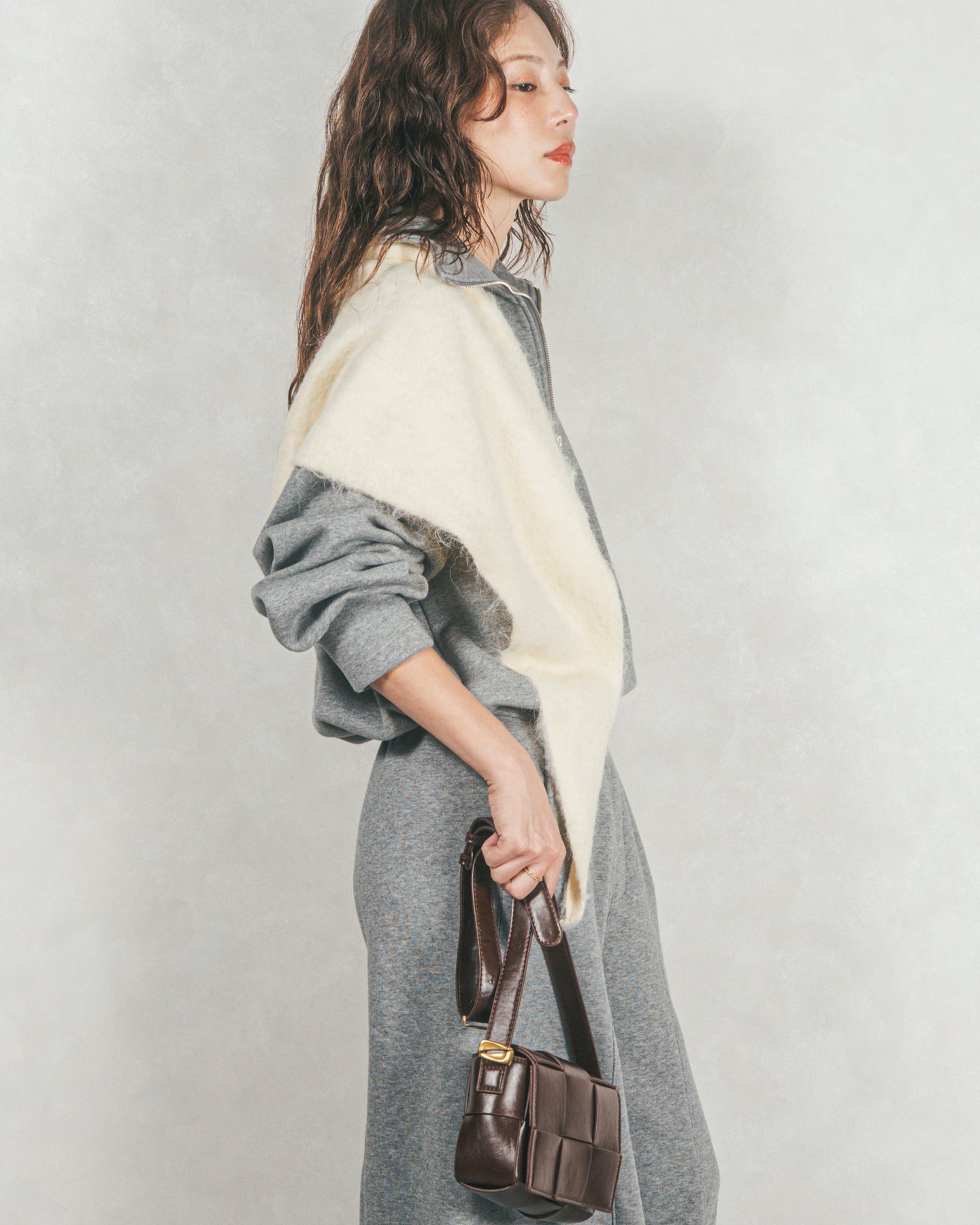 【Fabric】ふっくらと温かみのあるモヘアタッチニット素材。柔らかな毛足があたたかく、見た目にも季節感を高めます。シンプルなアウターにもプラスして、いつものコーデに彩りを。