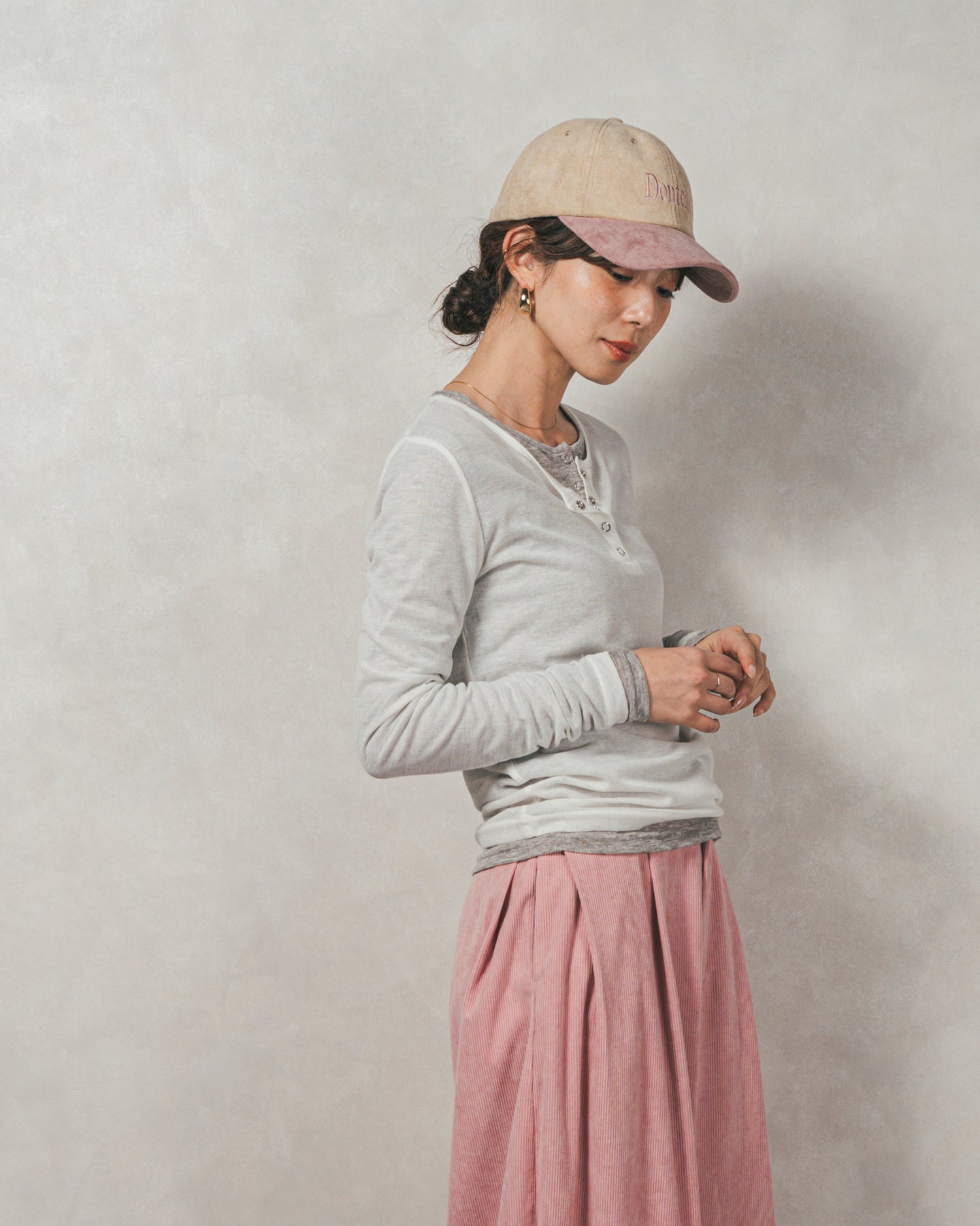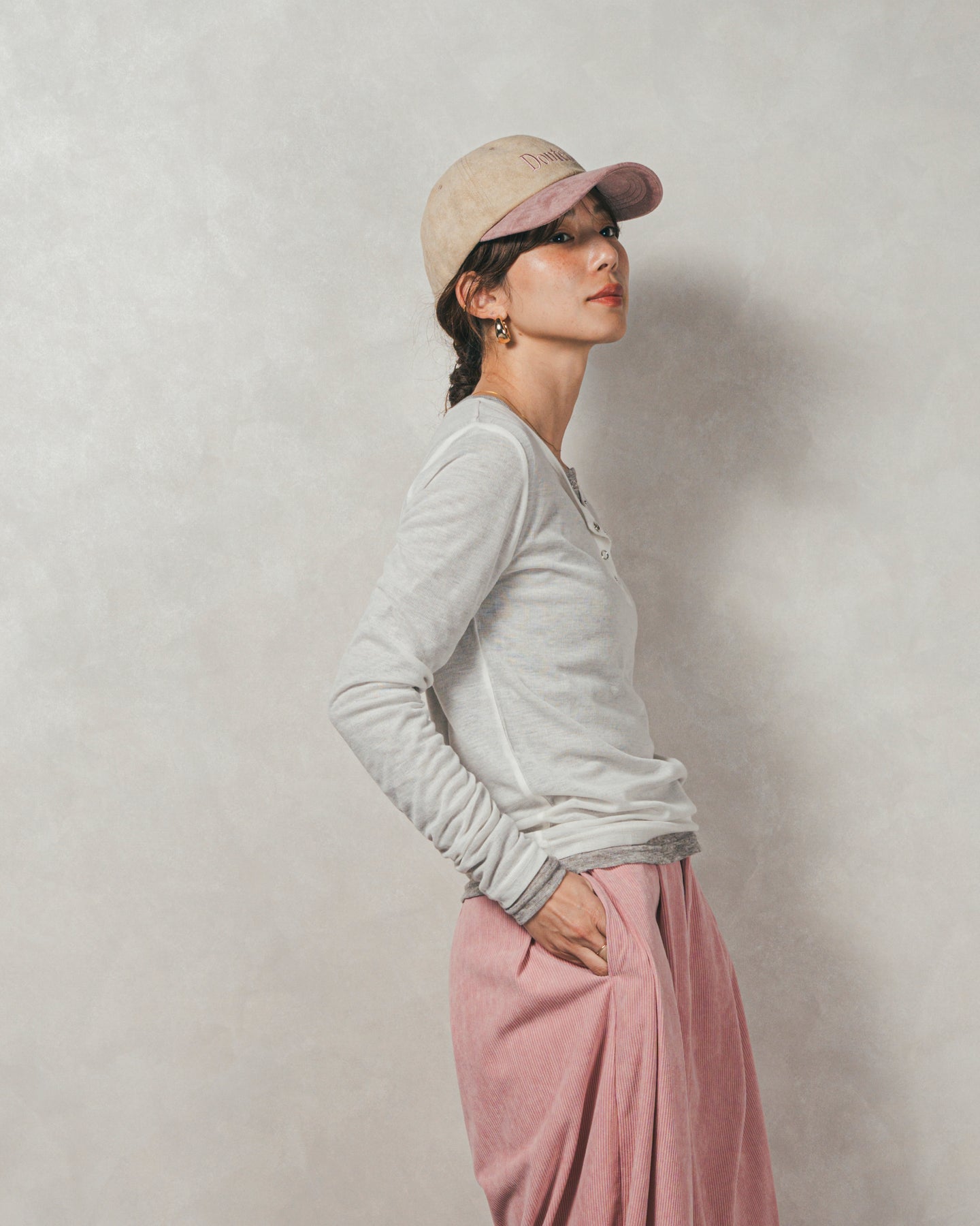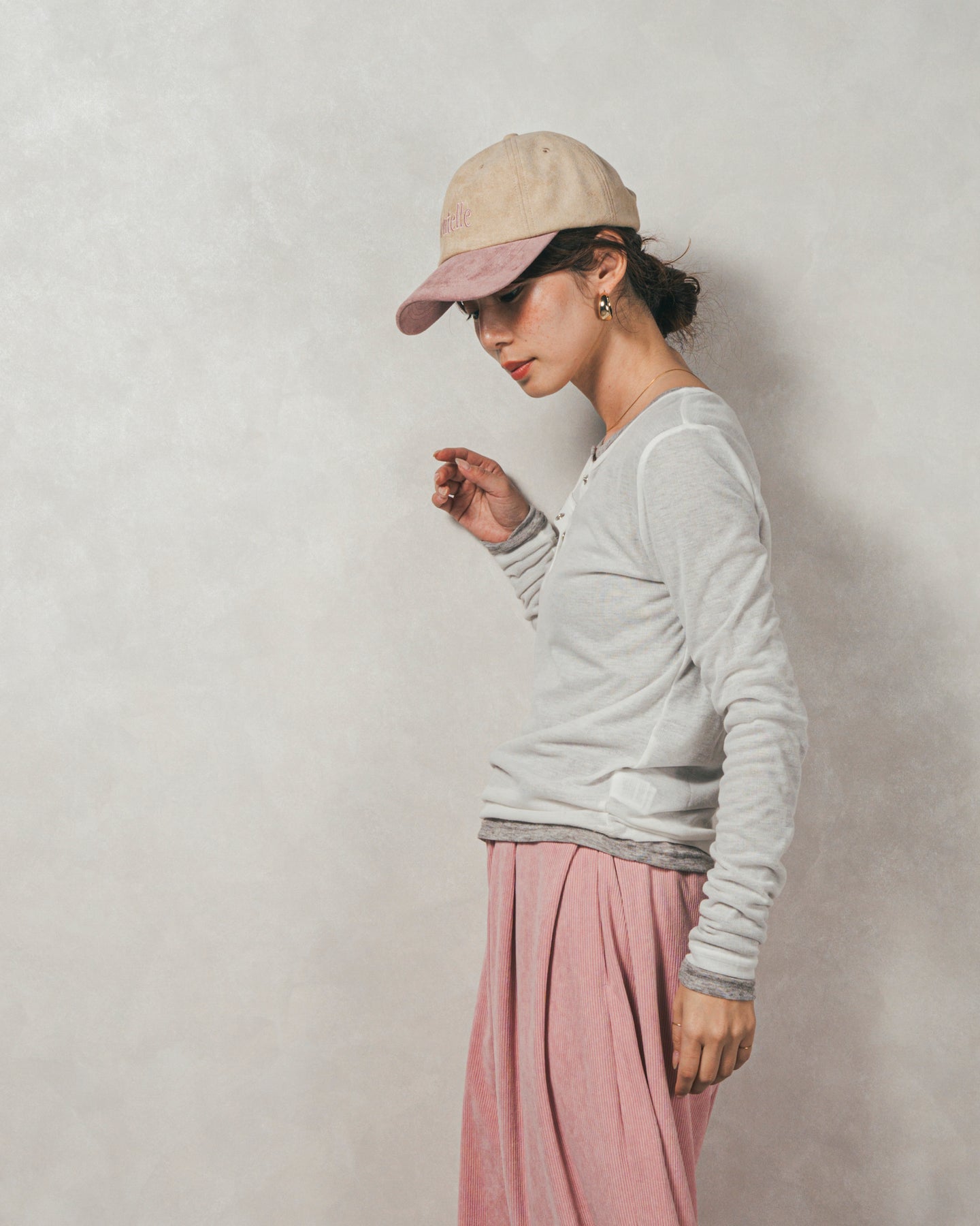 スウェードロゴ刺繍キャップ(IVORY × PINK)