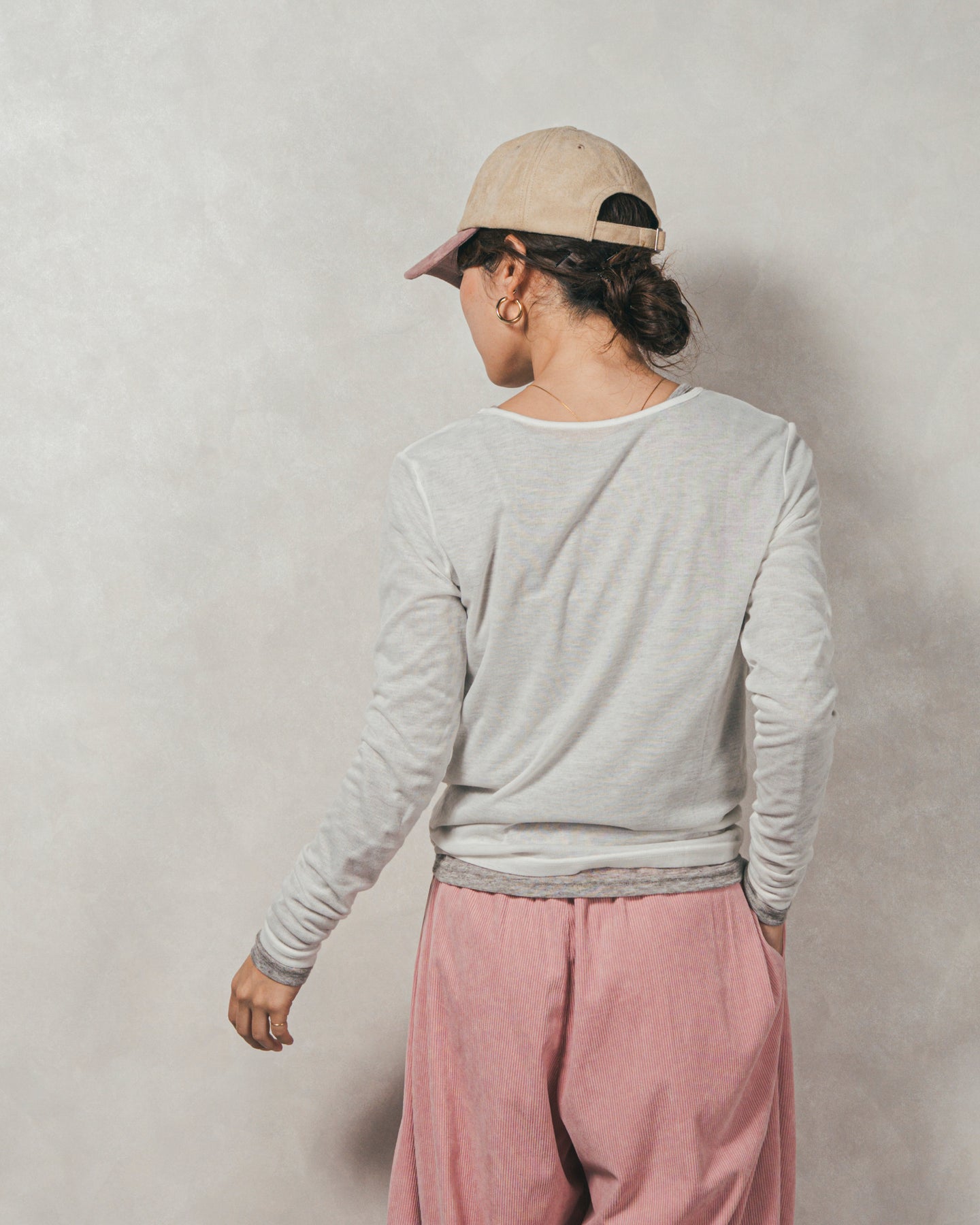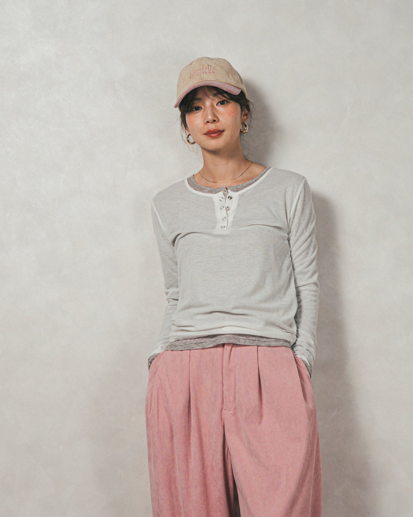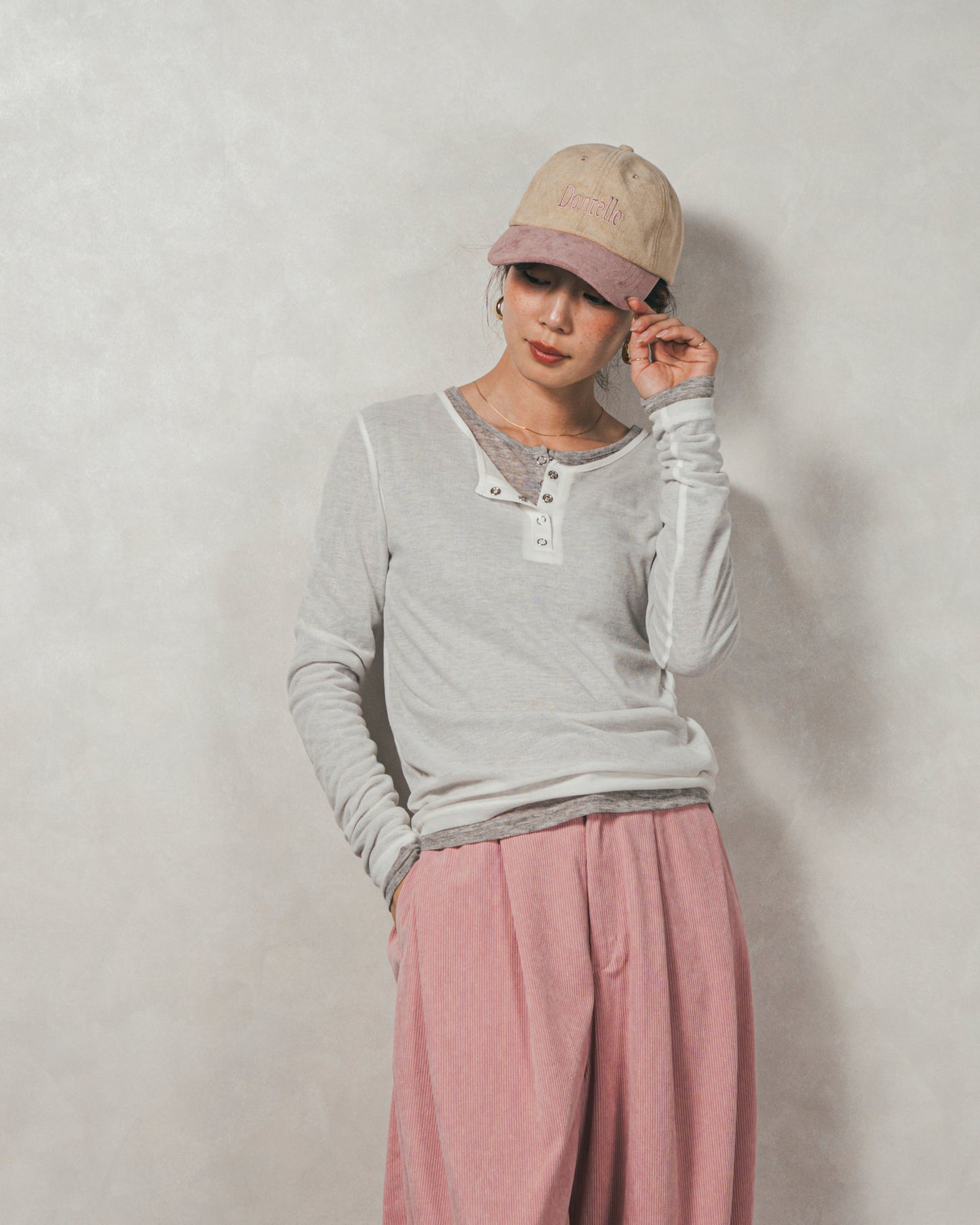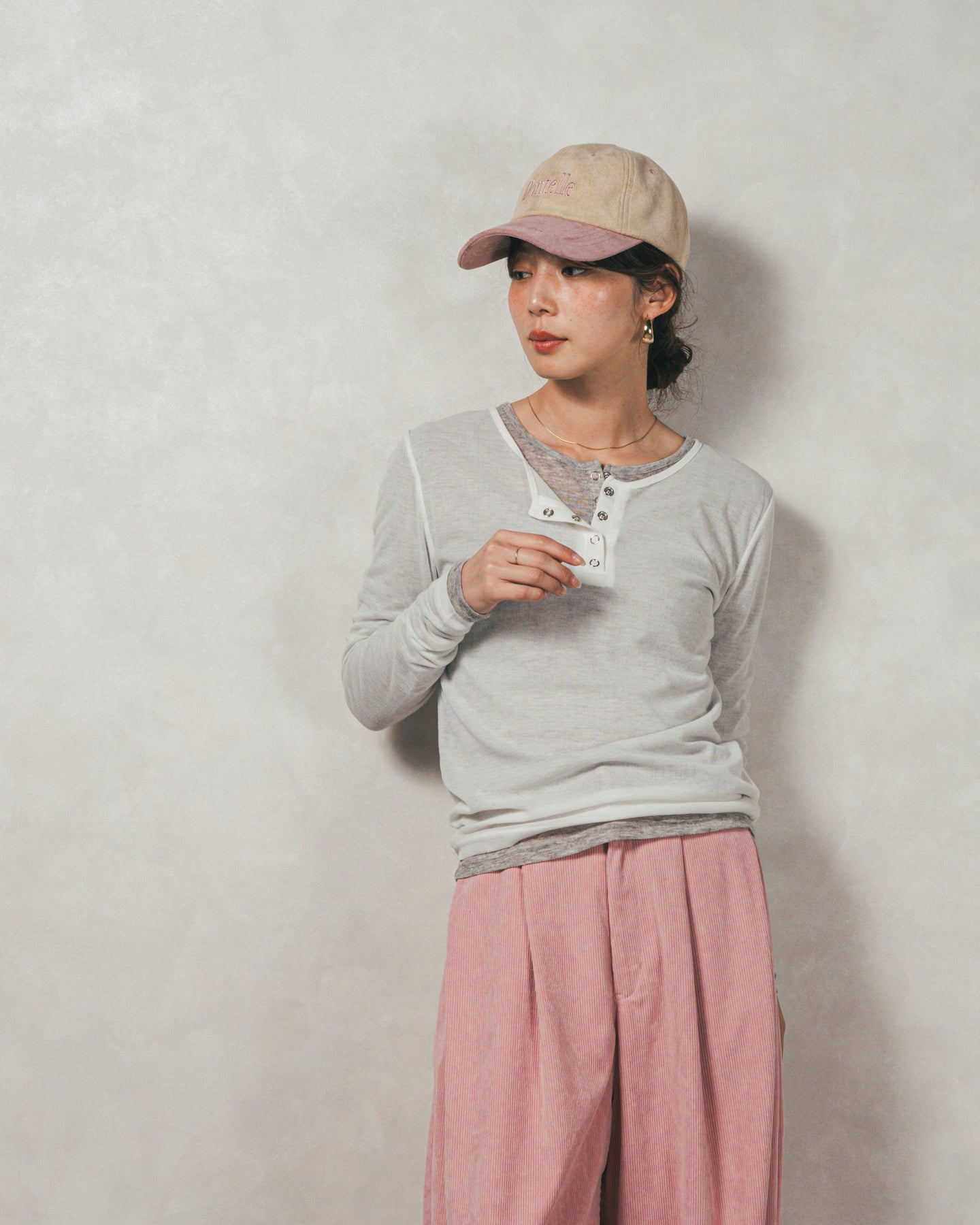 スウェードロゴ刺繍キャップ(IVORY × PINK)