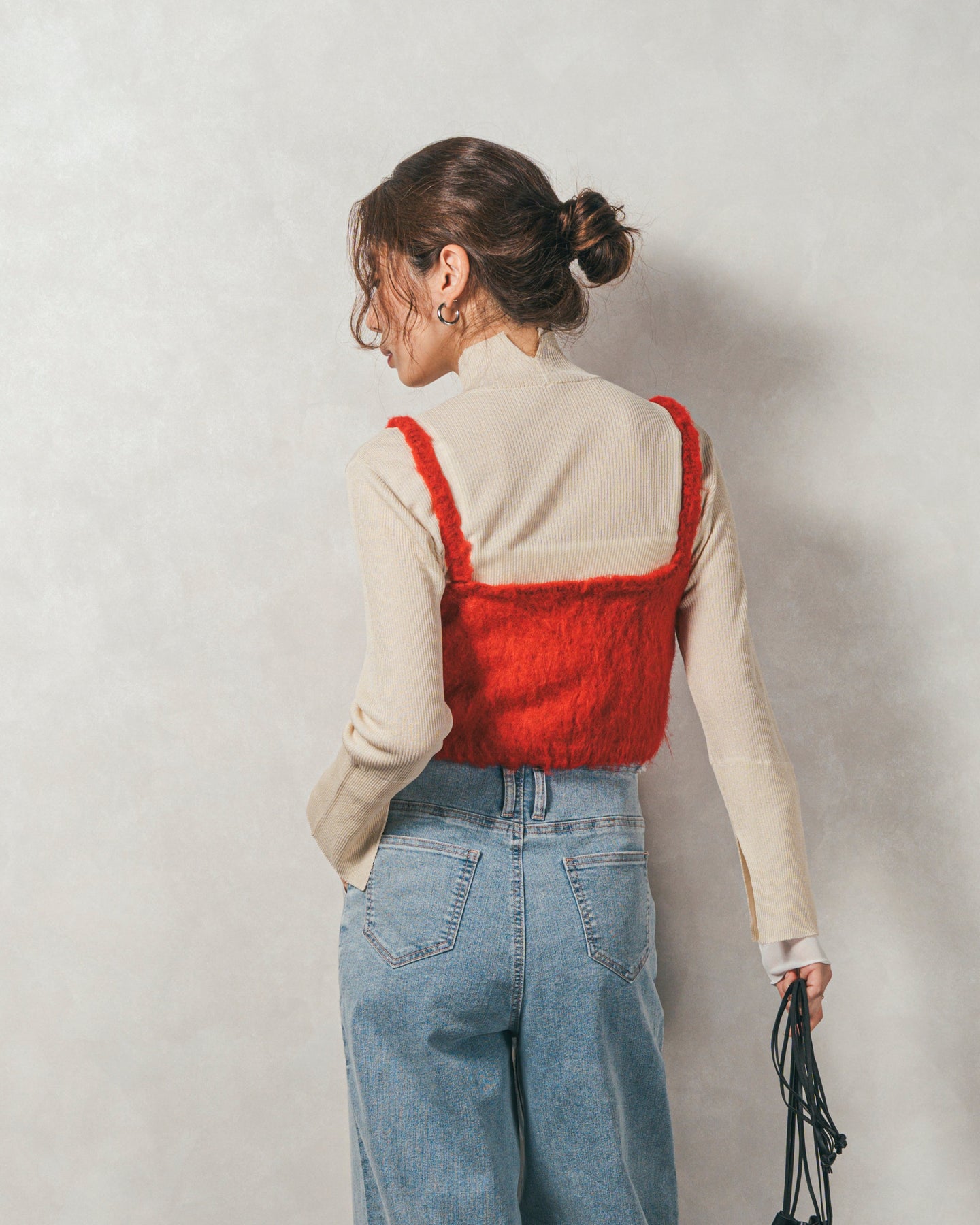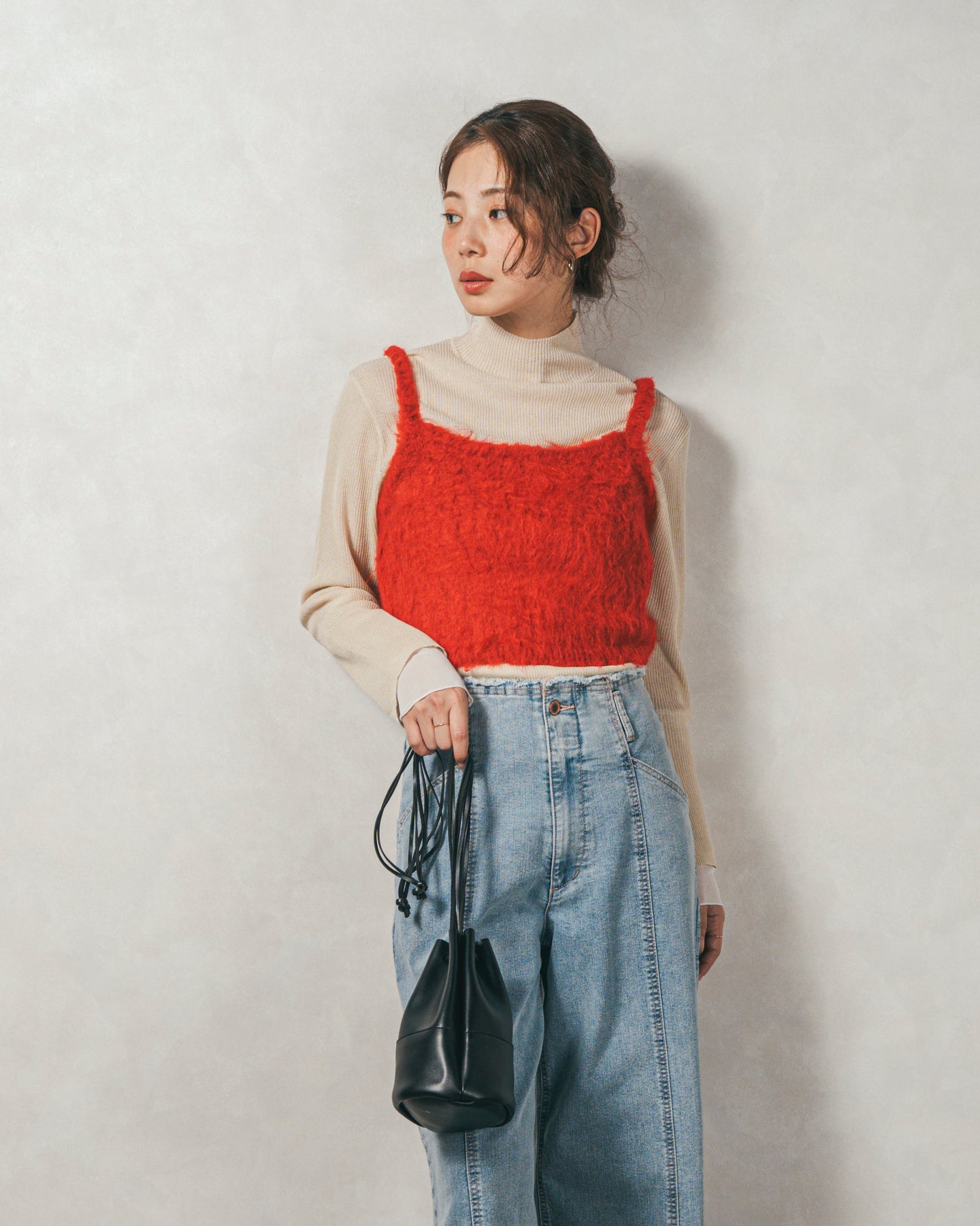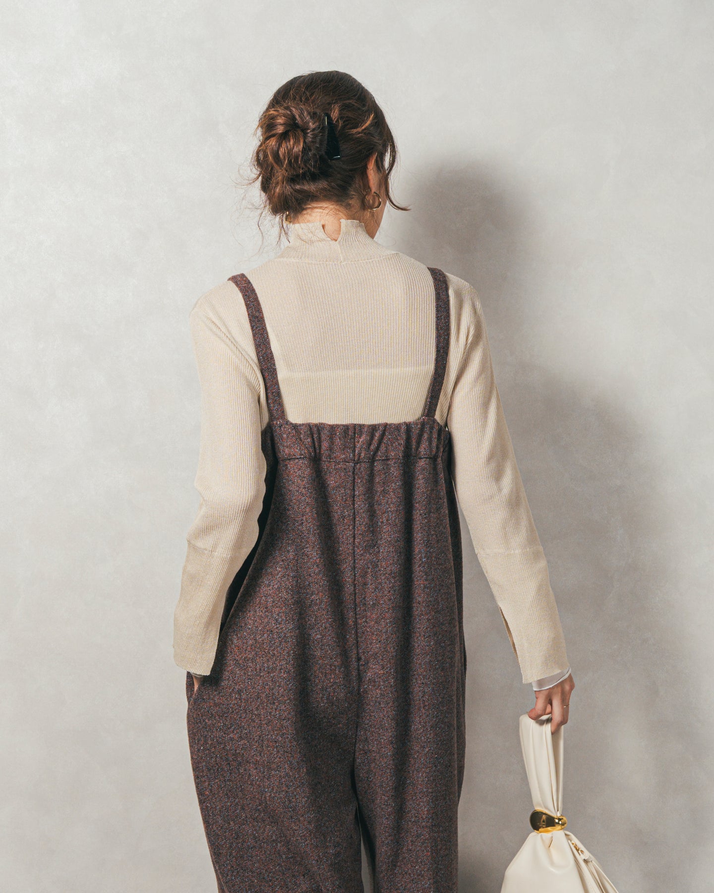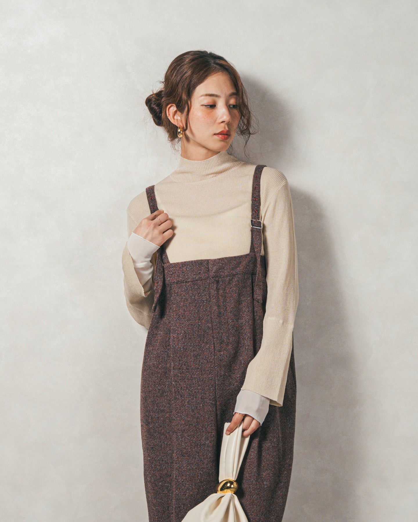 繊細なラメを丁寧に編み込んだ、上品なリブ素材。 ギラギラした派手さはなく、光の加減でまたたくようなさりげない輝きが特徴。肌を美しく見せてくれる高見えアイテム。袖口のレイヤード部分は伸縮性のある素材で。肌馴染みがよくチクチクしないストレスフリーな着心地です。