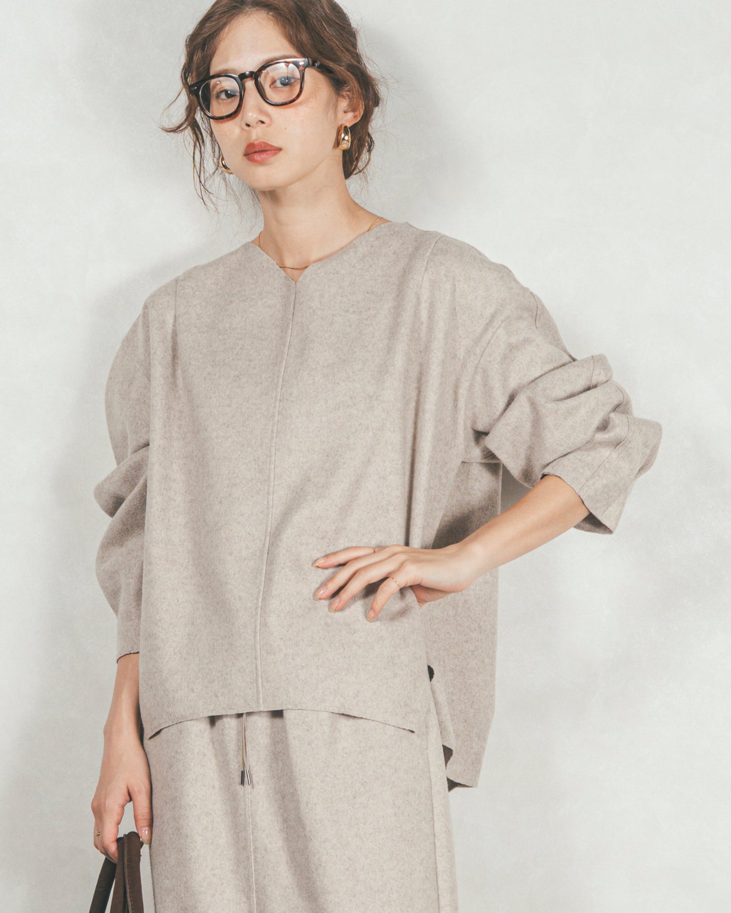 やわらかなコクーンシルエットに仕立てた、オーバーサイズのデザイン。浅めのVネックラインが顔周りをすっきりと見せ、後ろの裾にはタックを入れることで、気になる部分を自然とカバーし、華奢見えさせるこだわりのデザインです。