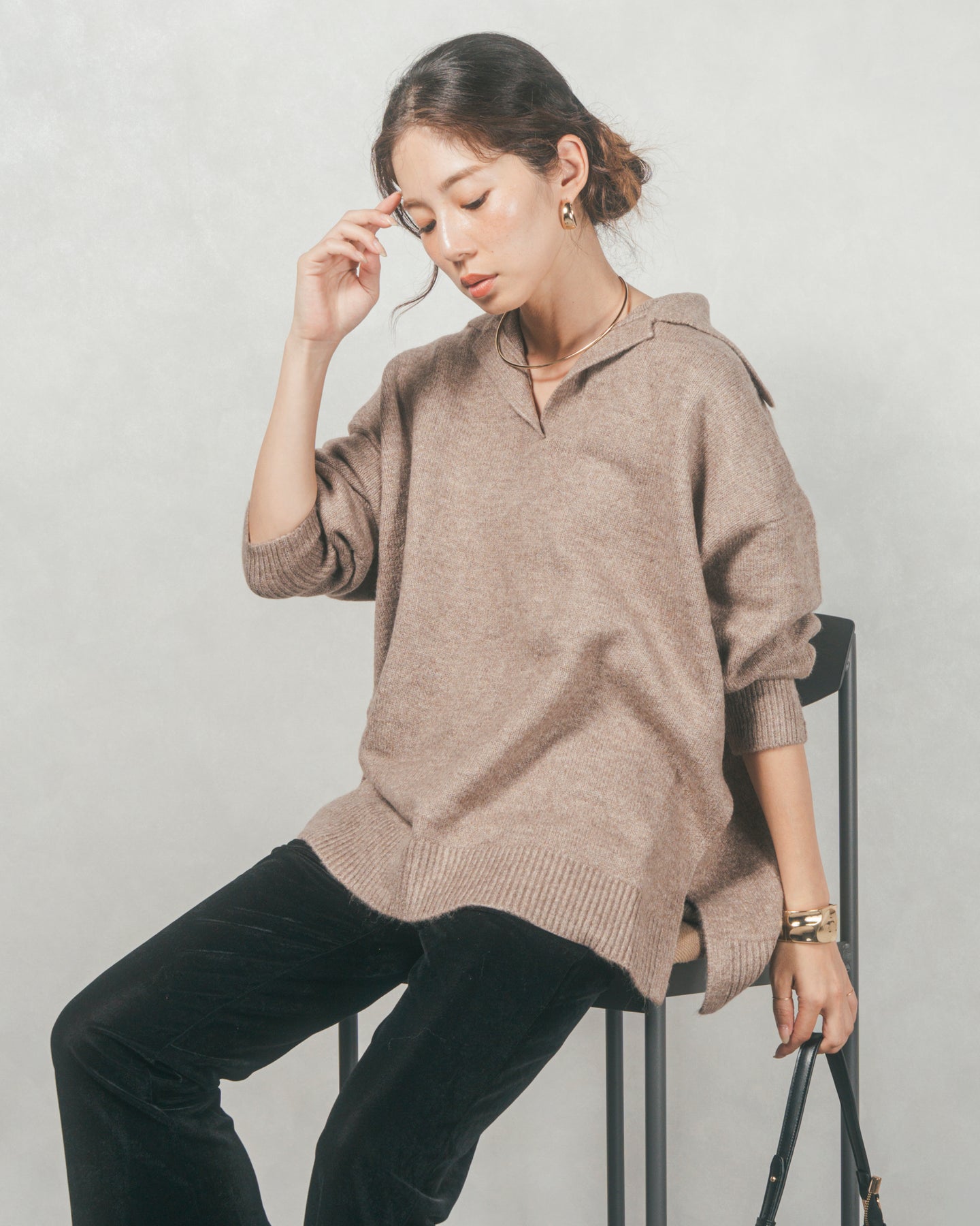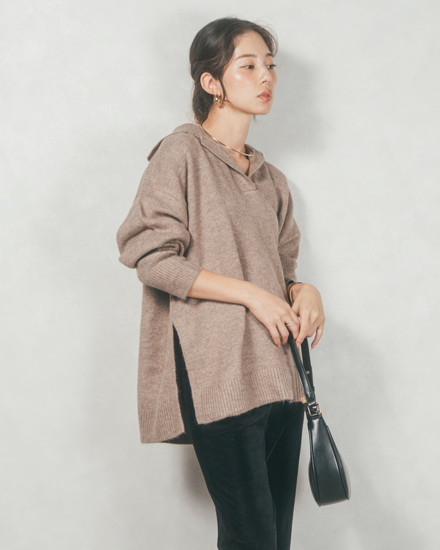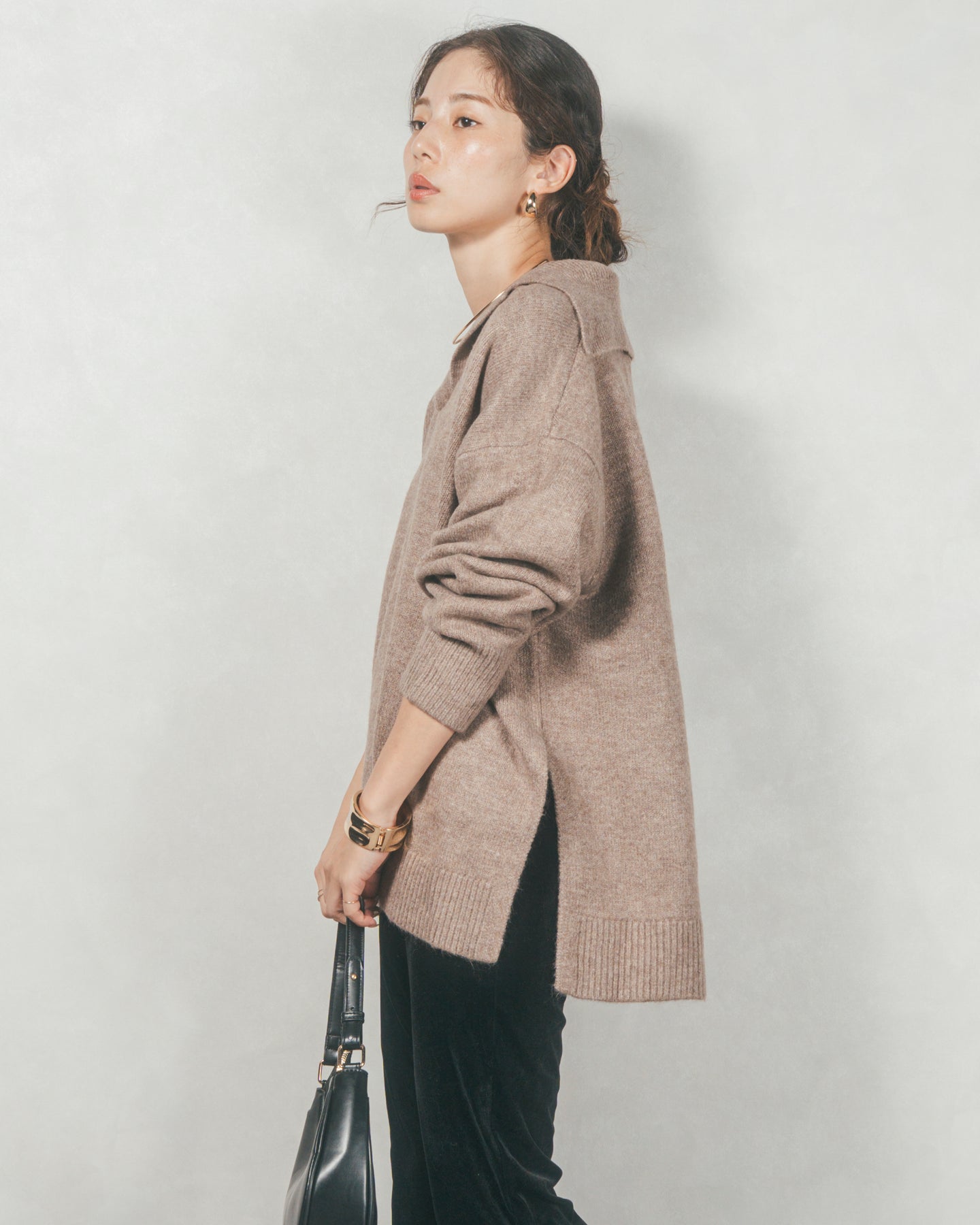 サイドスリット襟付きスキッパーニット (GREYGE)