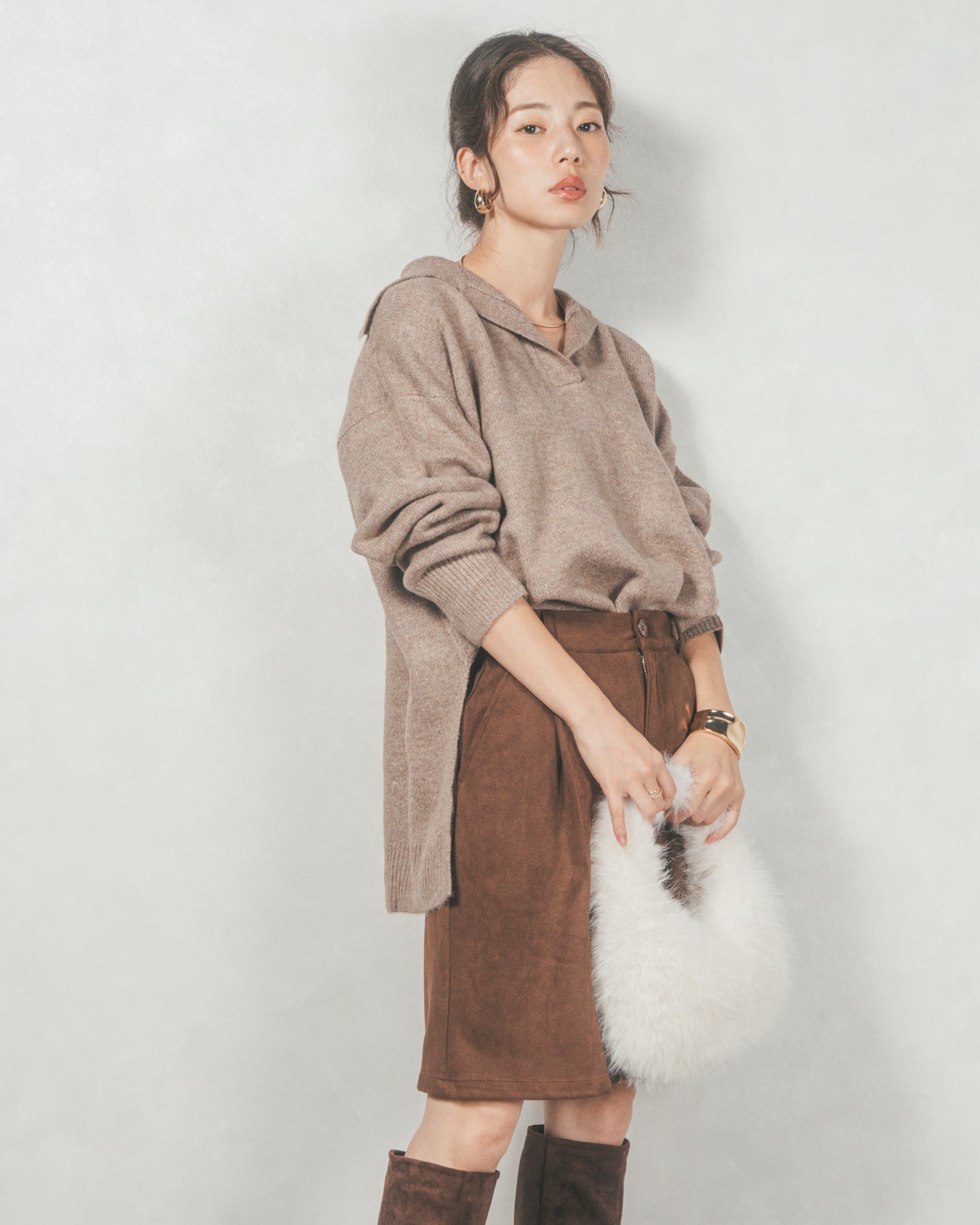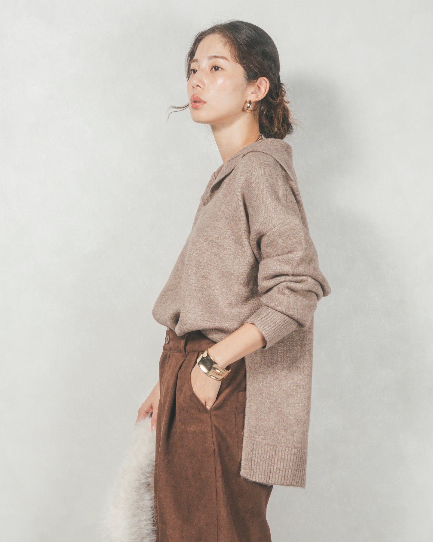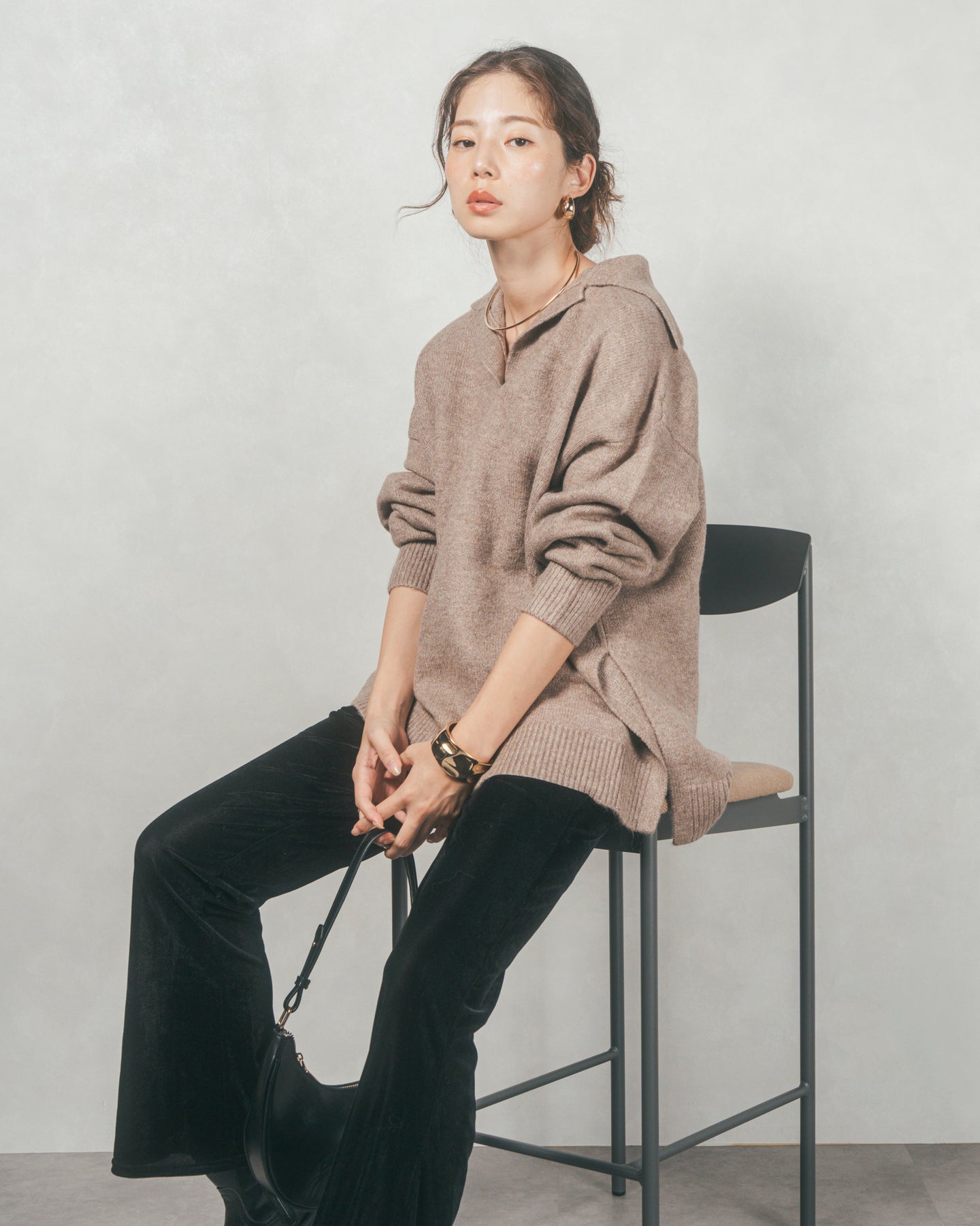 サイドスリット襟付きスキッパーニット (GREYGE)