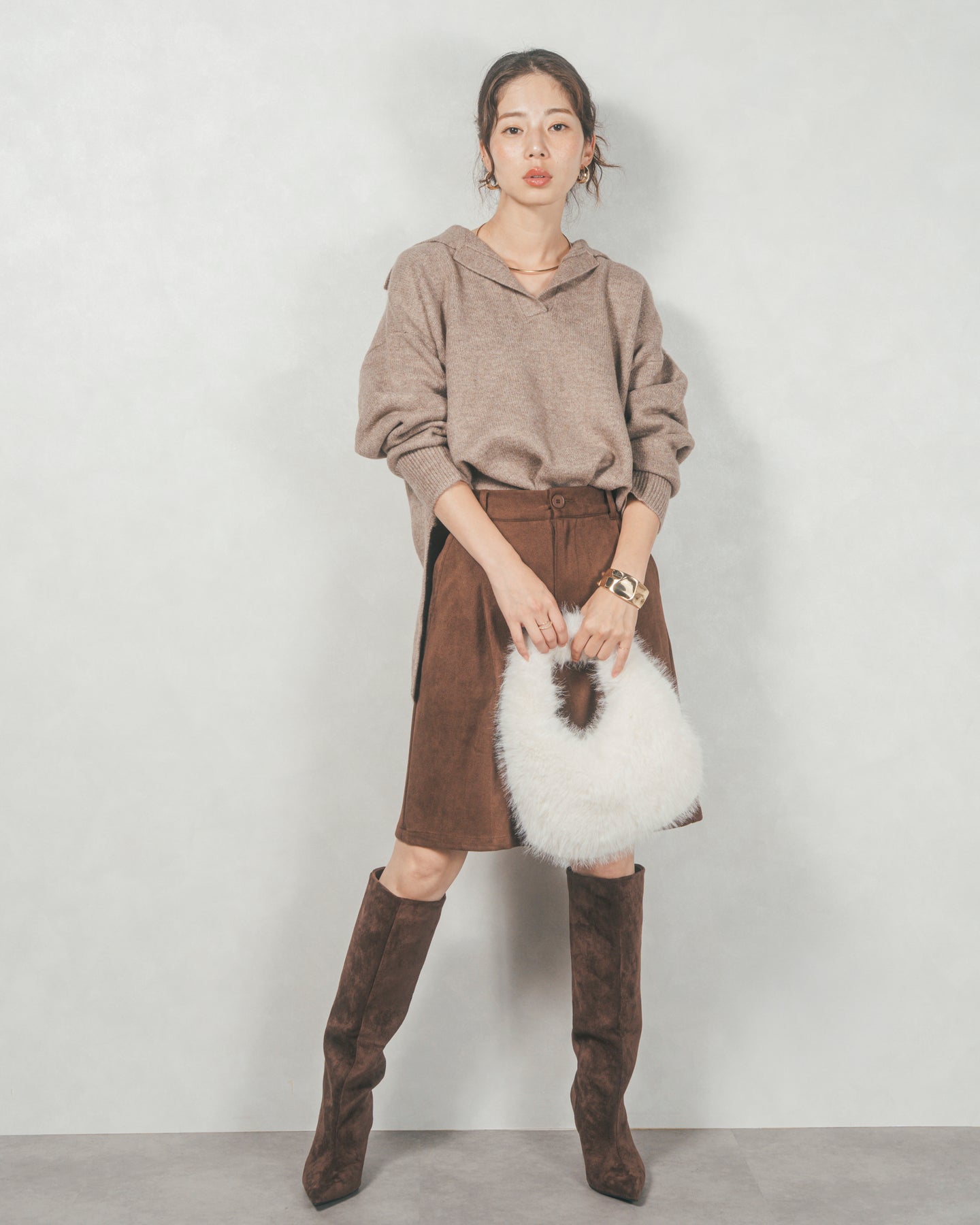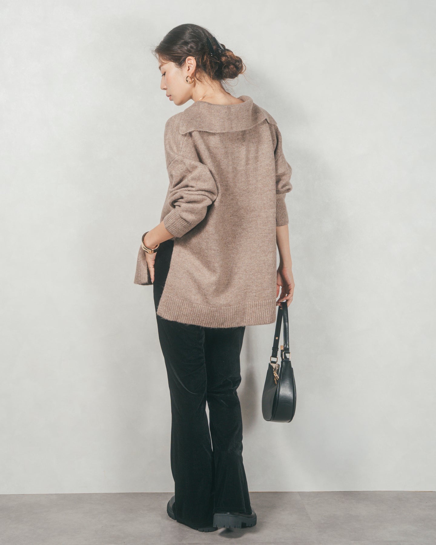 レイヤードもしやすく、シャツやタートルネックを重ねれば、簡単にこなれたスタイルが完成。ふわっとやわらかな肌触りのニット素材で、着心地も◎。デイリーに頼れる一着です。