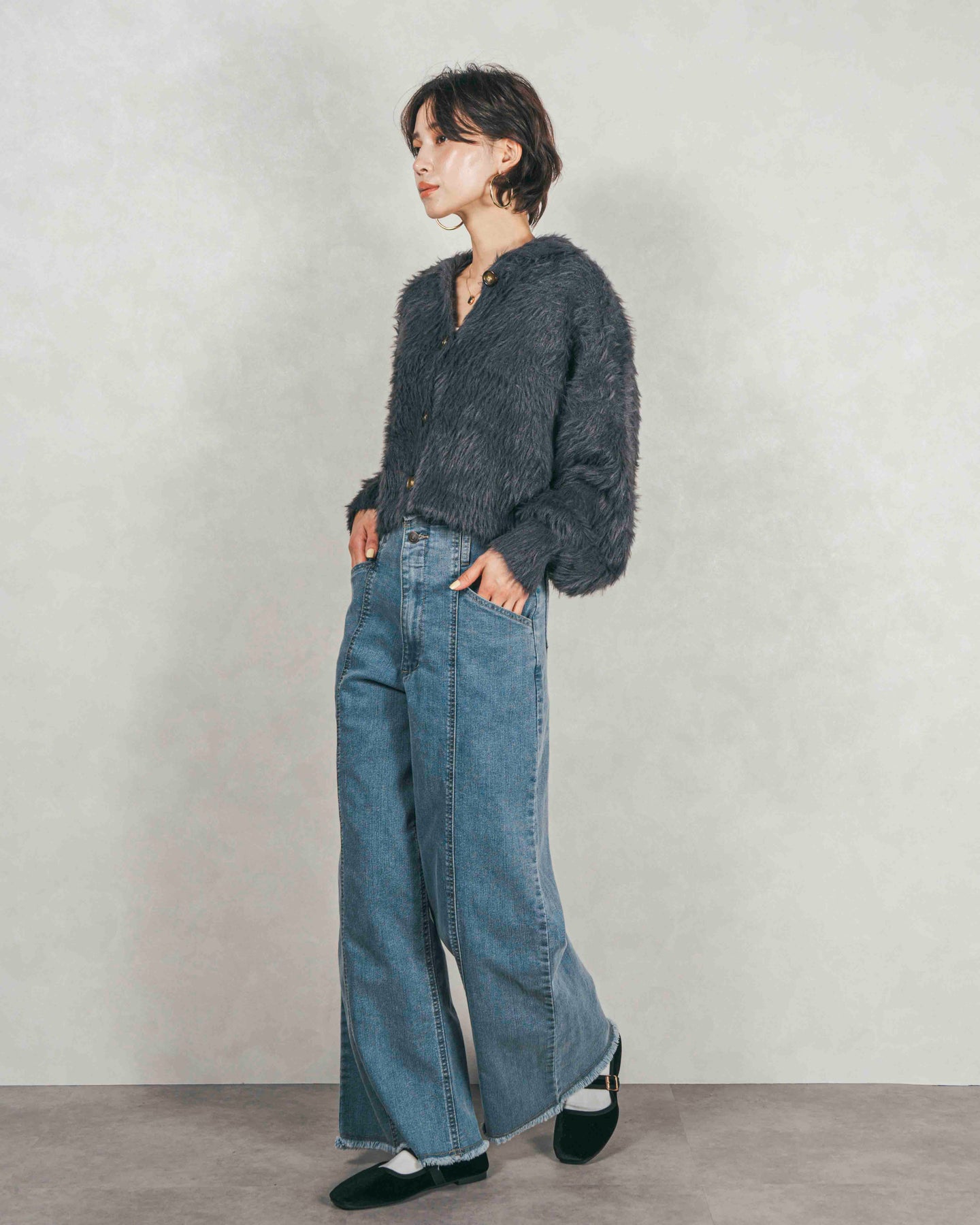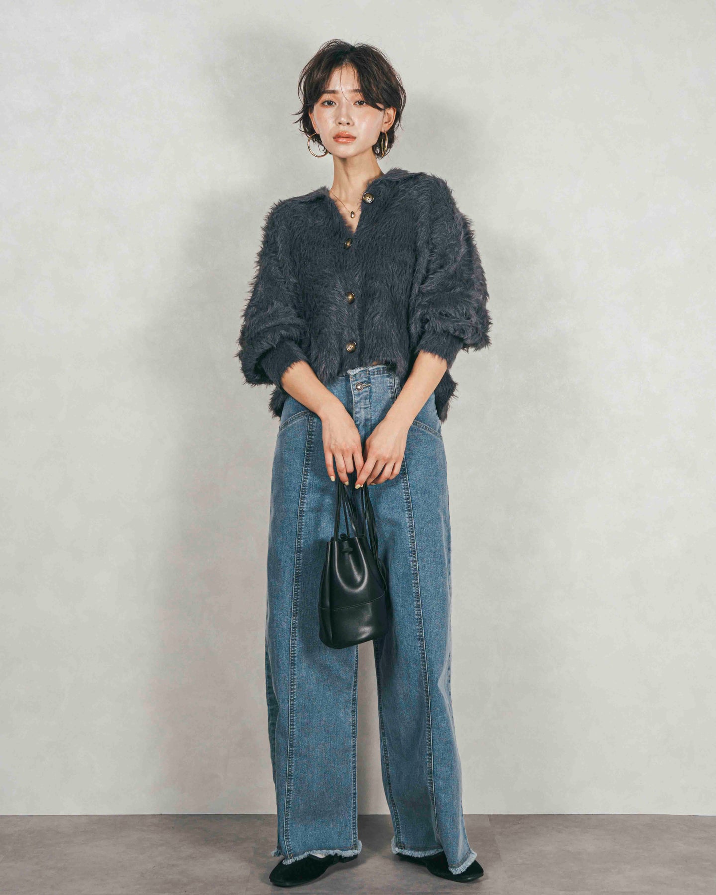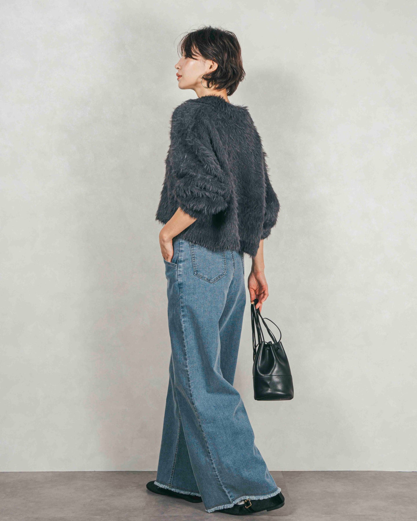 ボリューミーになりすぎない、ふわふわフェザーのトレンドカーデ