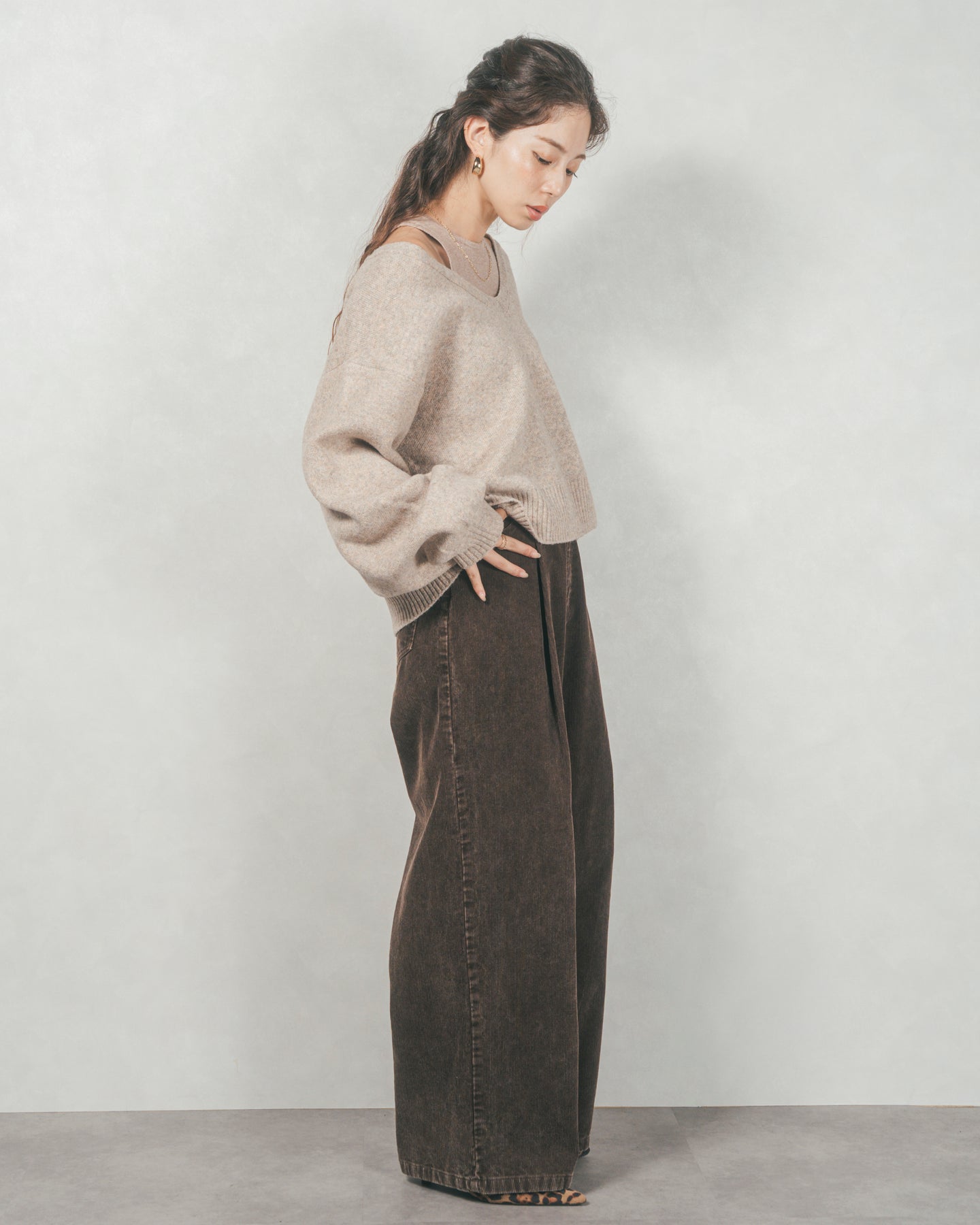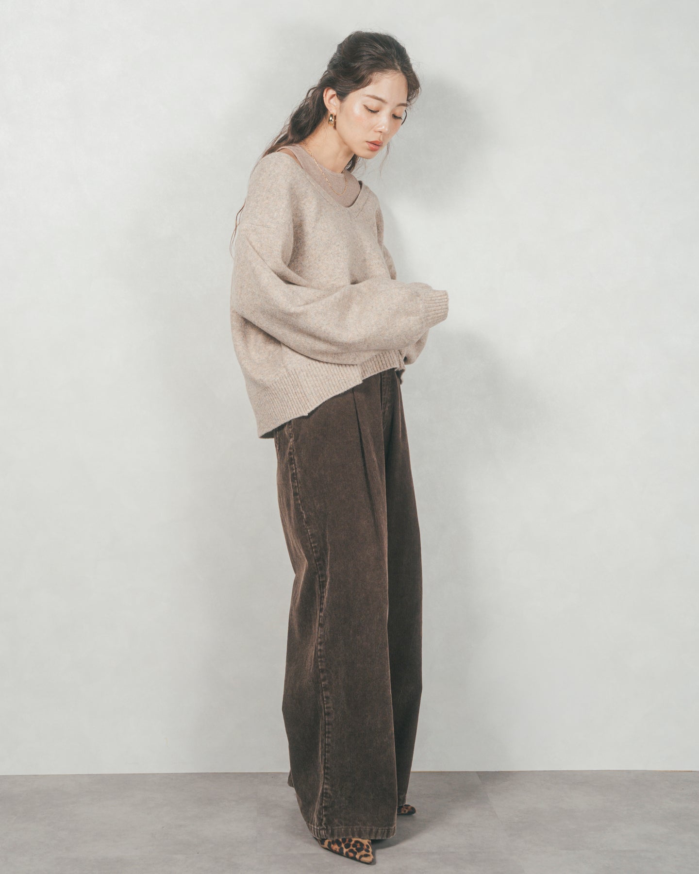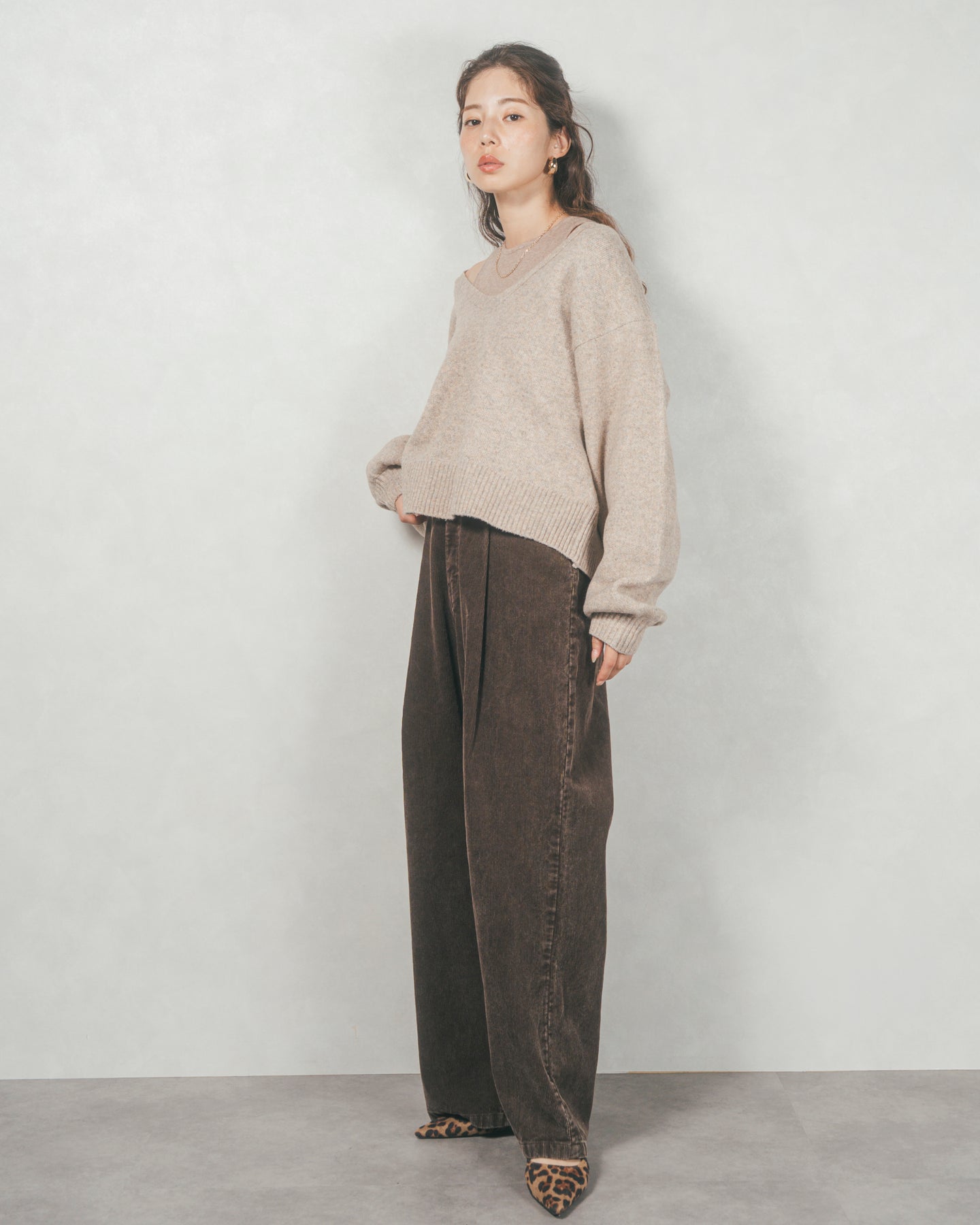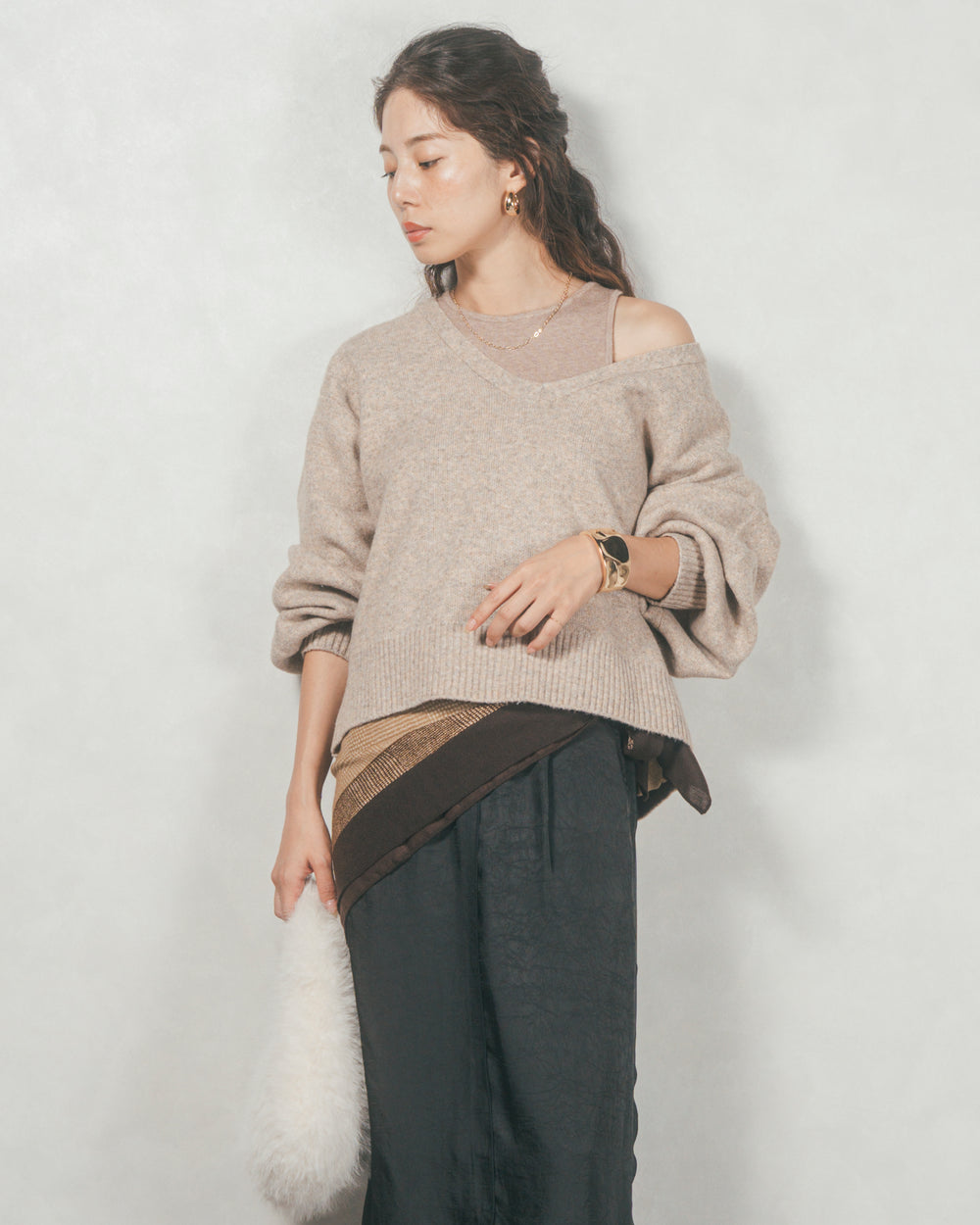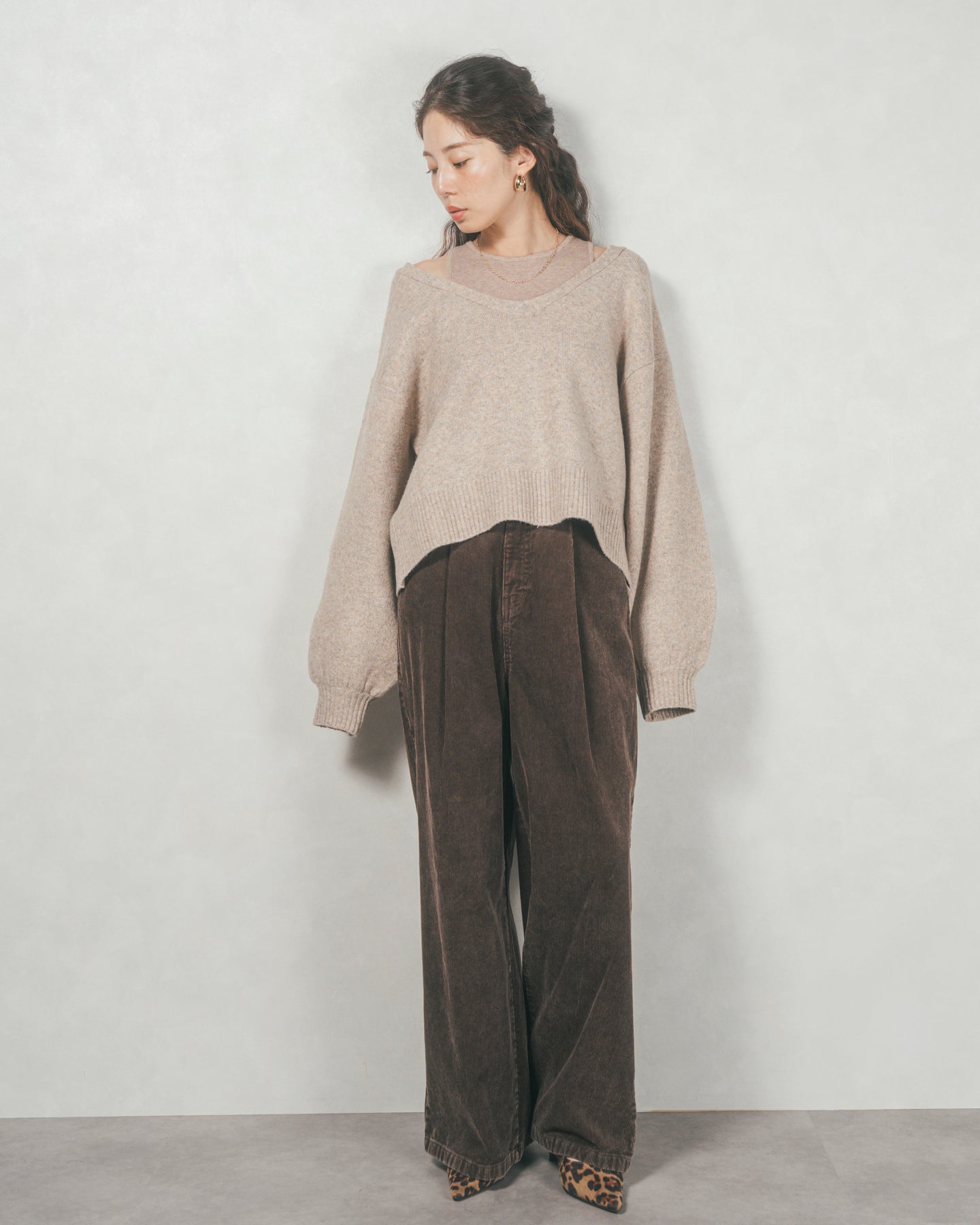 メランジVネックニットレイヤードセット(GREIGEx BEIGE)