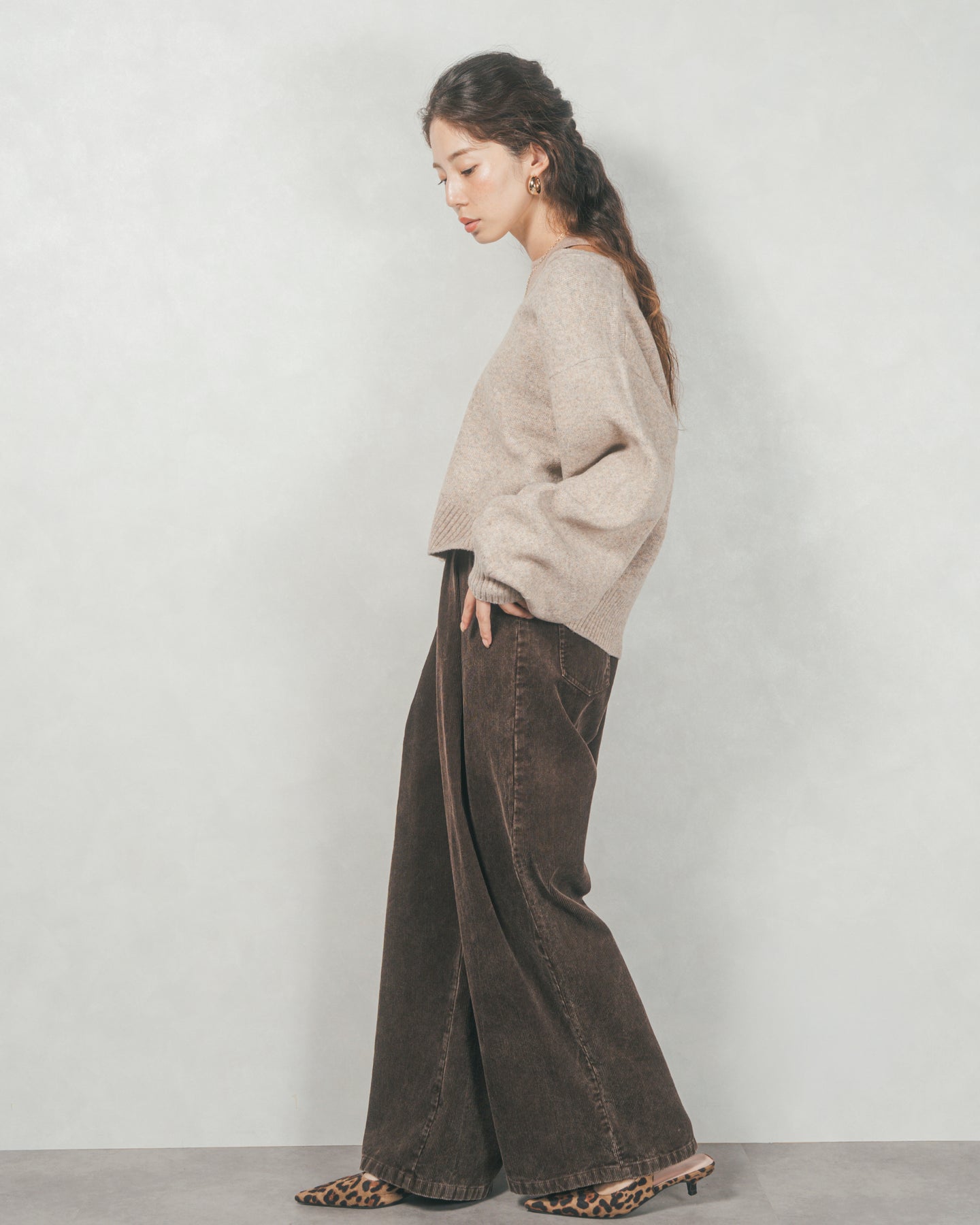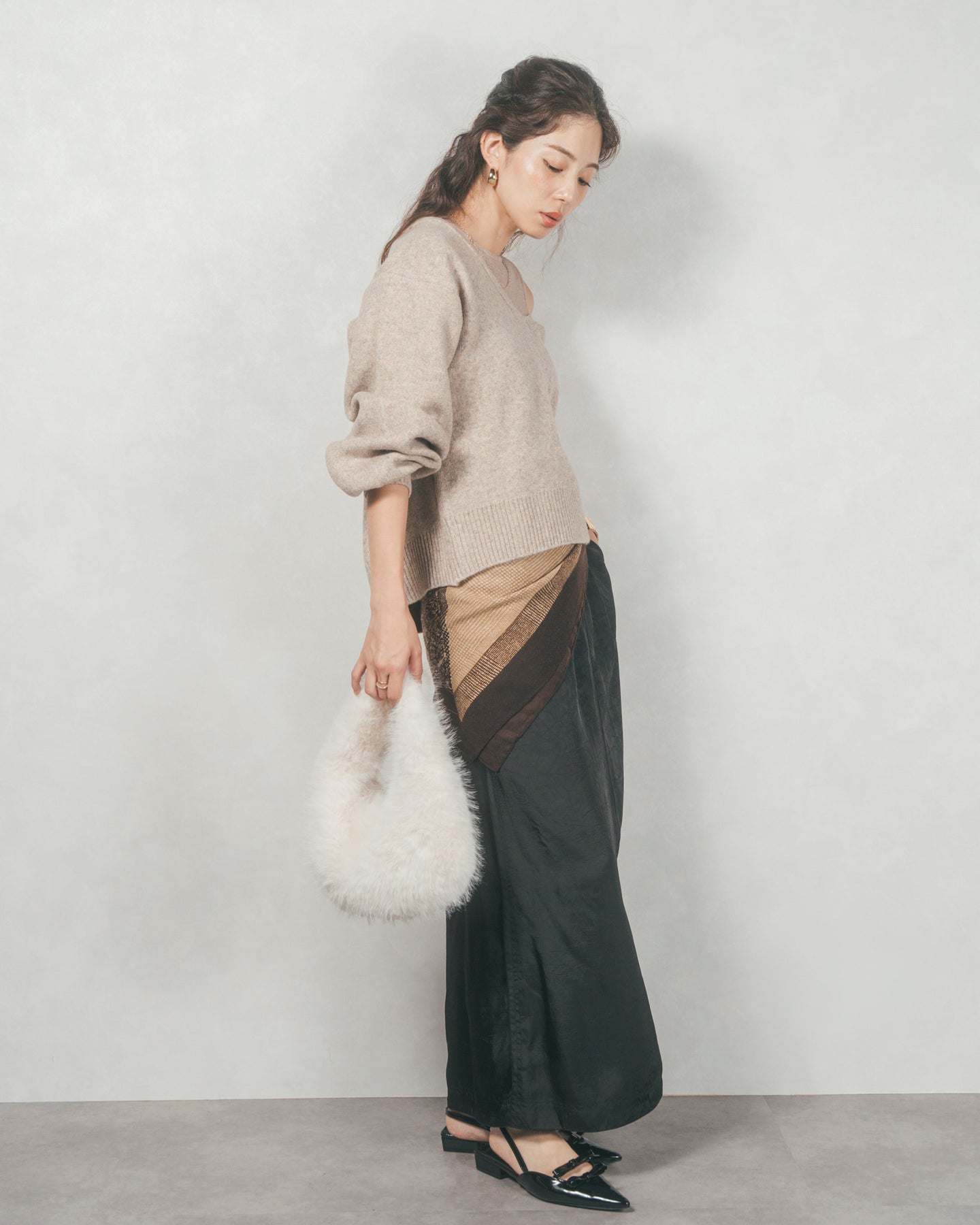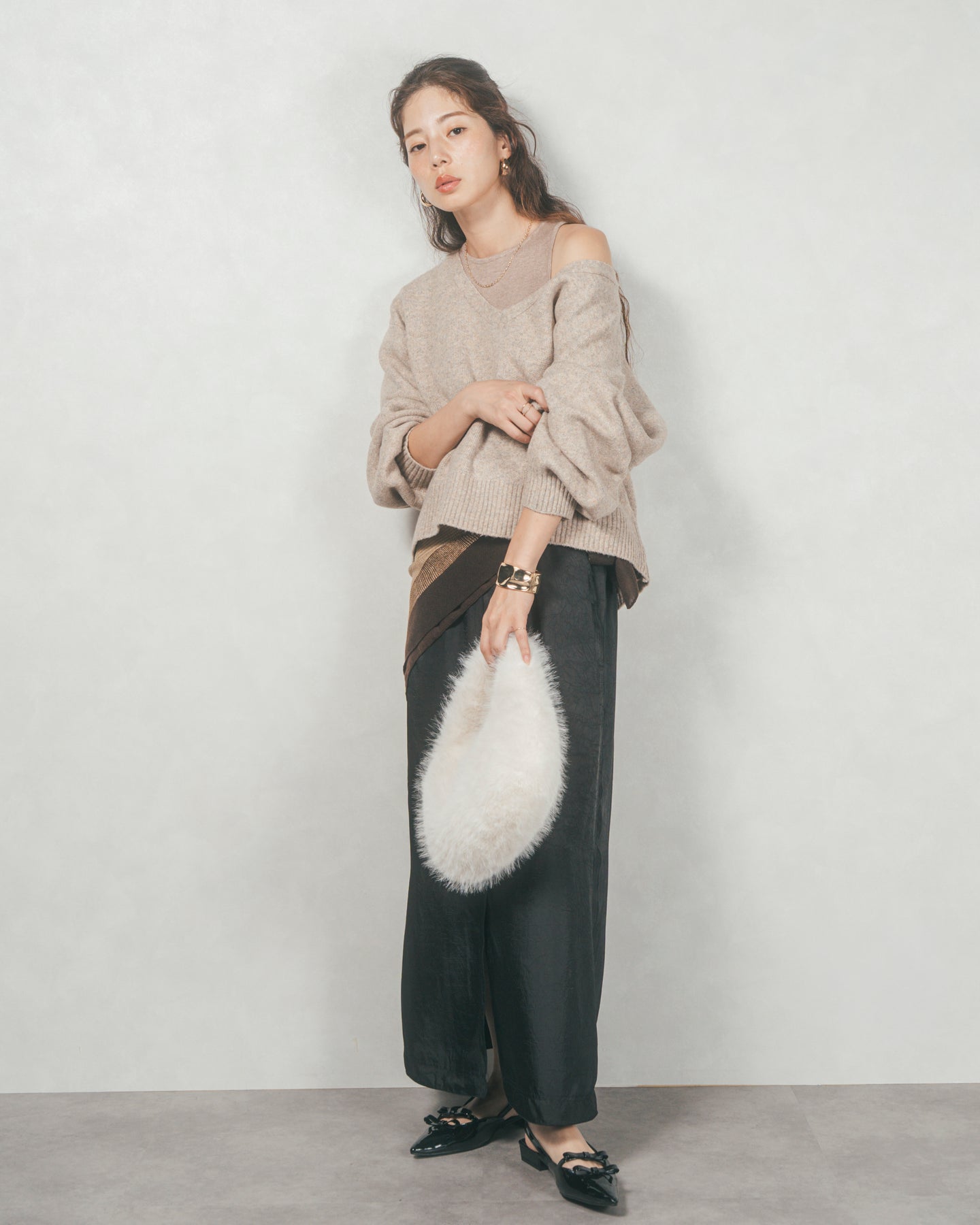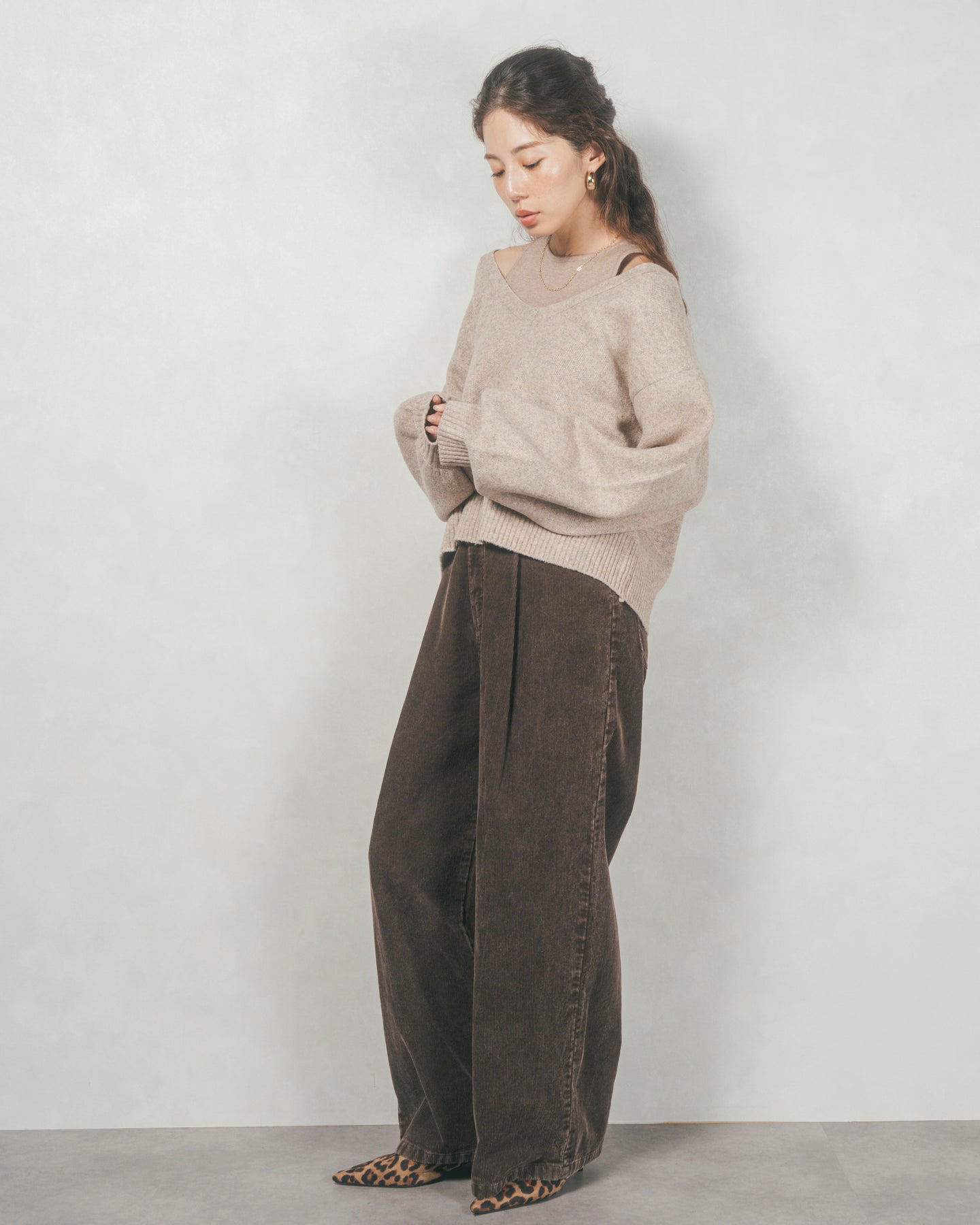 メランジVネックニットレイヤードセット(GREIGEx BEIGE)