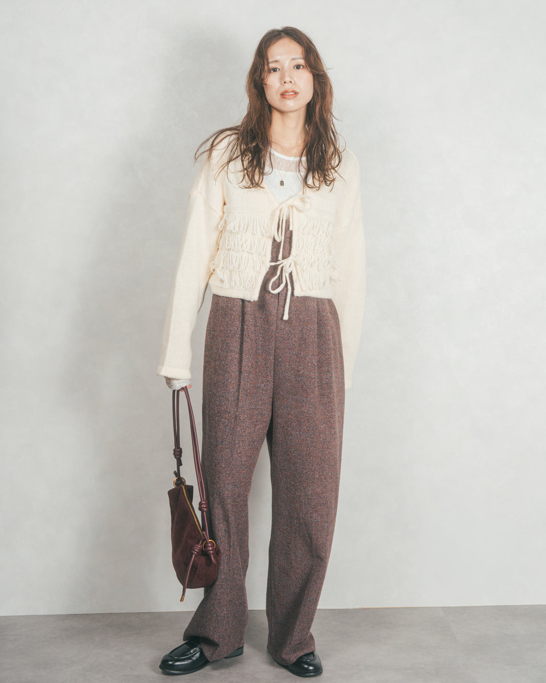 ループ編みフリンジカーディガン (IVORY)
