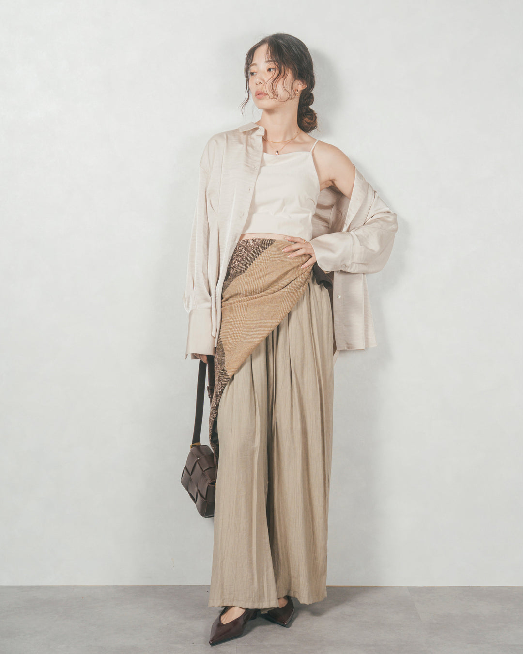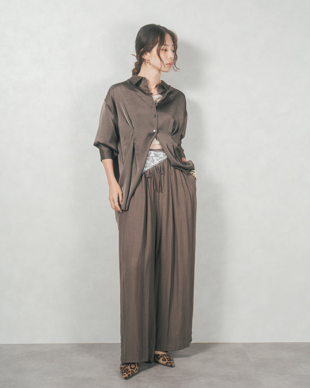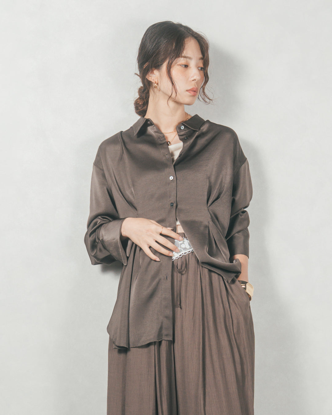 [SET]マットサテン タックシャツ+ワッシャーポプリンイージーパンツ(2SET)