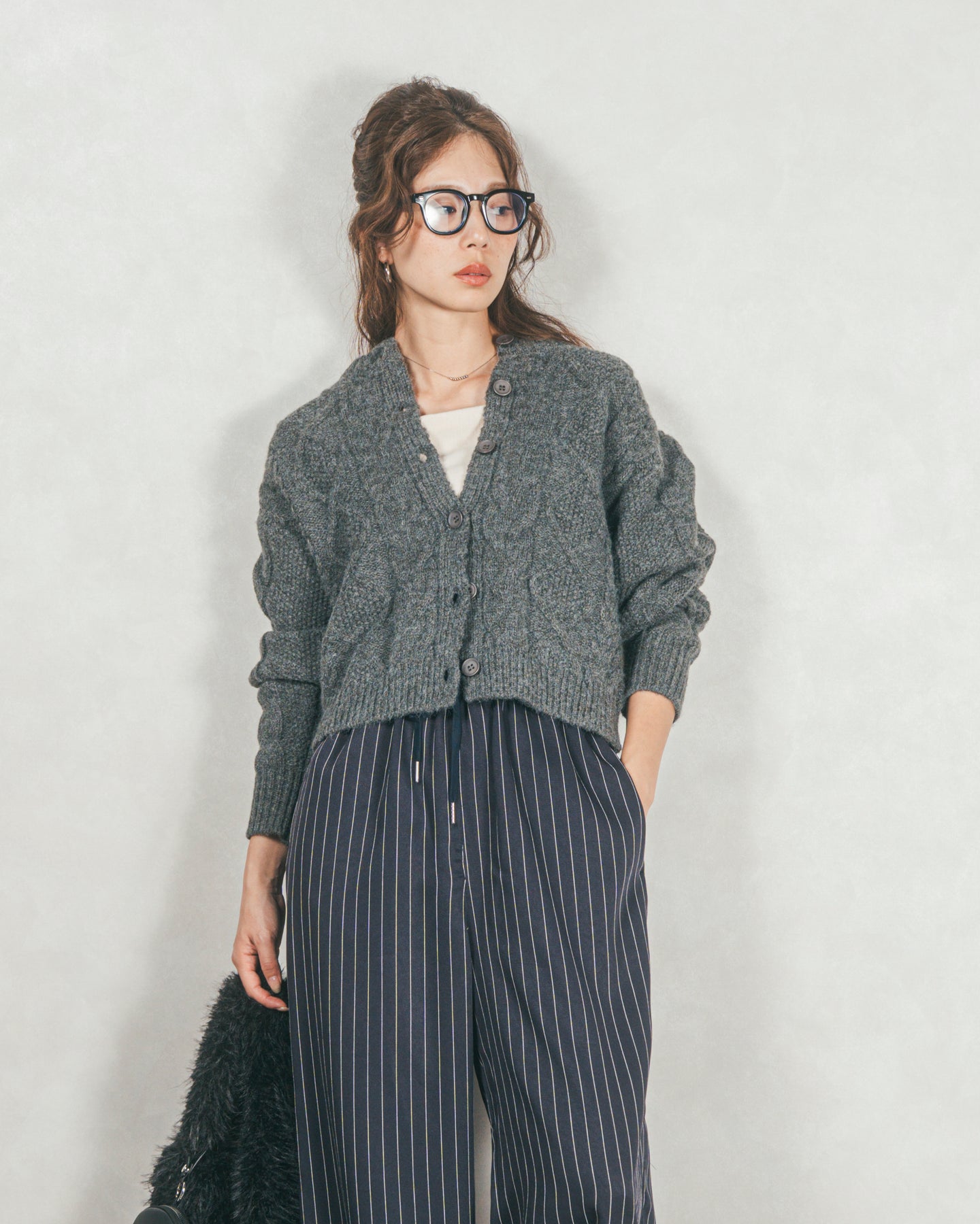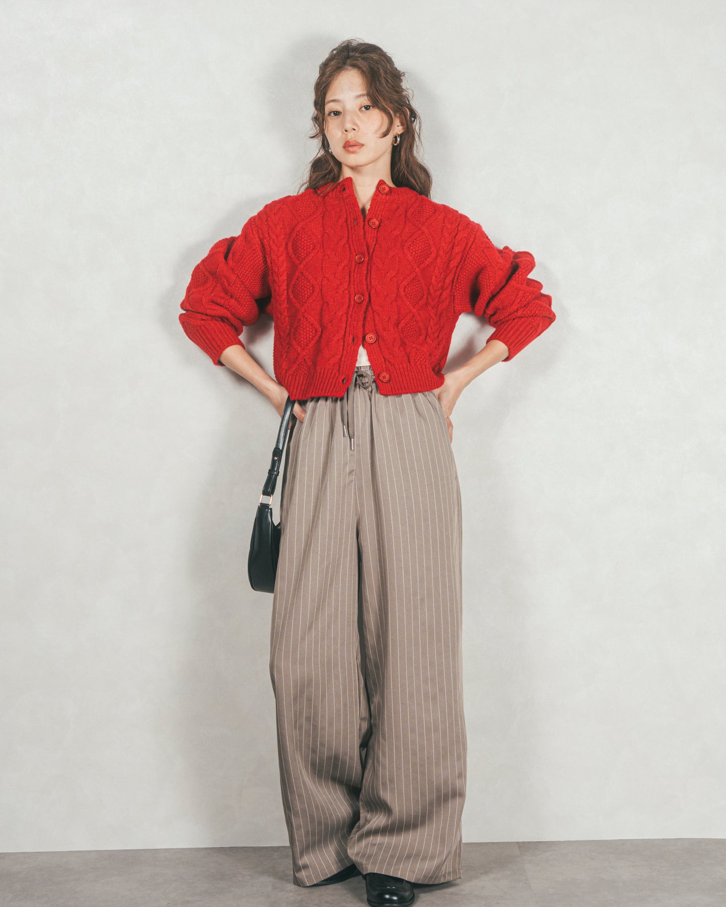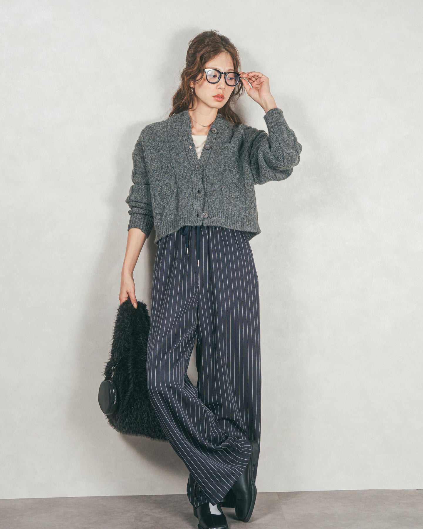 [SET]ケーブルKnitクルーカーディガン+Relaxストライプパンツ
