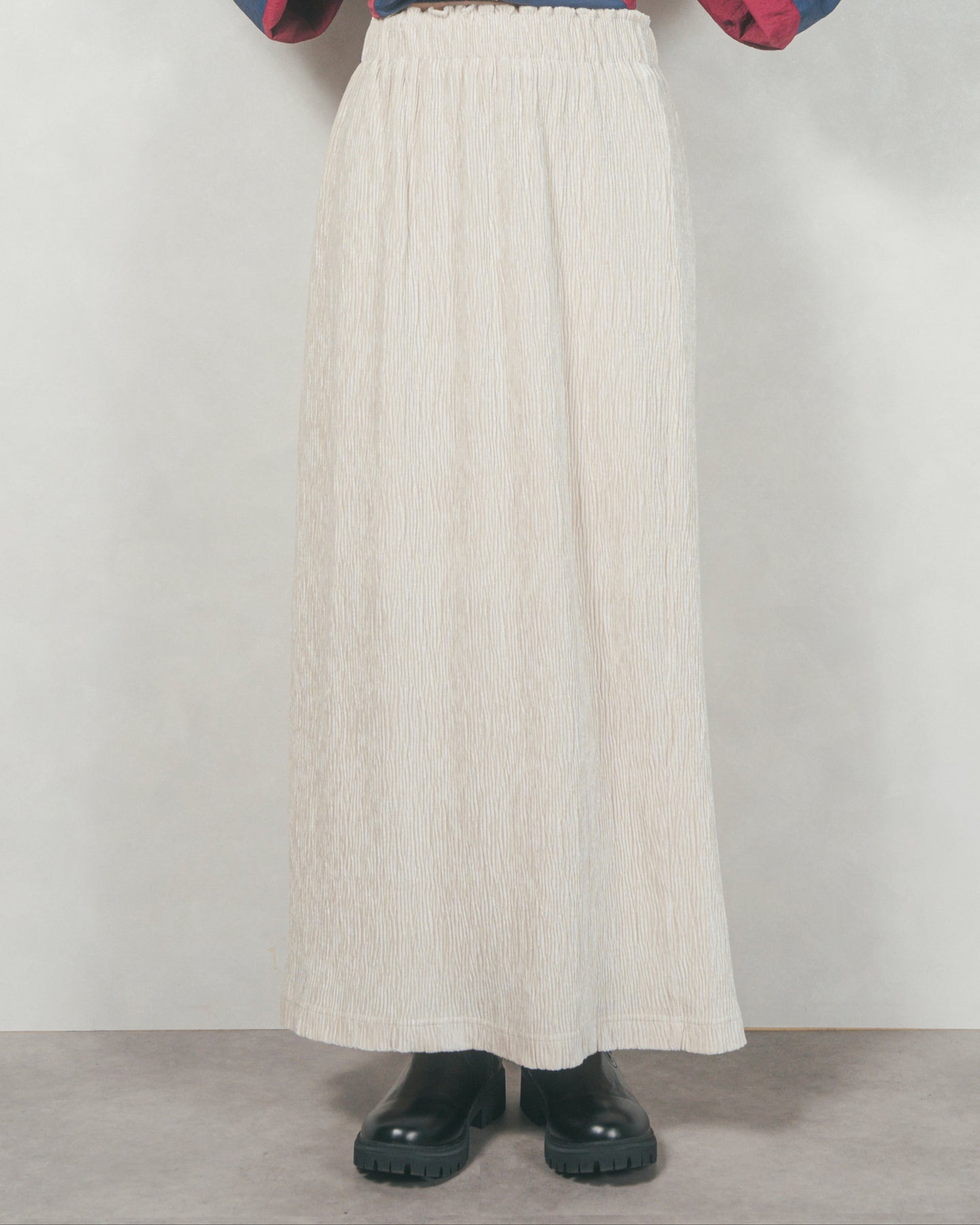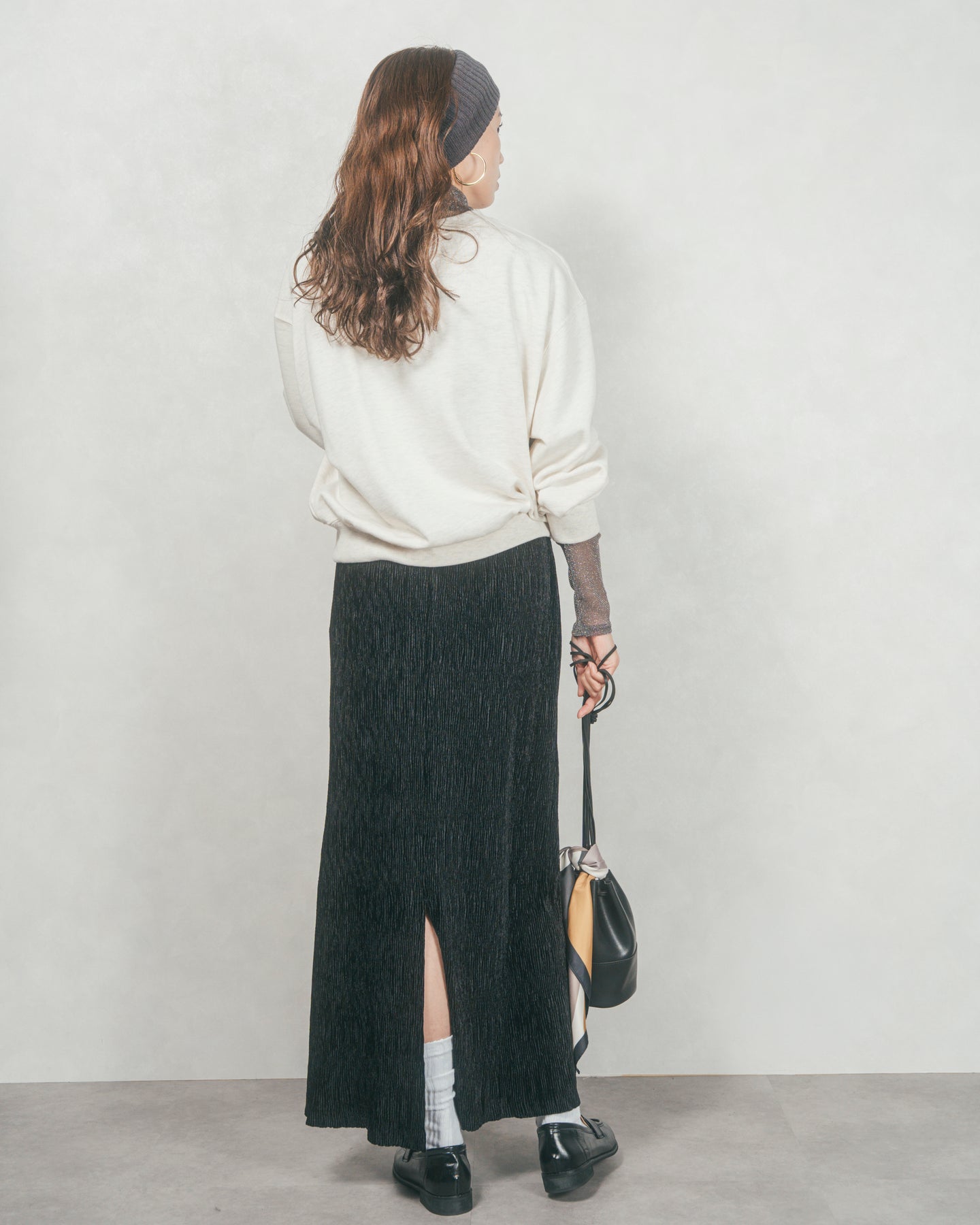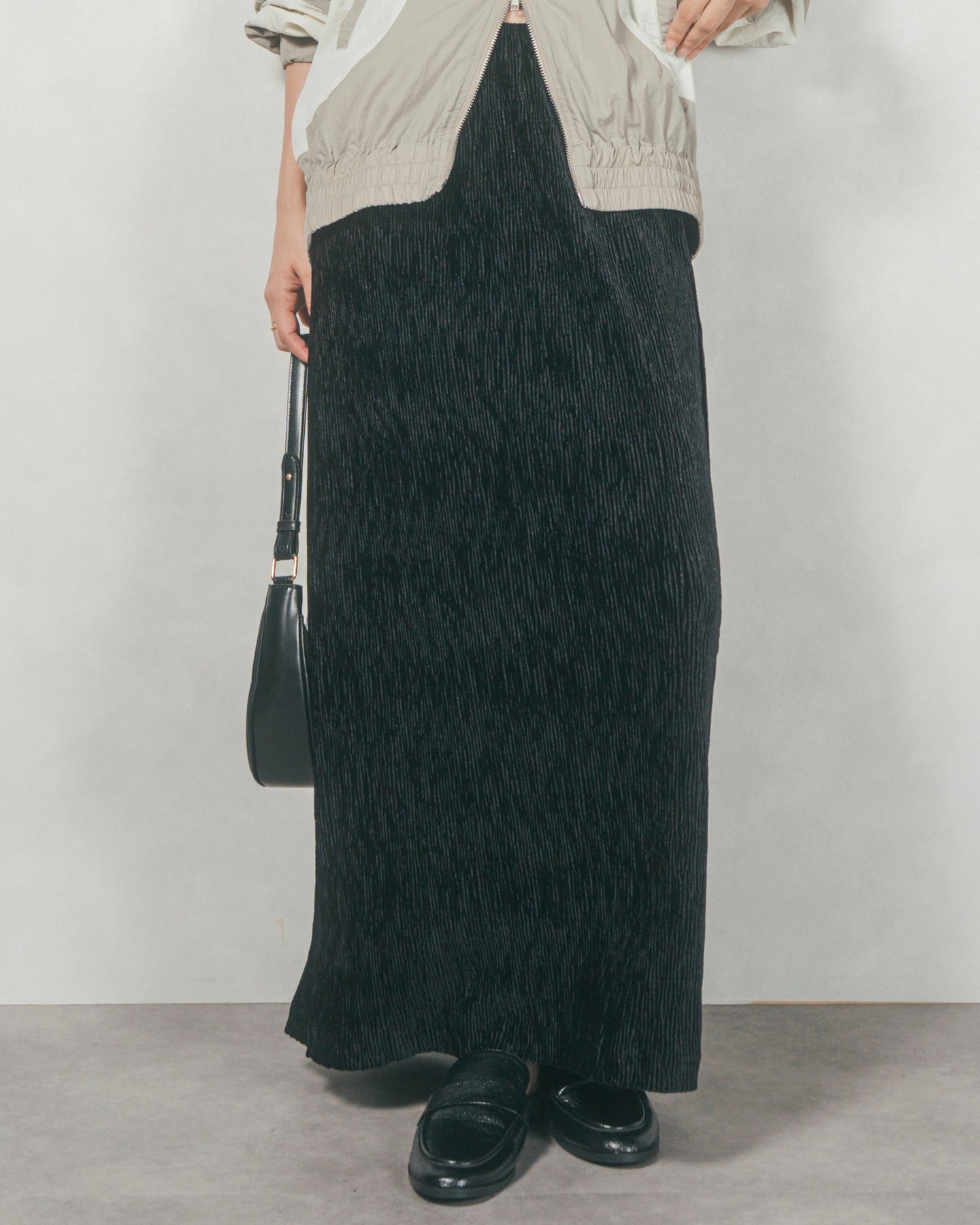表面にランダムプリーツの凹凸感が施された、表情豊かなベロア素材。