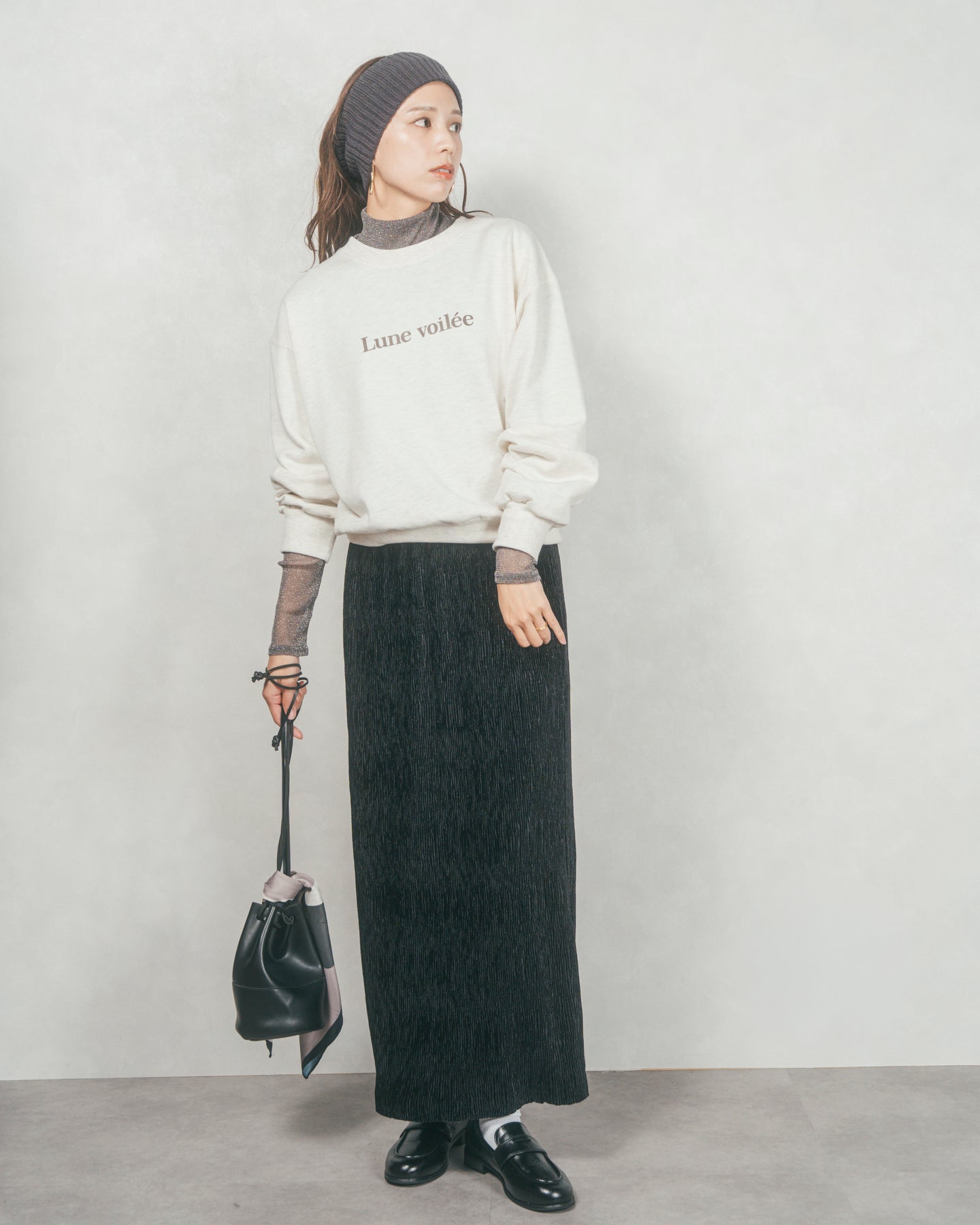[SET]フロントシリコンLogoスウェット+ベロアNarrowスカート