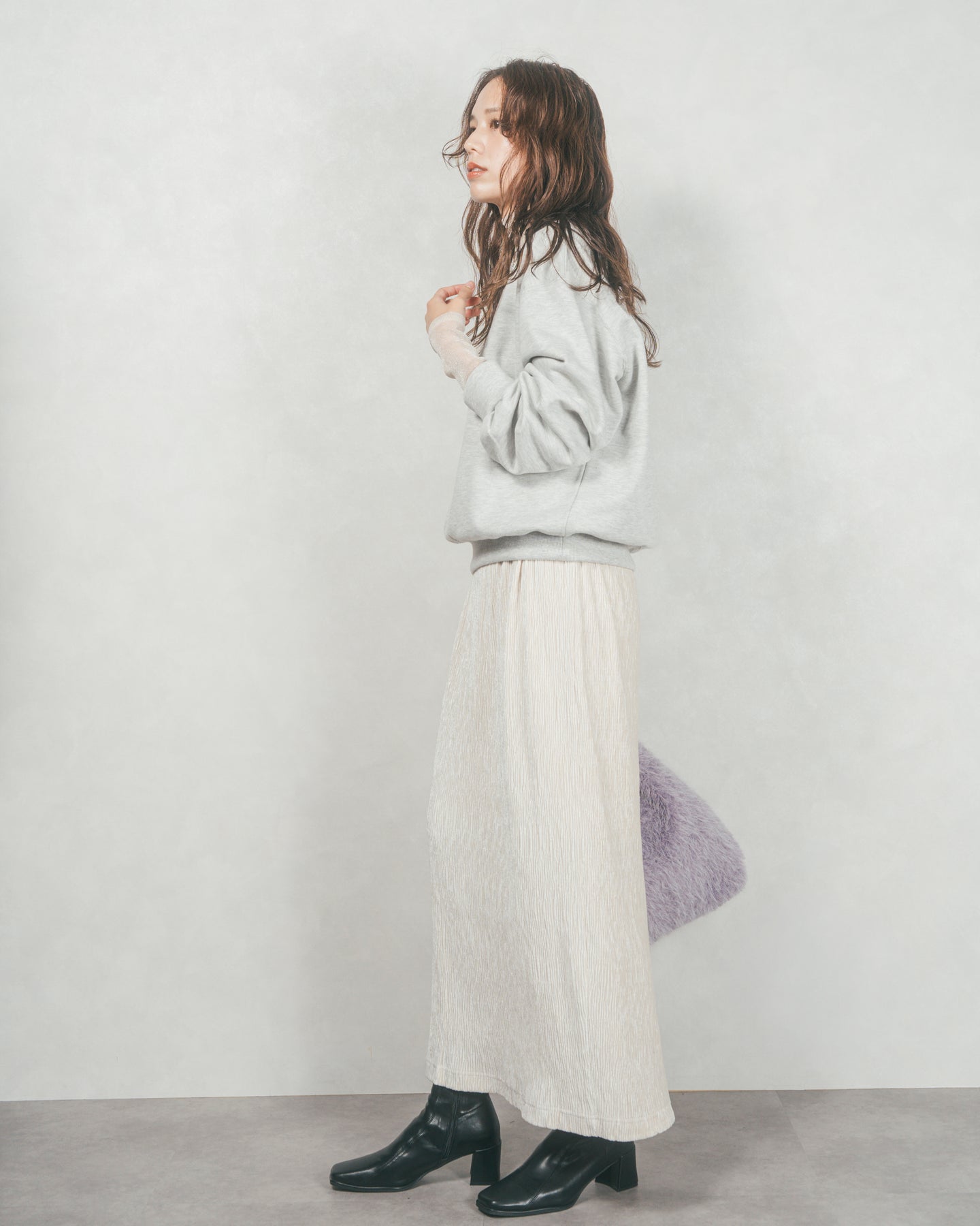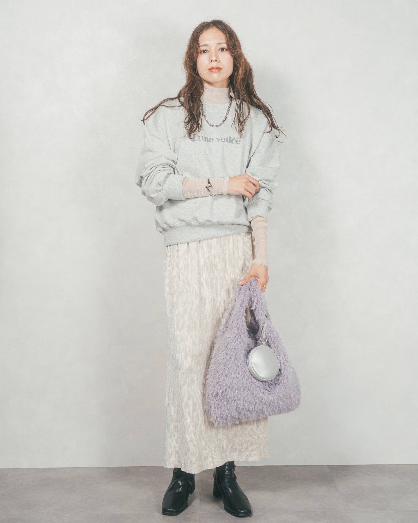 こっくりとしたカラーと素材感が、秋冬の着こなしに抜け感をプラス。ボリュームのあるトップスに合わせてすっきり見せたり、カジュアルになりがちなスウェットにあわせてきちんと感をプラスするのも◎