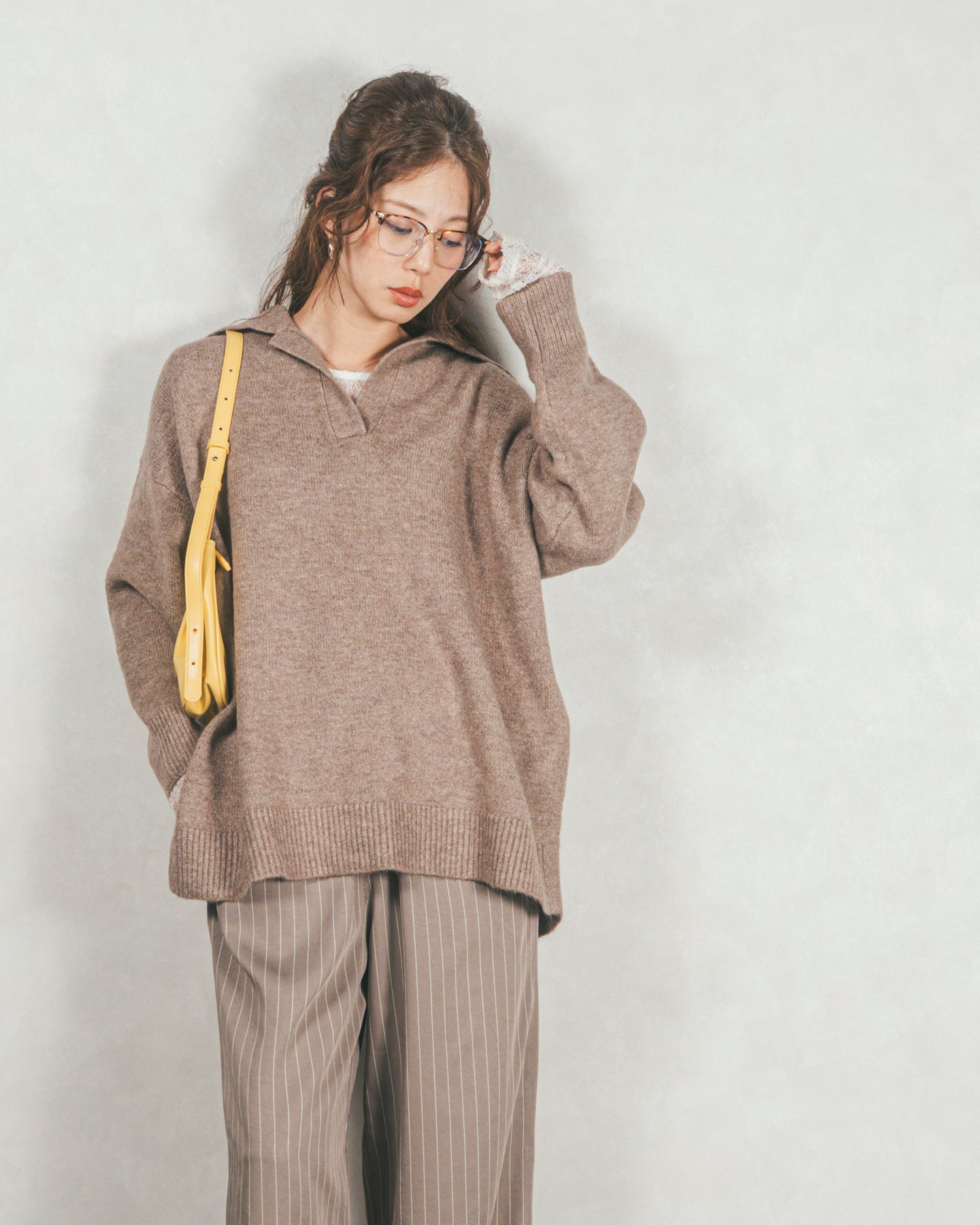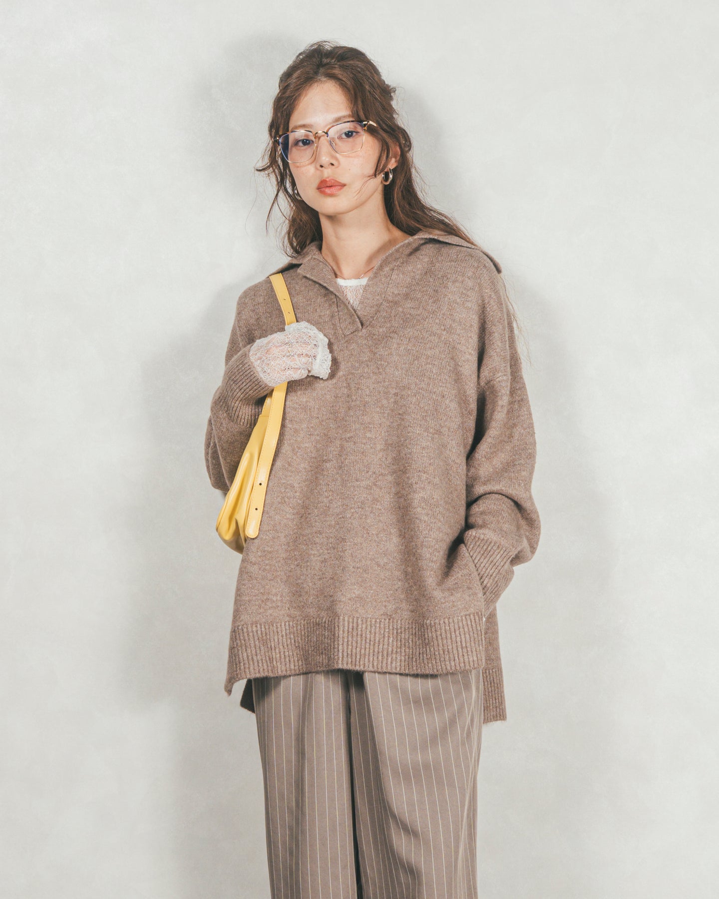 ニットなのにきちんと感。今っぽいムードの襟つきニット