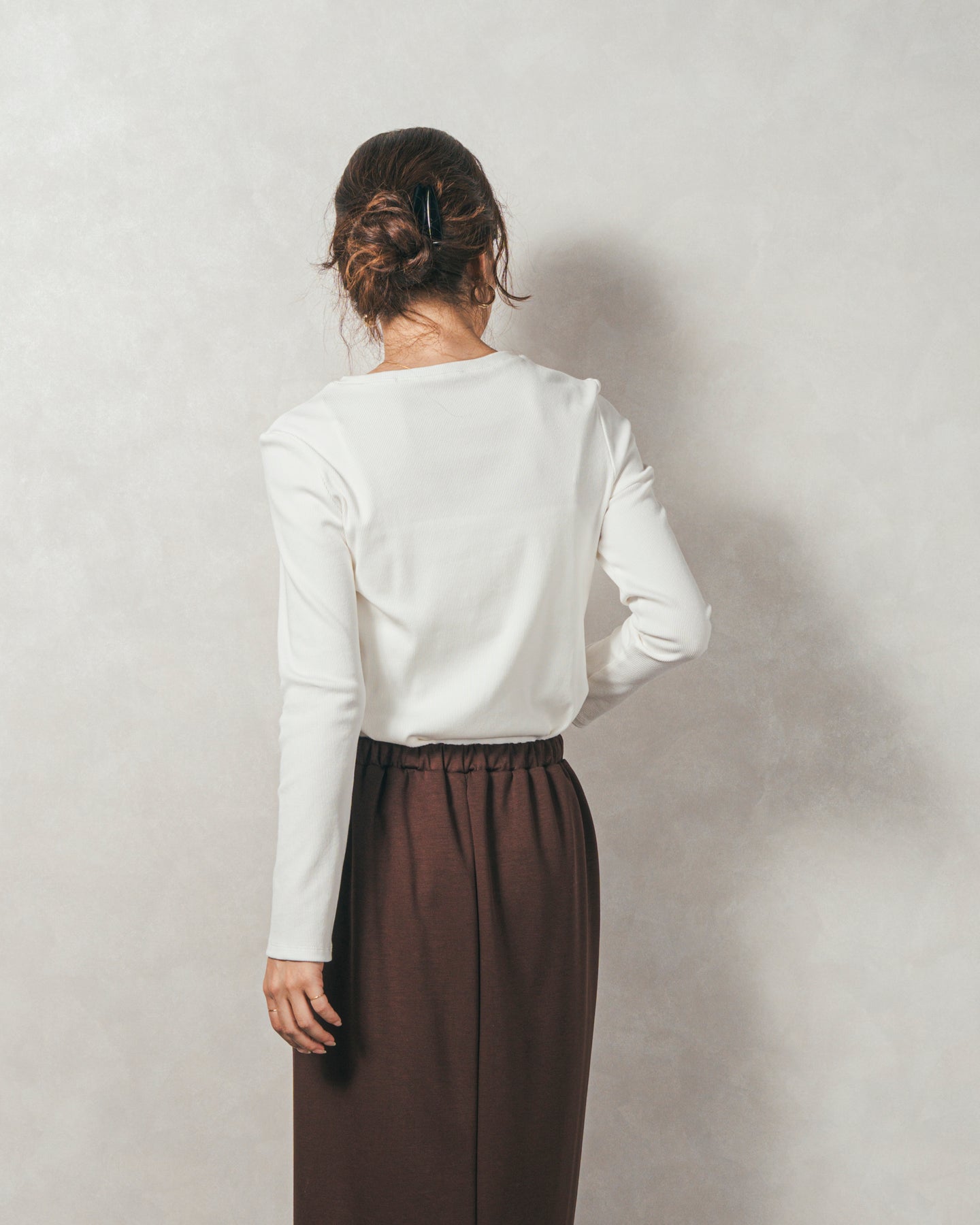 同素材のトップスと合わせれば、統一感のあるセットアップスタイルが完成。ちょっとしたお出かけやランチにも最適です。 カジュアルダウンするなら、ロゴTシャツやスニーカーと合わせても◎ オン/オフどちらも使えるアイテムです。