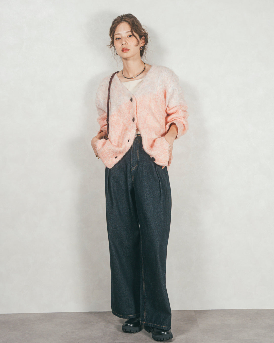 裾にさりげなくシアー素材をあしらい抜け感をプラスしたヘムシアーパンツ。ストンと落ちるワイドストレートシルエットにセンタープレスが施され、すっきりとした印象に。タック入りで程よいボリューム感があり、オケージョンシーンはもちろん、トップス次第でカジュアルにも対応可能な万能アイテムです。バックウエストは平ゴム仕様でストレスなく着用でき、ポケット付きで機能性も◎