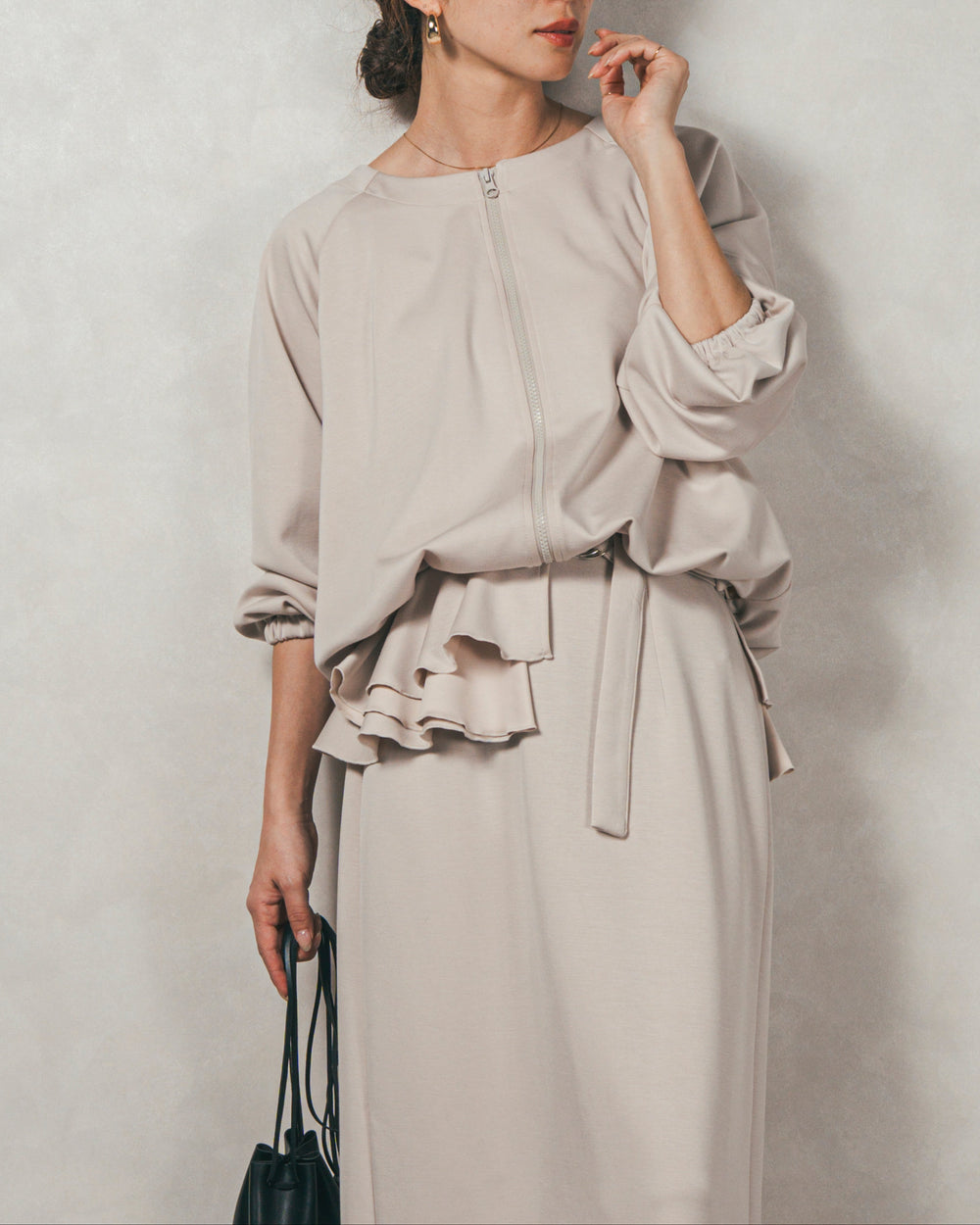 バックフリル ライトポンチZIPブルゾン (IVORY)