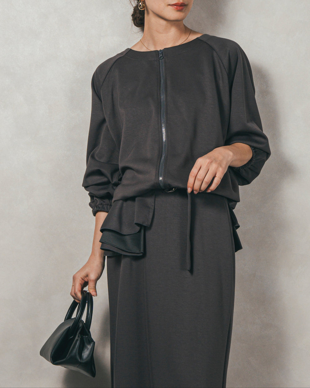 バックフリル ライトポンチZIPブルゾン(CHARCOAL)