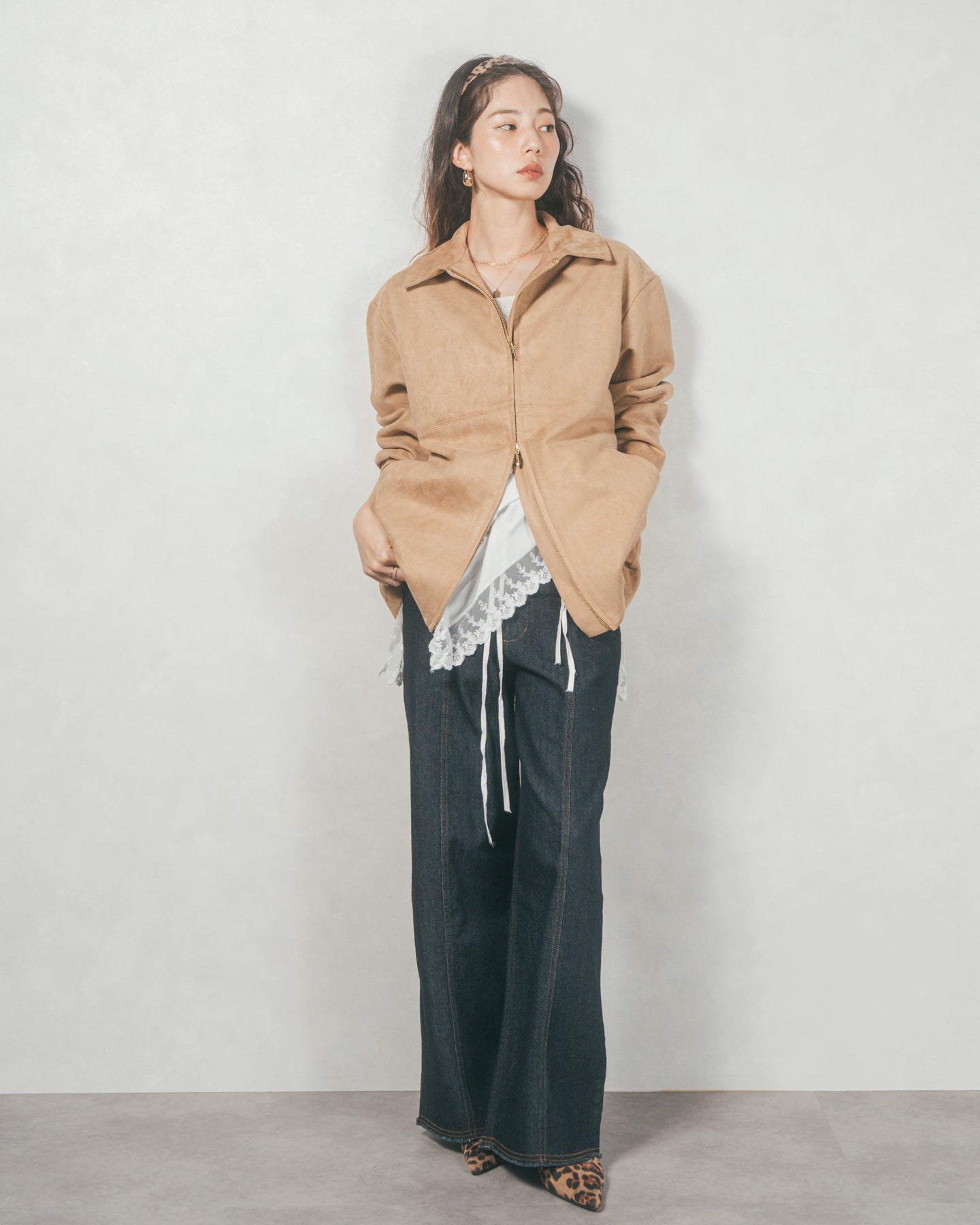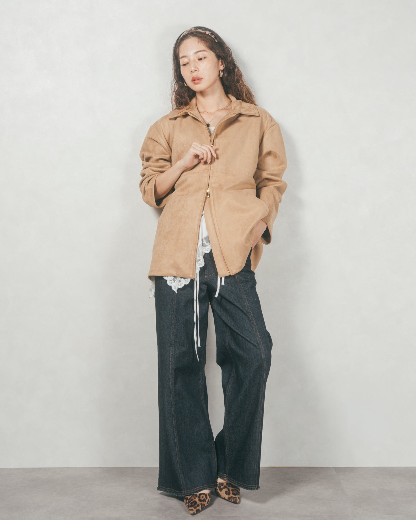 この秋、一枚は持っておきたい大人のオーバーブルゾン。しっとりとした手触りと上品な風合いが魅力のスエード素材に、ストレッチを効かせた着心地の良さが魅力です。ほどよい厚みとハリ感がありながら、柔らかく体になじむ絶妙なバランス。