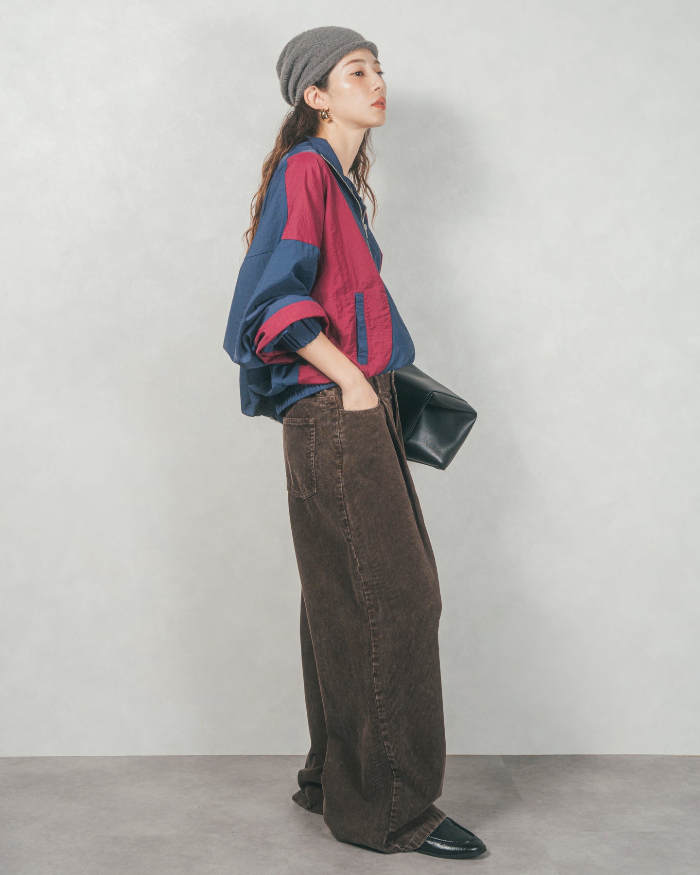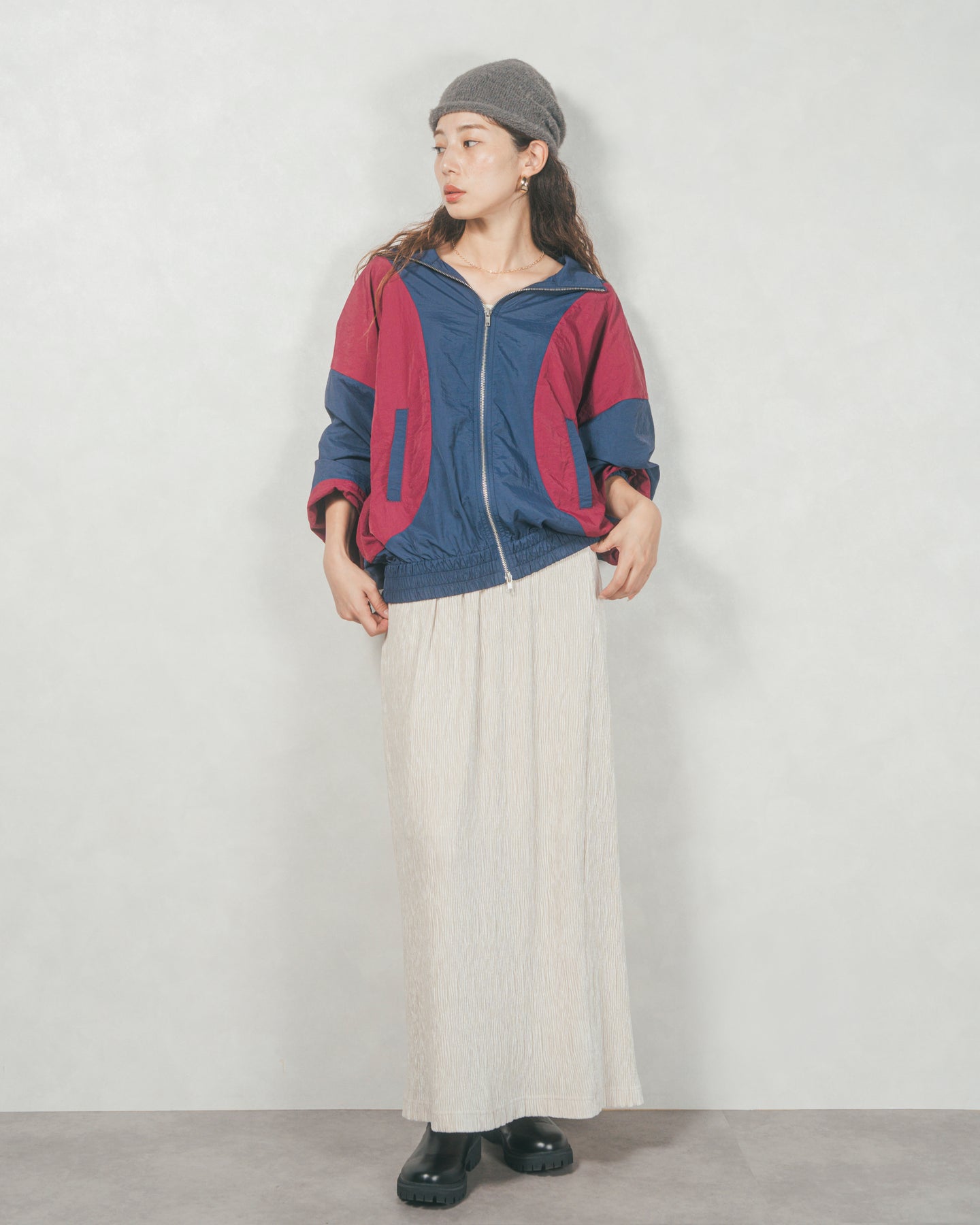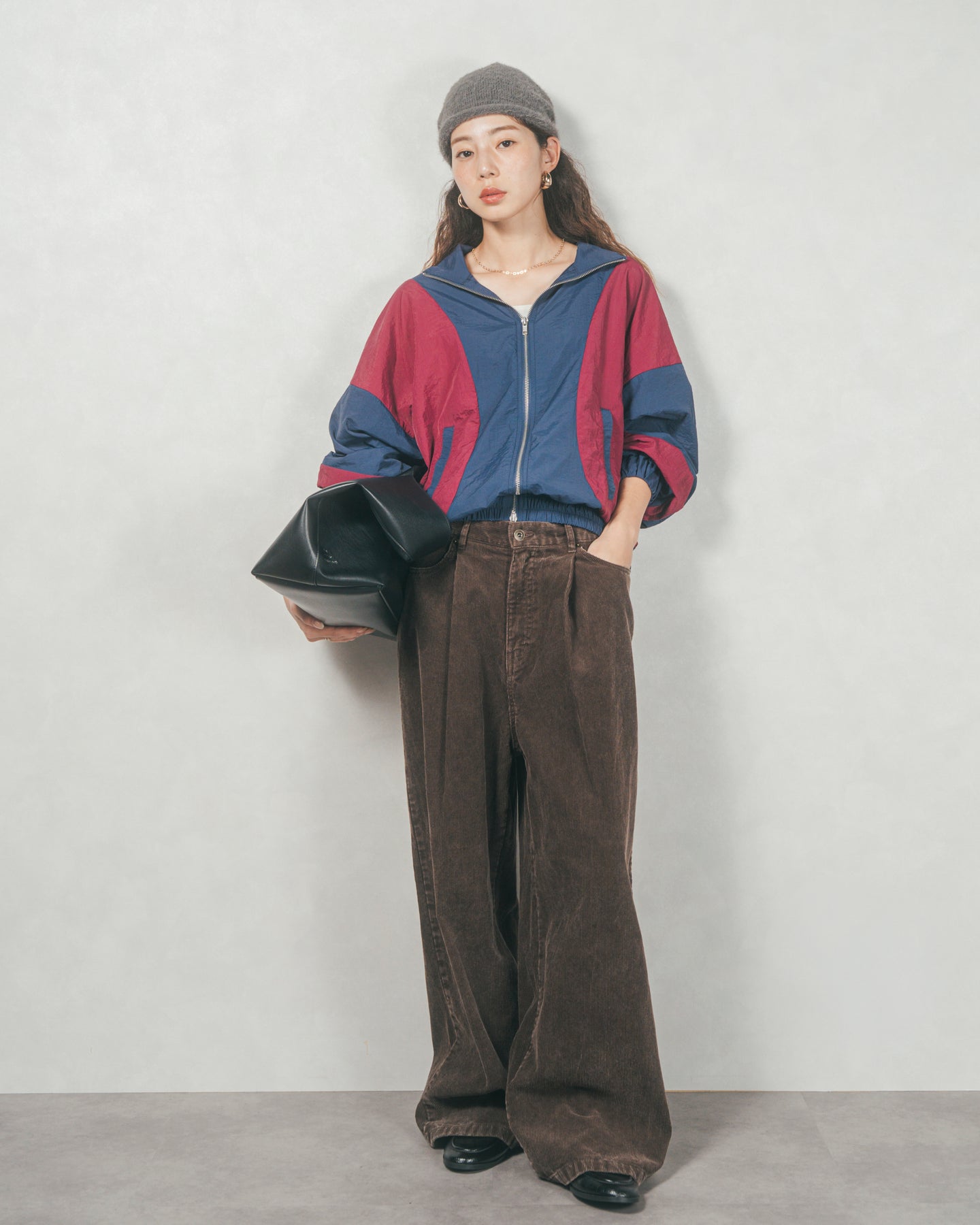 バイカラーオーバーサイズブルゾン (NAVY x BORDEAUX)