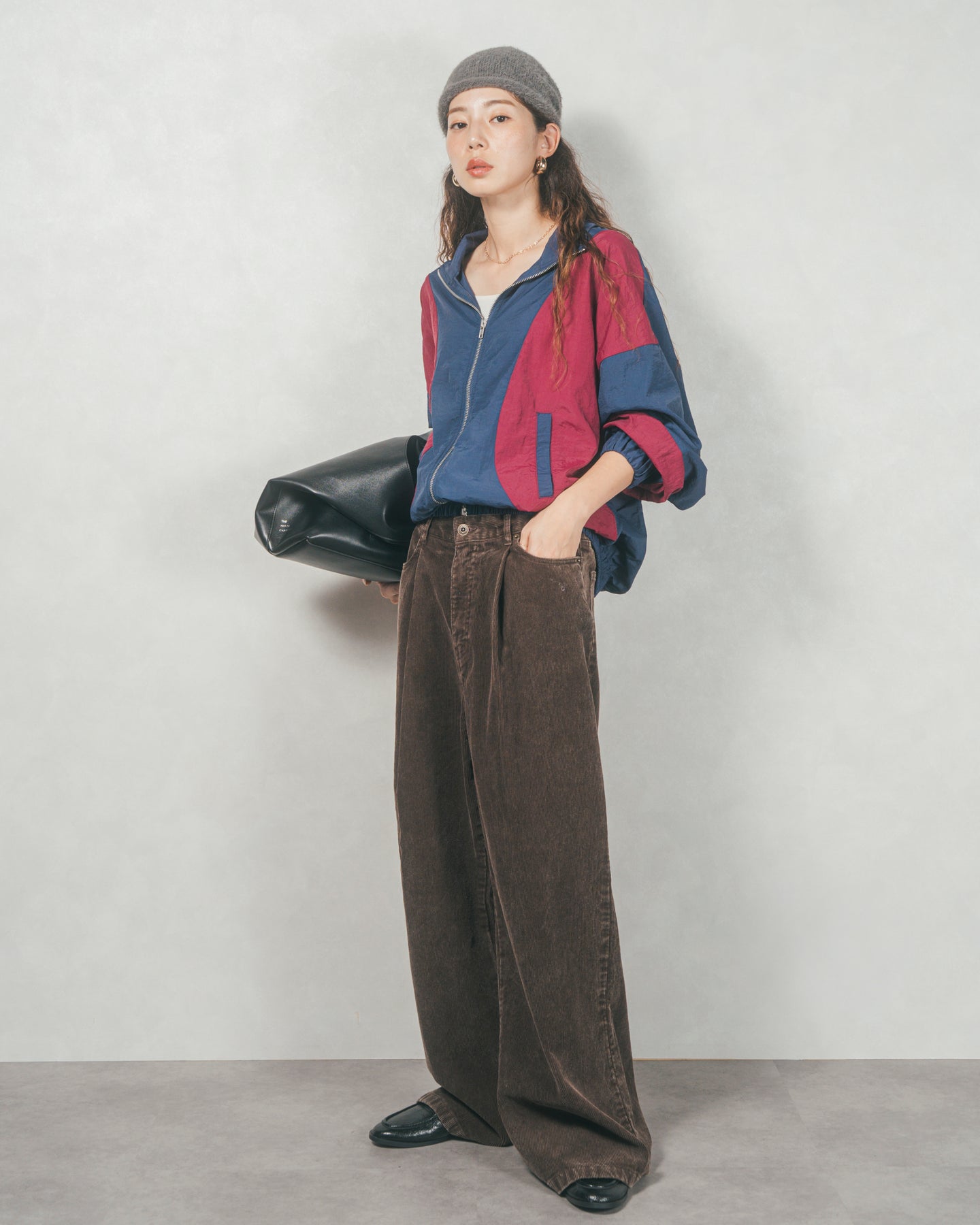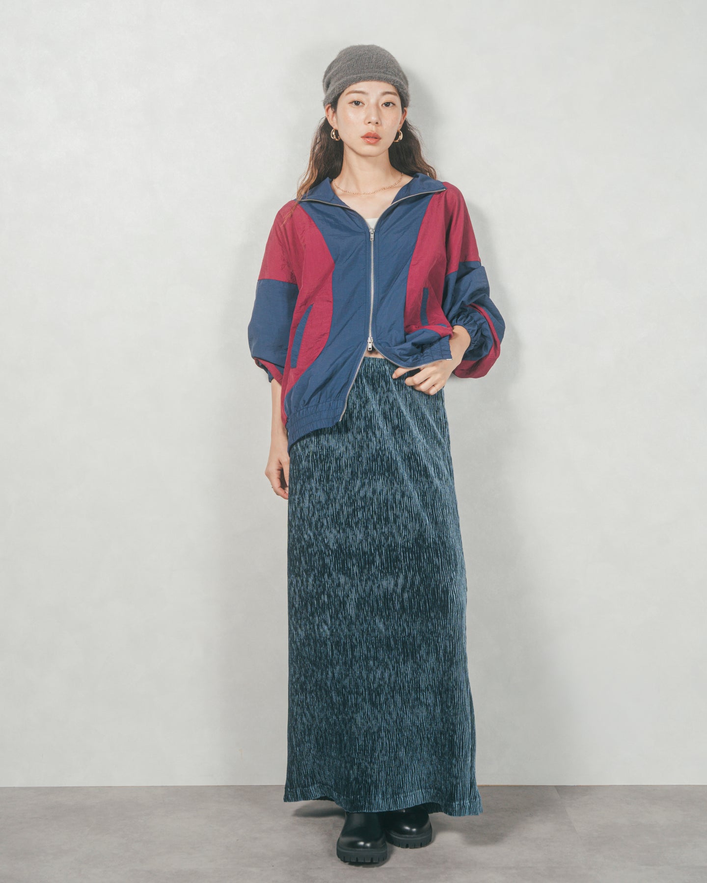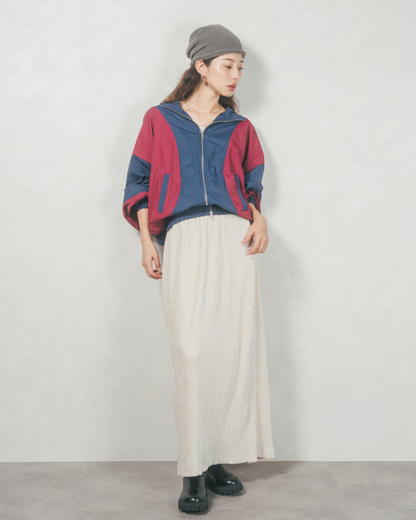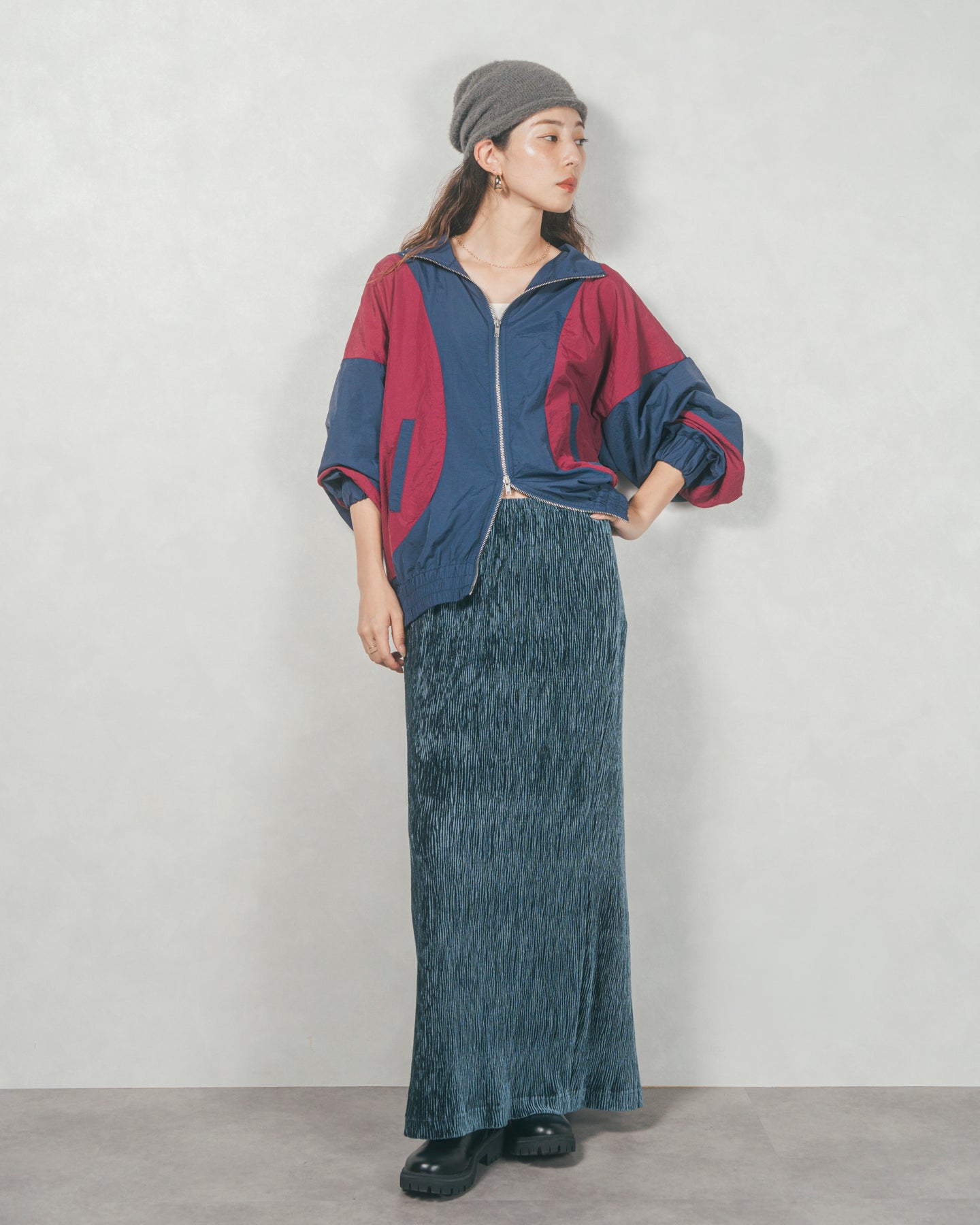 バイカラーオーバーサイズブルゾン (NAVY x BORDEAUX)