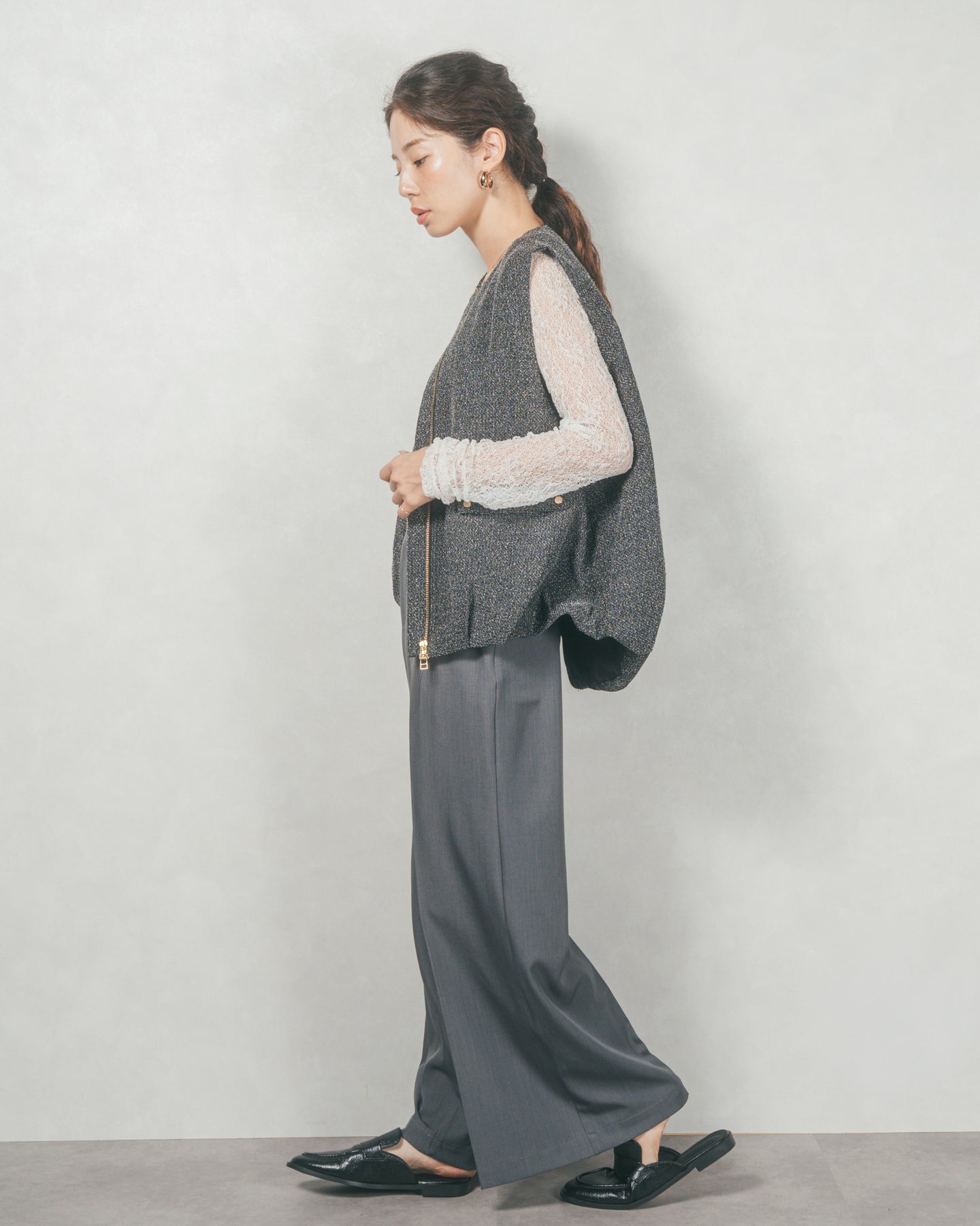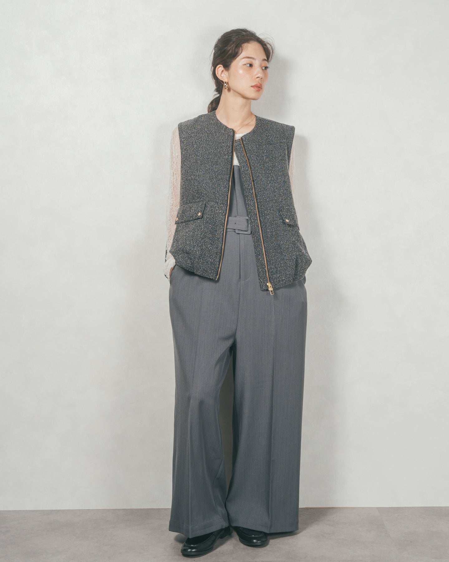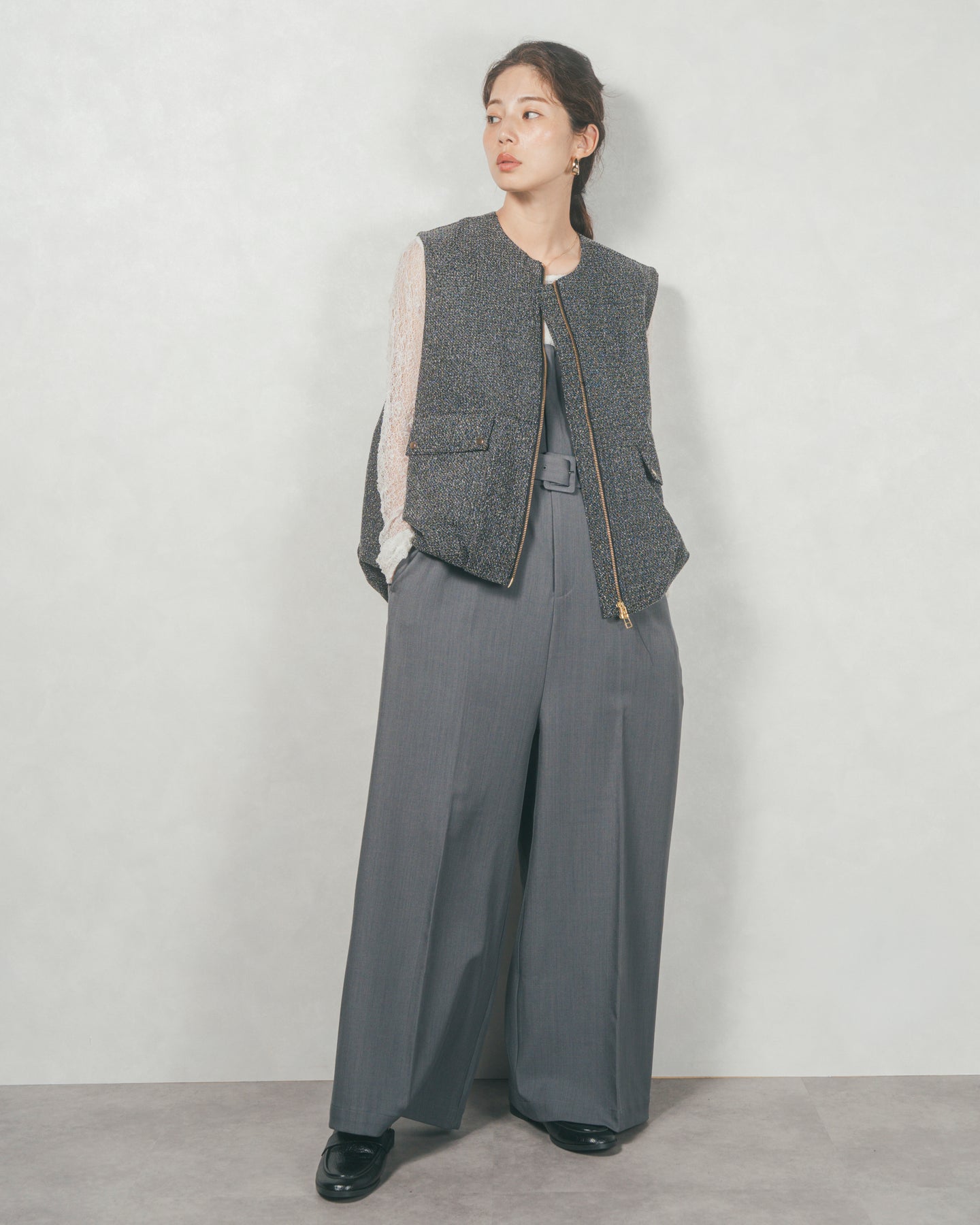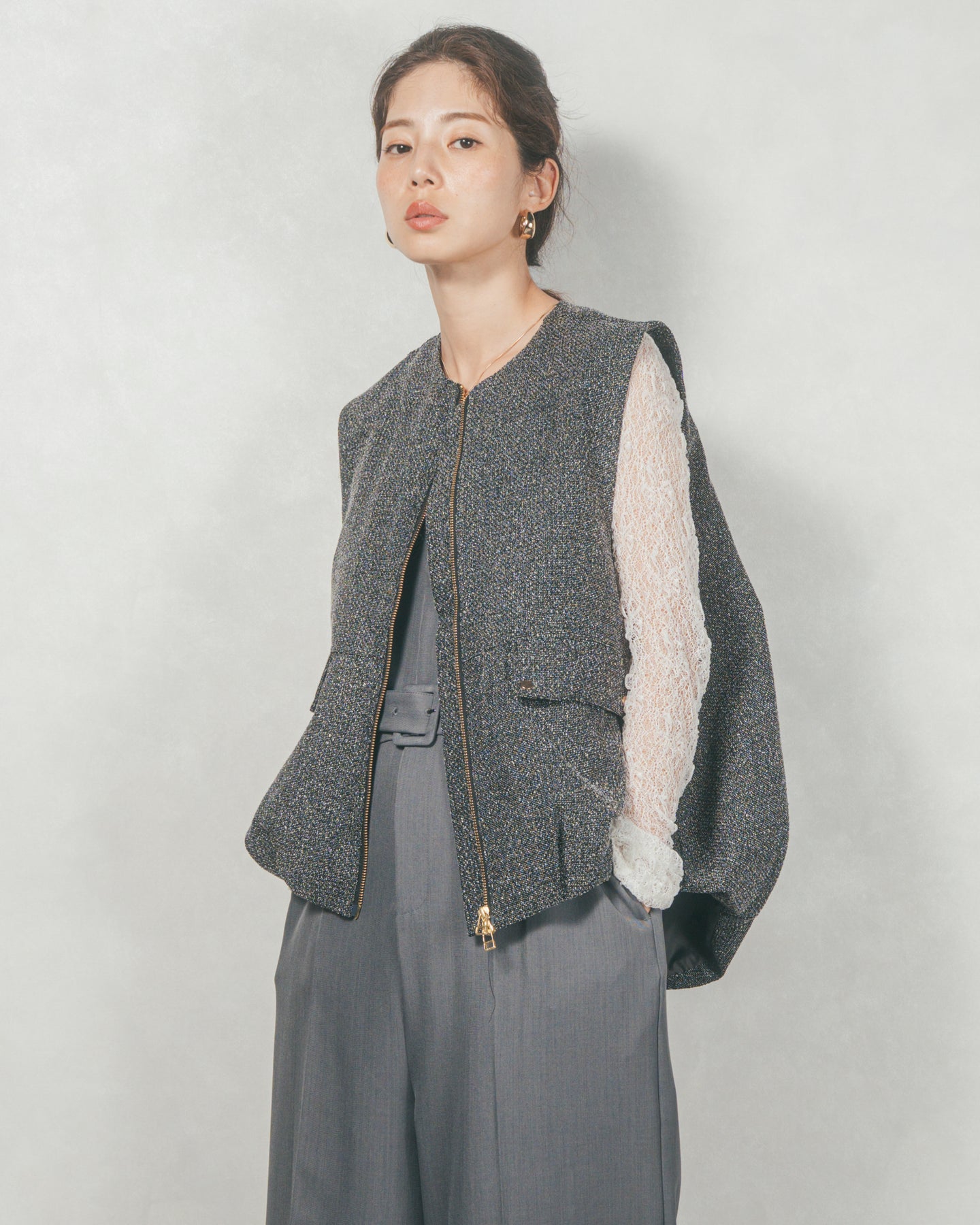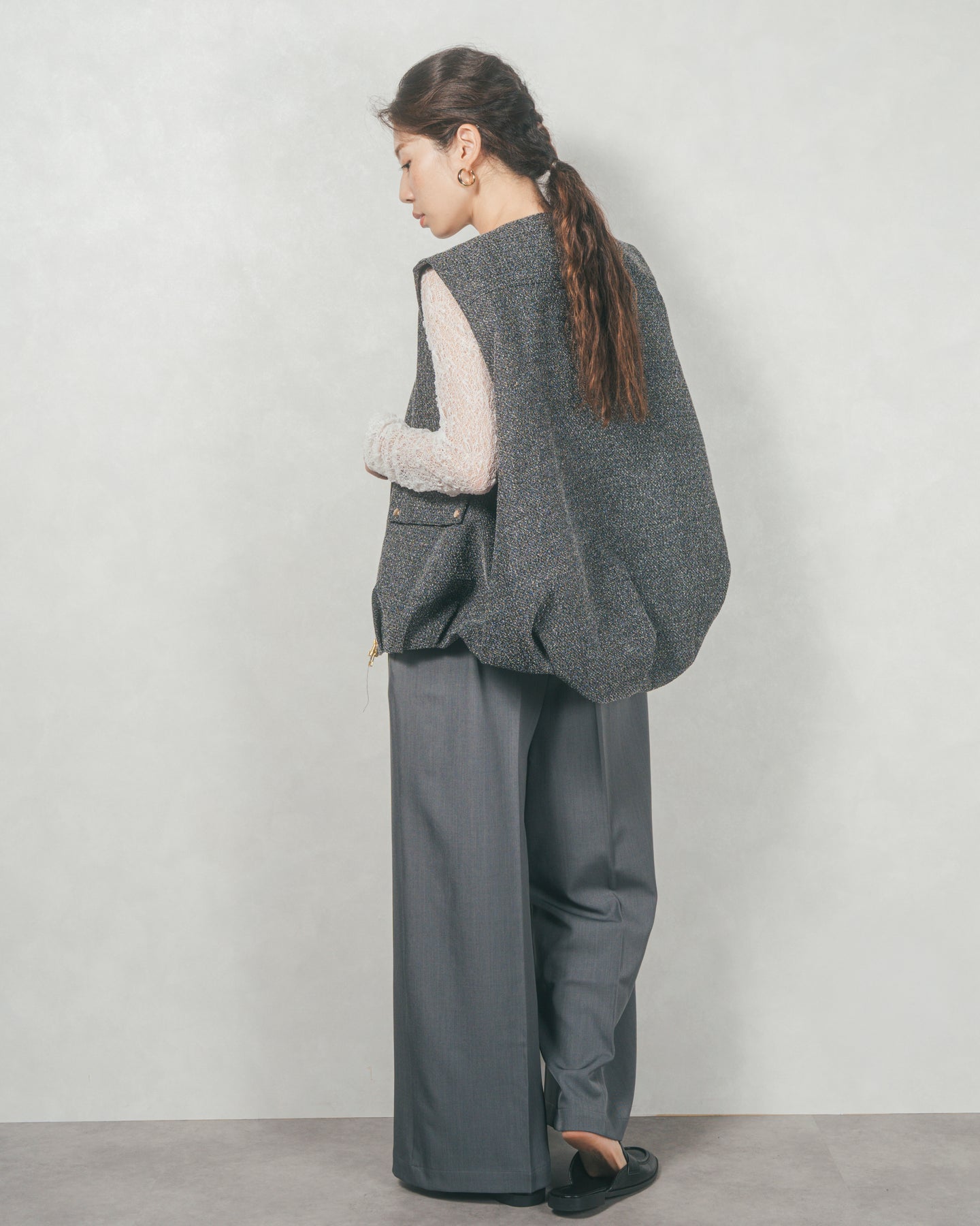 ネップ入りTweedバルーンベスト(BLACK)