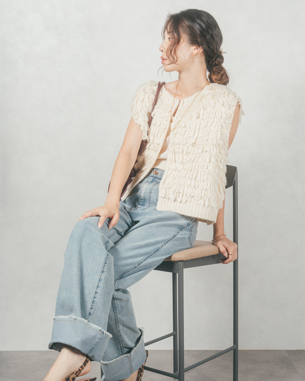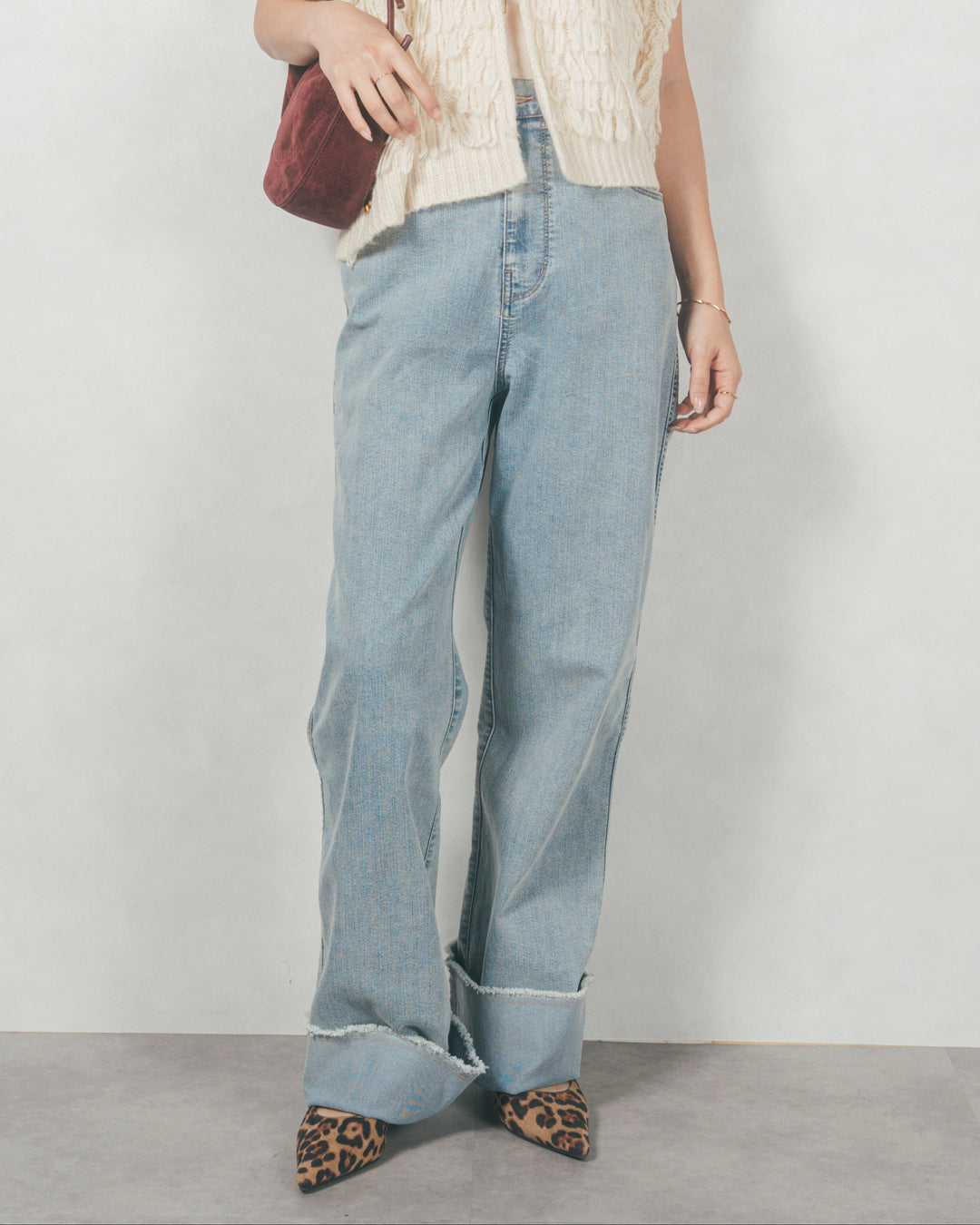 [SIDE ウエストゴム入り]ワイドバギーデニム(BLEACH)