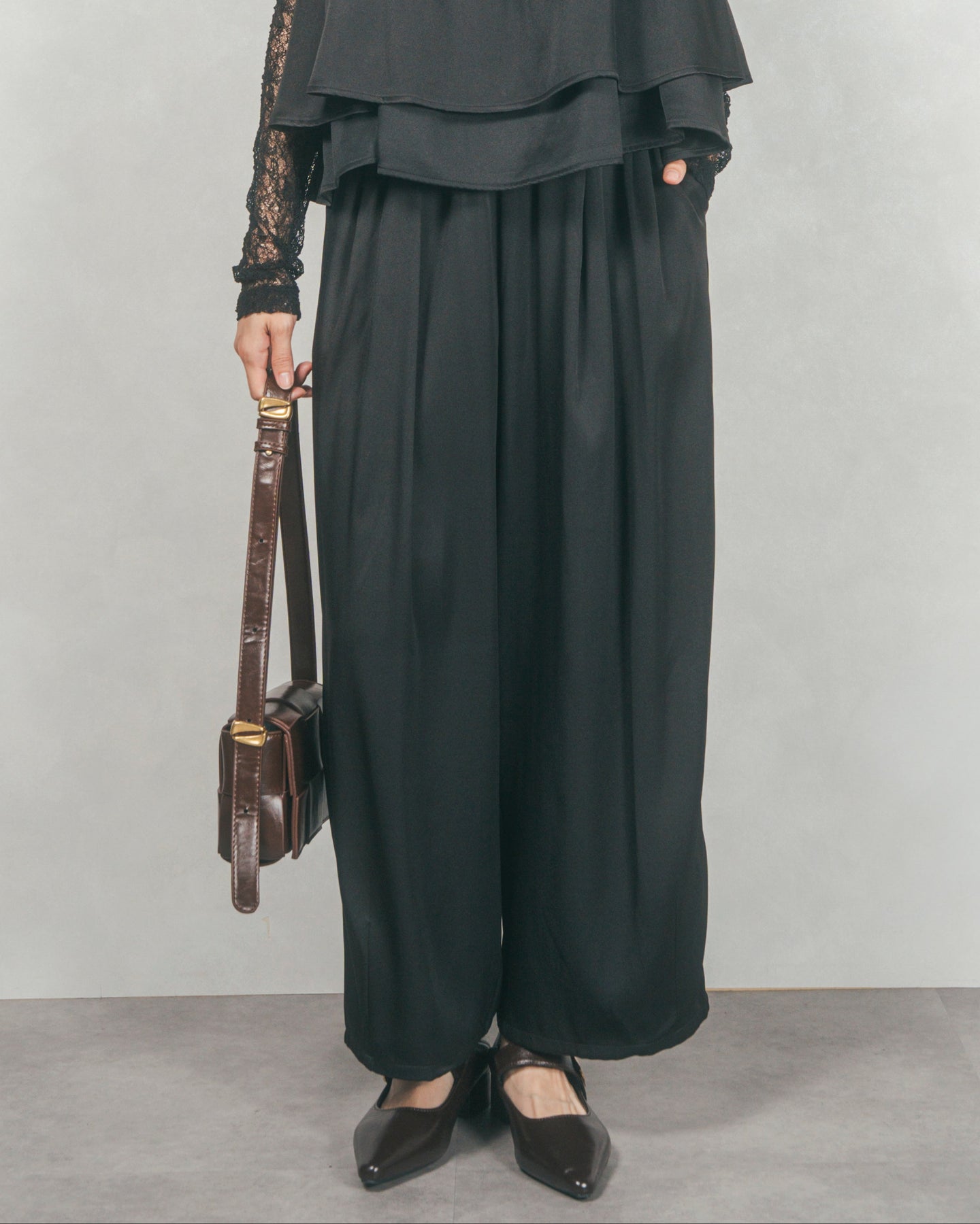 ストレスフリーな着心地と、洗練されたシルエットを両立したリラックスコクーンパンツが登場。ウエストは嬉しいオールゴム仕様で、脱ぎ着もらくらく。ゆったりと丸みを帯びたコクーンシルエットが、気になる腰回りや太ももをさりげなくカバーしながら、こなれ感のあるスタイルに導いてくれます。しなやかな落ち感のある素材で、動きやすくシワになりにくいのも嬉しいポイント。シャツやブラウスと合わせればオフィスカジュアルに、スウェットやTシャツと合わせればリラックス感のある休日スタイルに。日常からちょっとしたお出かけまで、幅広いシーンで活躍する万能パンツです。