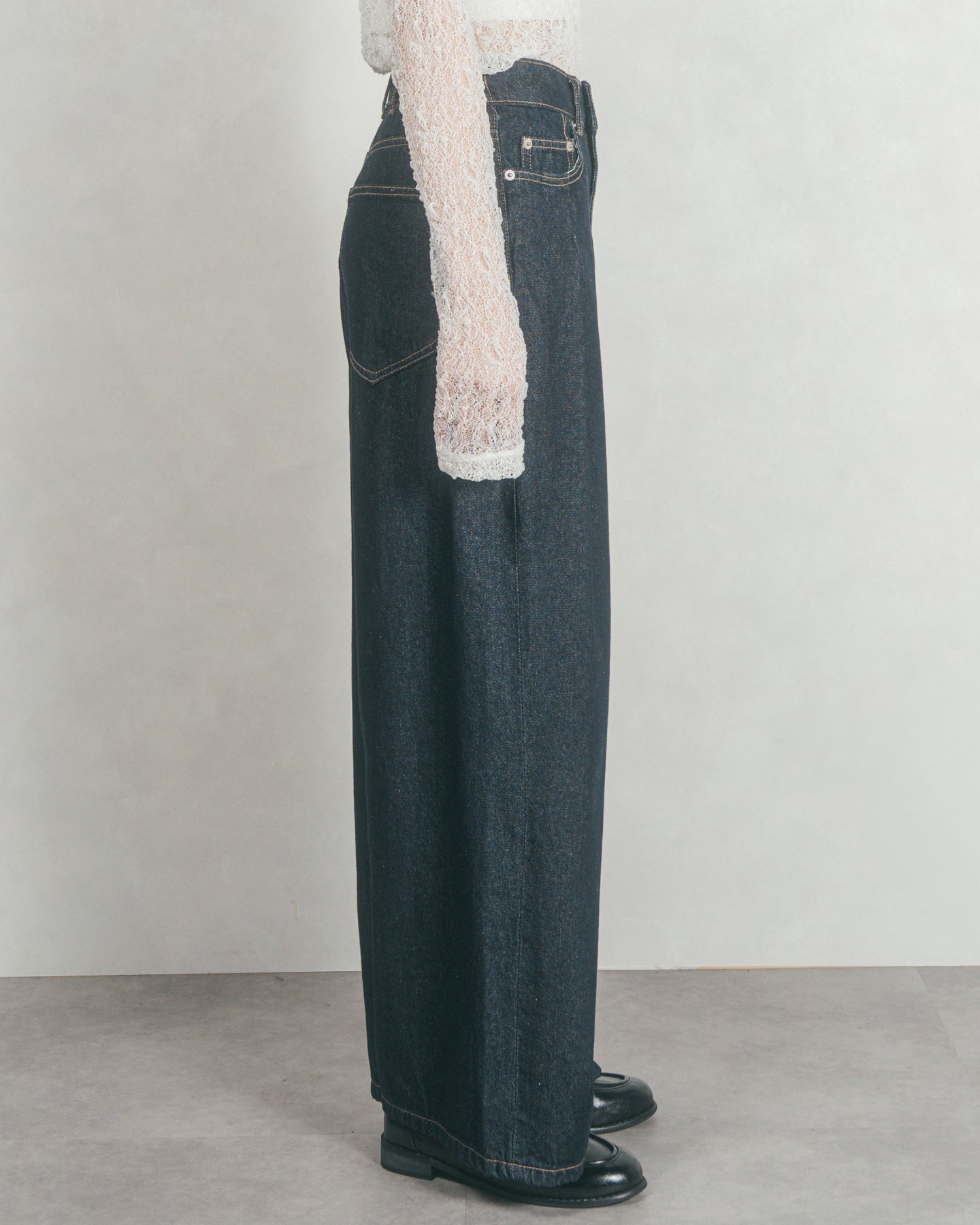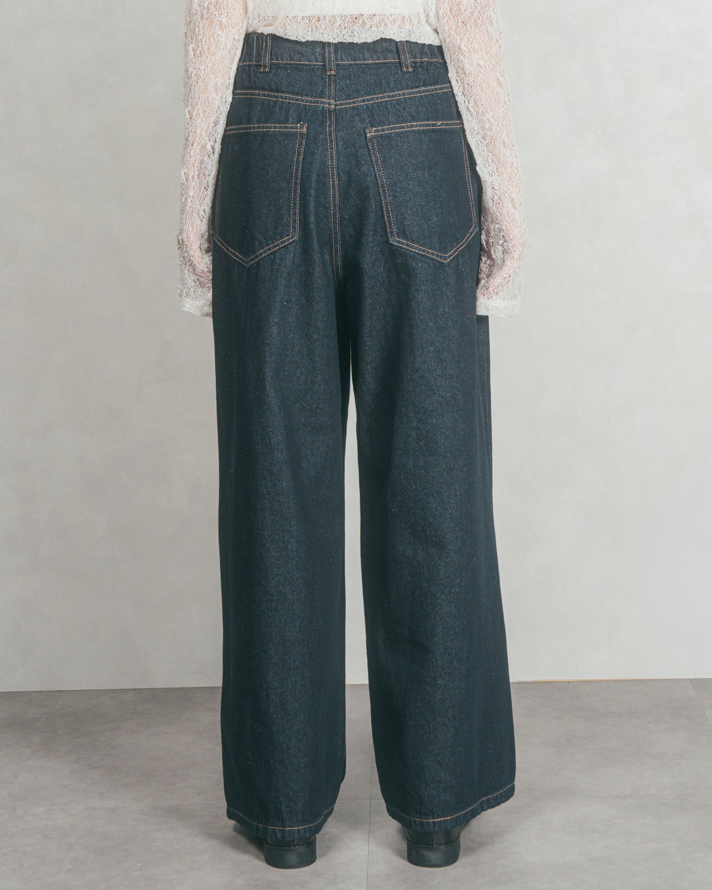シルエットの美しさと穿き心地の良さを両立した、程良くワイドなストレートデニムパンツ。フロントポケットにさりげなくタックを施し、シンプルながらもニュアンスのある一本に仕上げました。サイドウエストにはゴムを入れて、フィット感と快適さを両立。動きやすくストレスフリーな着用感で、デイリーに頼れるアイテムです。