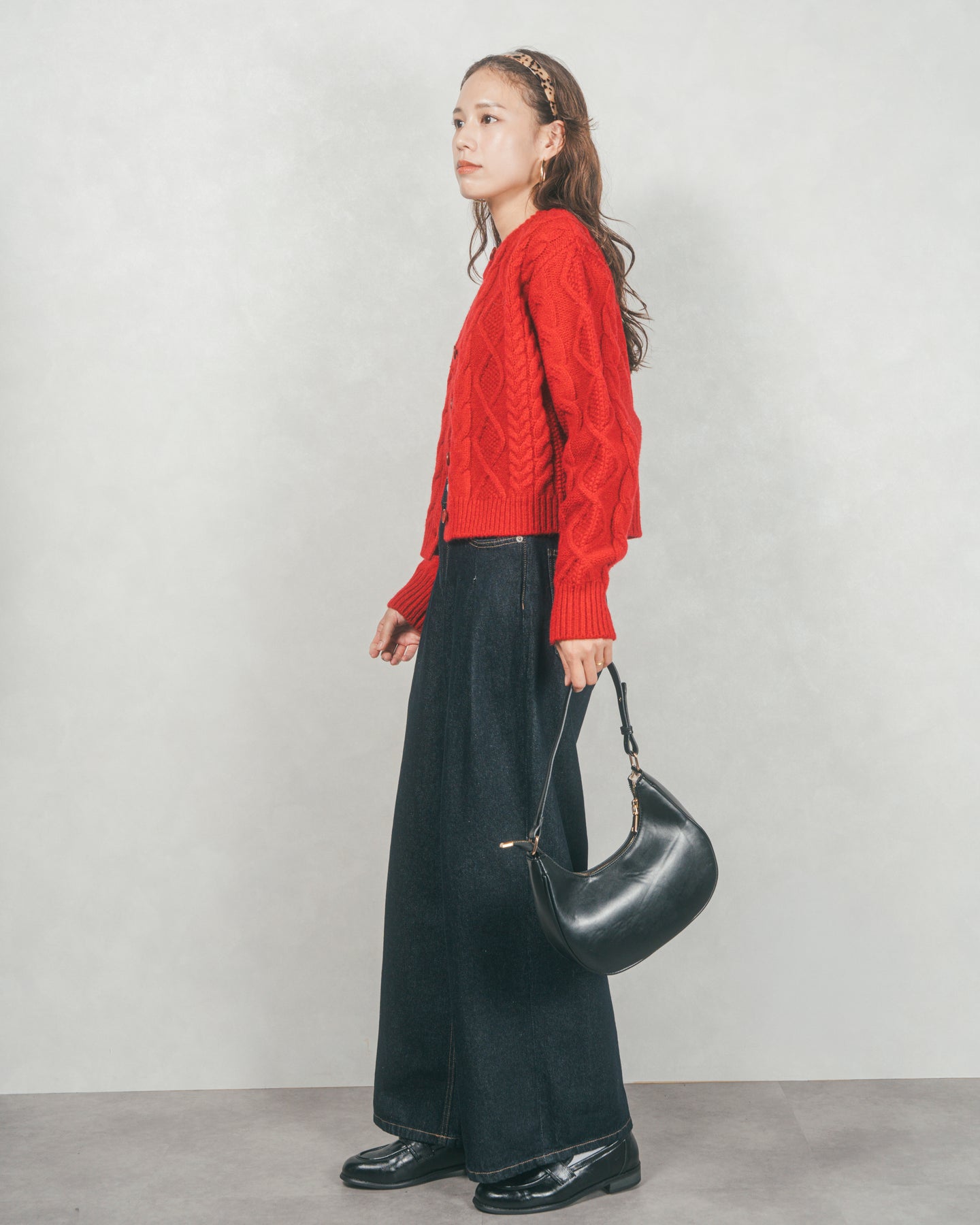 シャツやニットはもちろん、コンパクトなトップスとも好相性。トレンドに左右されず、ワードローブに一本は持っておきたいデニムです。