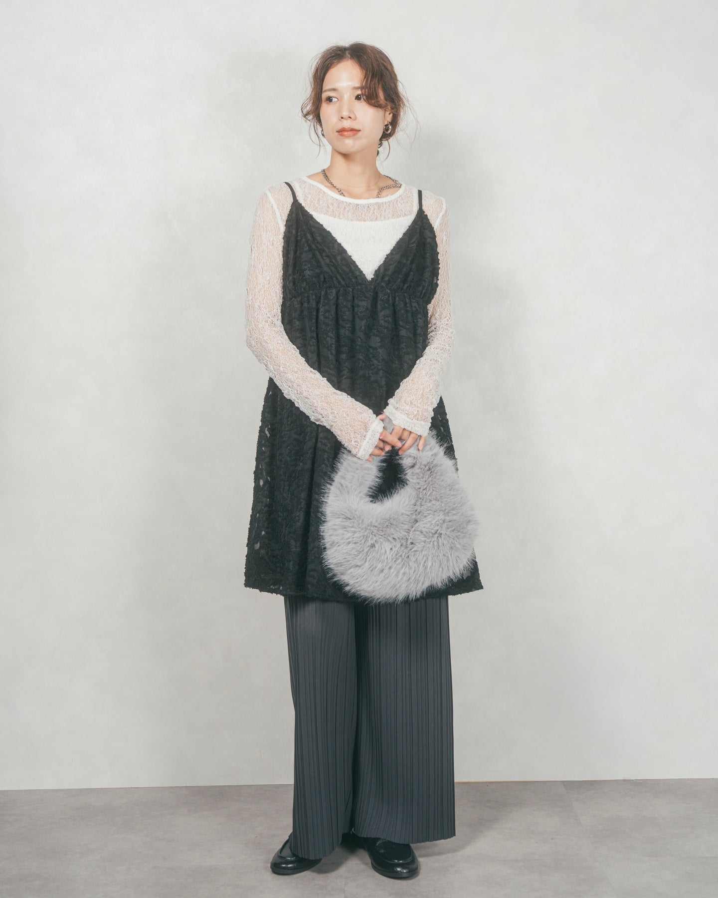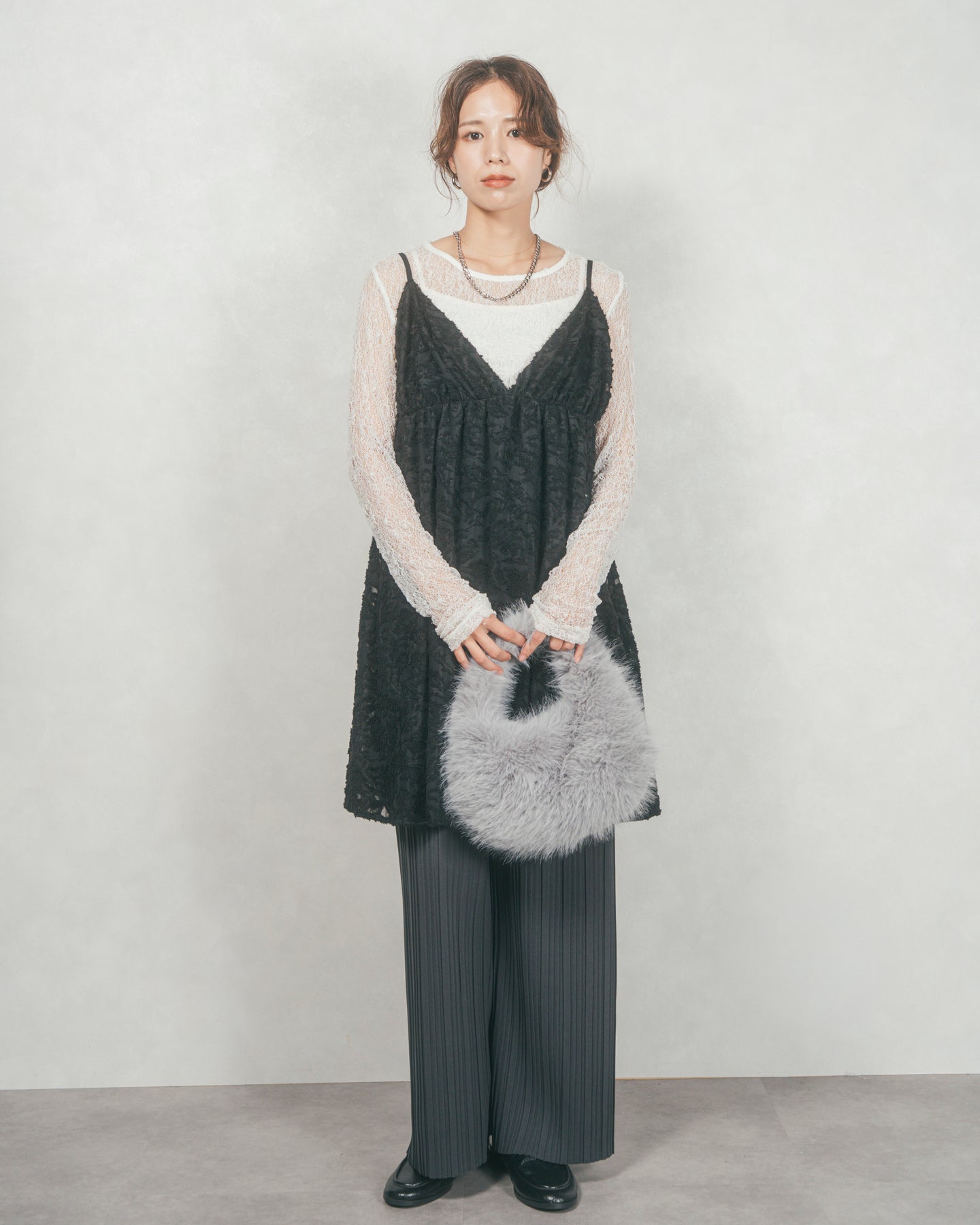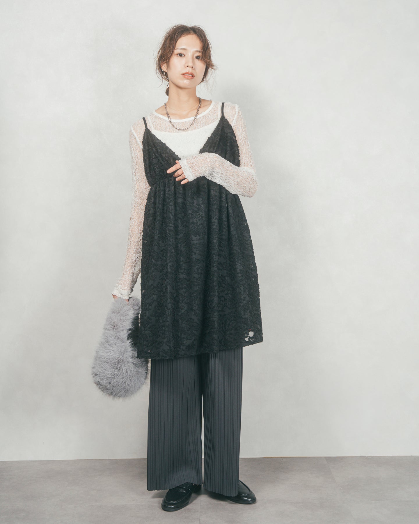 落ち感のあるしなやかな生地が脚のラインをまっすぐに整え、動くたびに揺れるプリーツが上品な印象をプラスしてくれます。ワイドすぎない程よいシルエットで、リラックス感がありながらもラフになりすぎない絶妙なバランス。