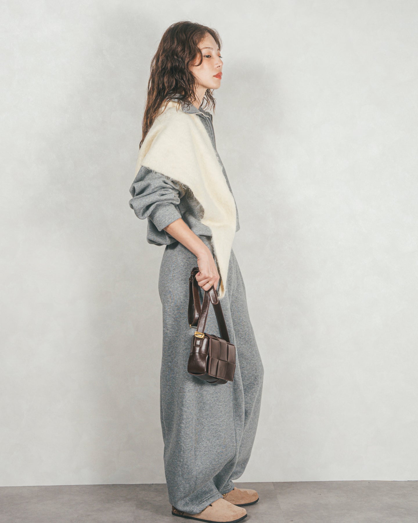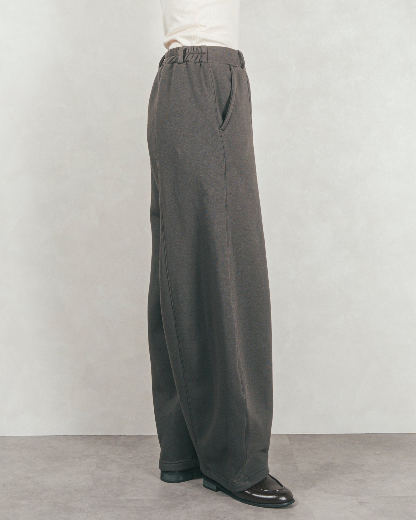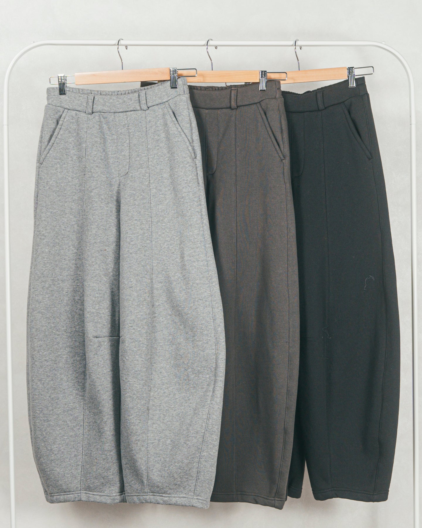 ボリューム感やシルエットの新鮮さで注目を集めている、カーブシルエットのスウェットパンツ。ゆったりとした分量感が脚のライン拾わず、体型カバーがあるのも嬉しい◎ ウエストゴムの仕様で、リラックスムードたっぷりなアイテムです。