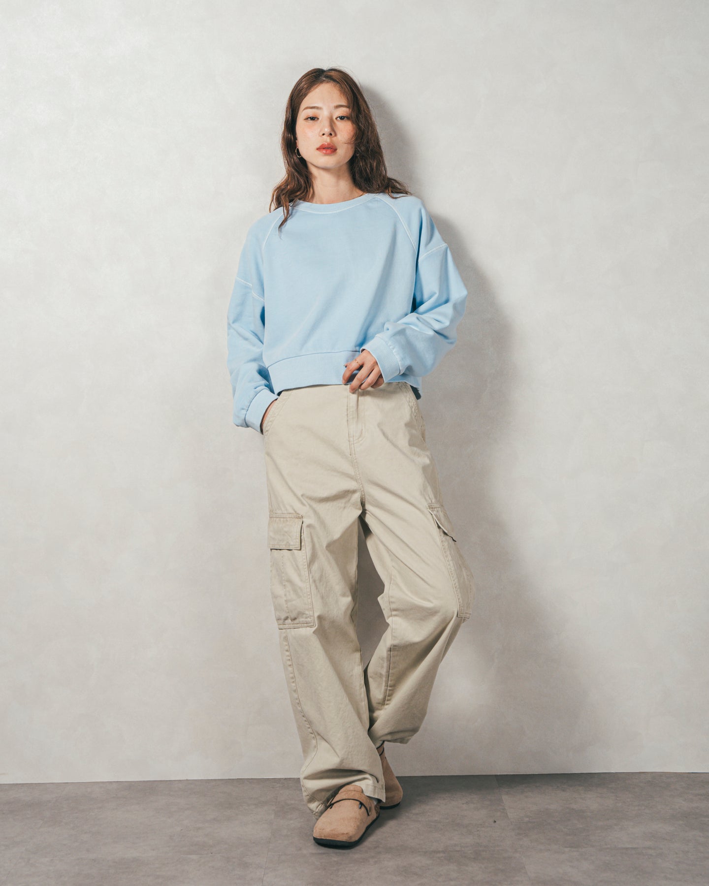 [SET]ヴィンテージ風裏毛プルオーバー+ピグメントツイルカーゴパンツ(2SET)