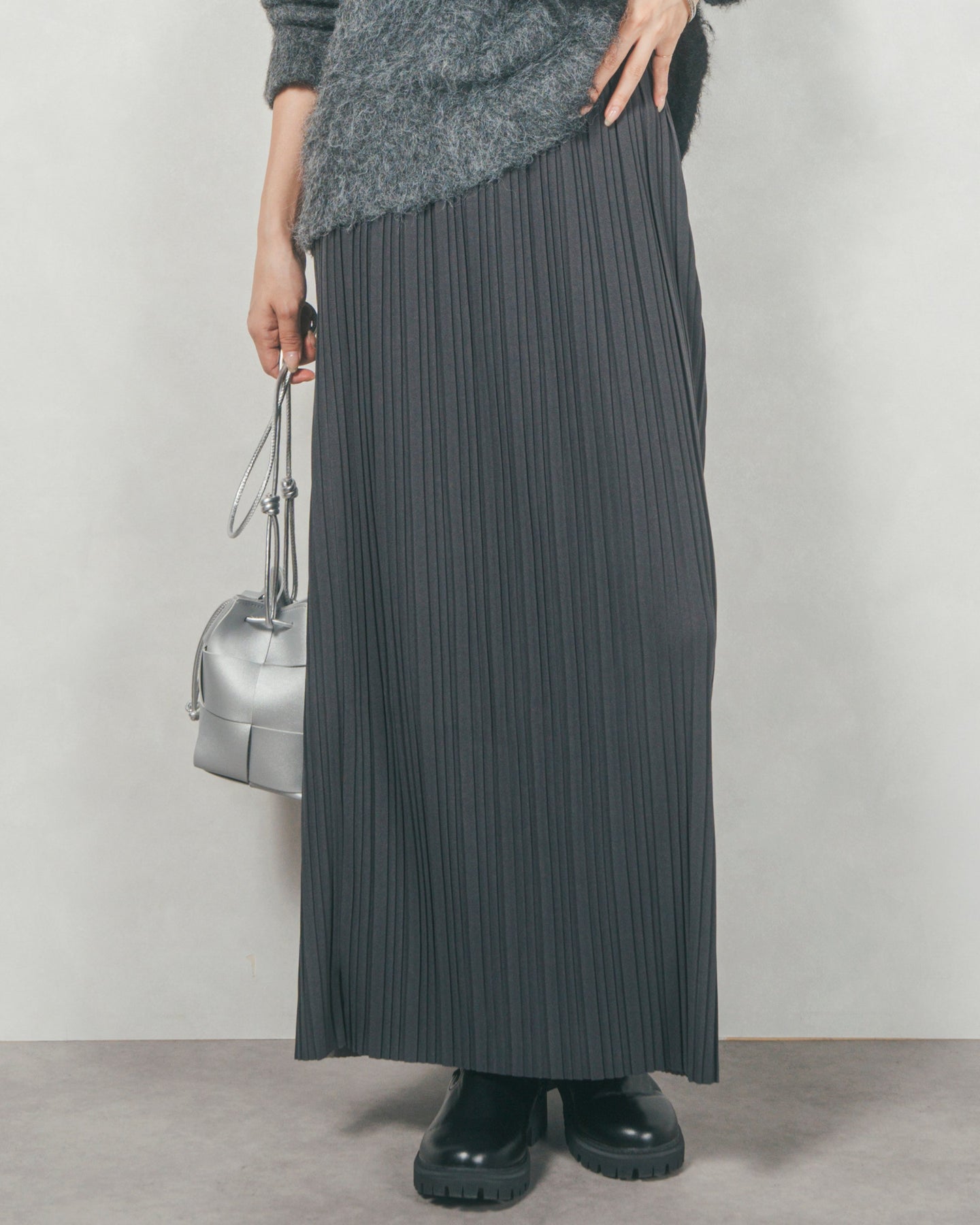 プリーツNarrowロングスカート (CHARCOAL)