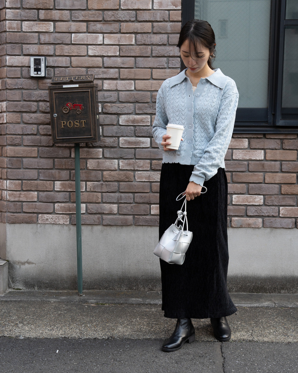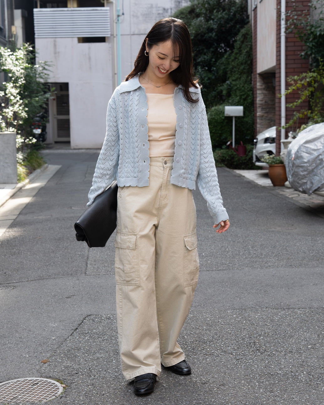 ボタンを全部留めて「襟付きニットトップス」として着るのがおすすめです。