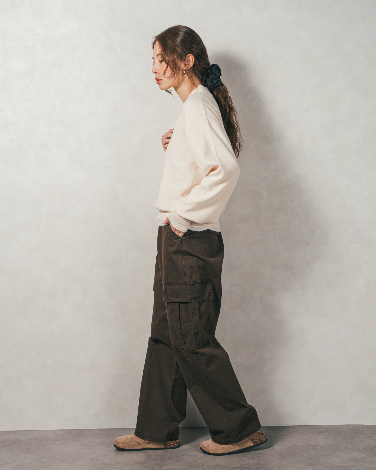 ディテールにこだわりが光る、レディーライクなシルエットのカーゴパンツ