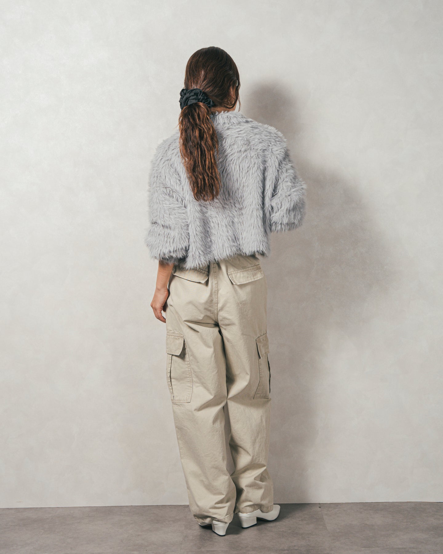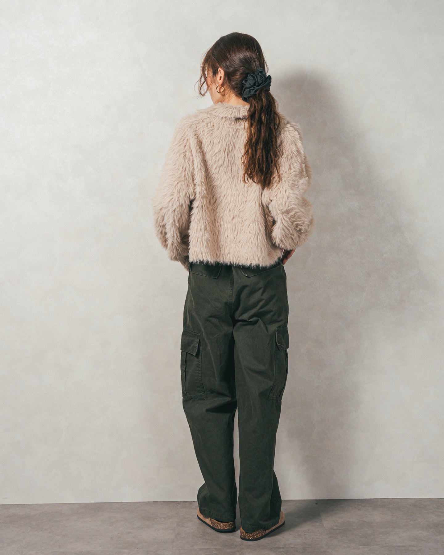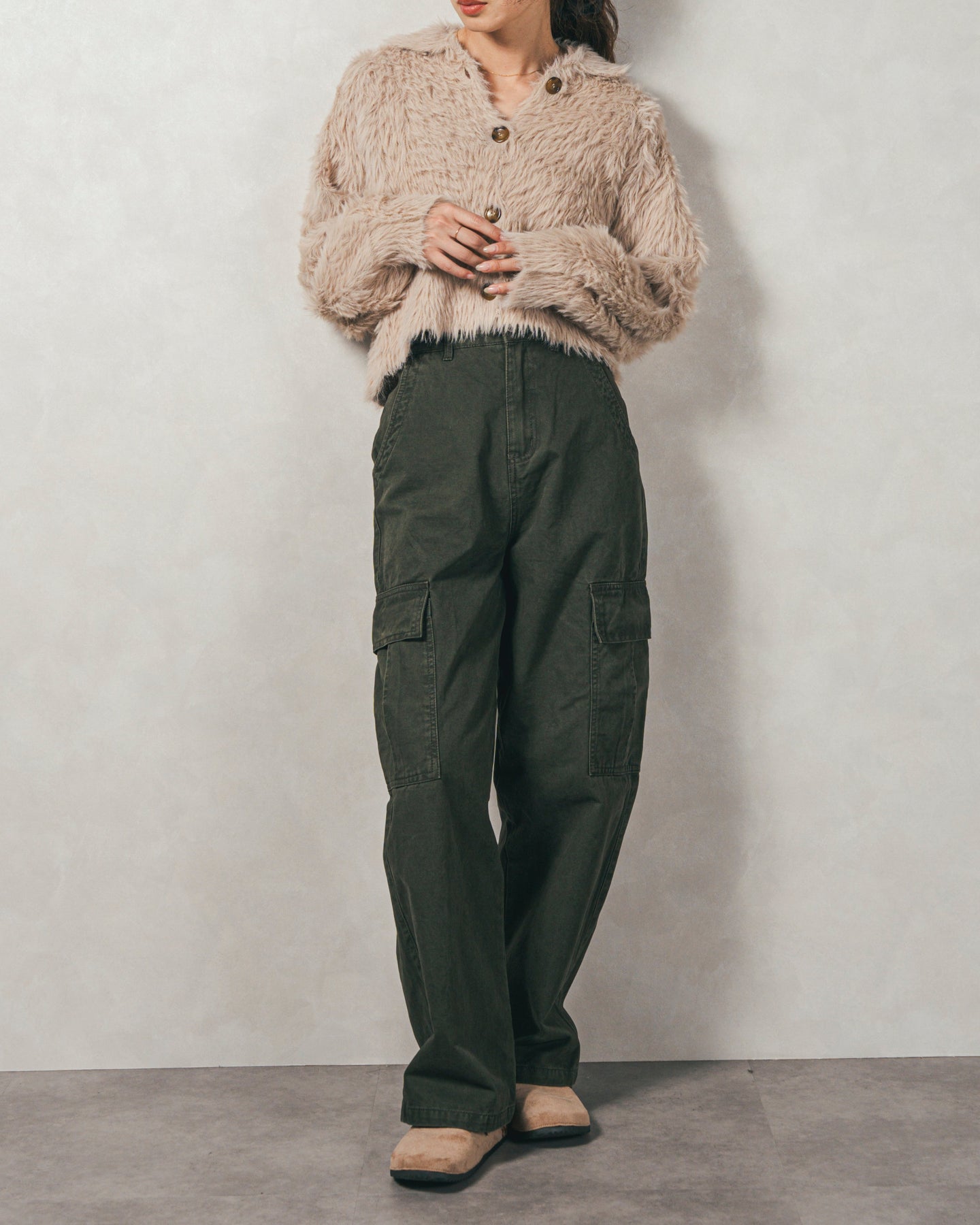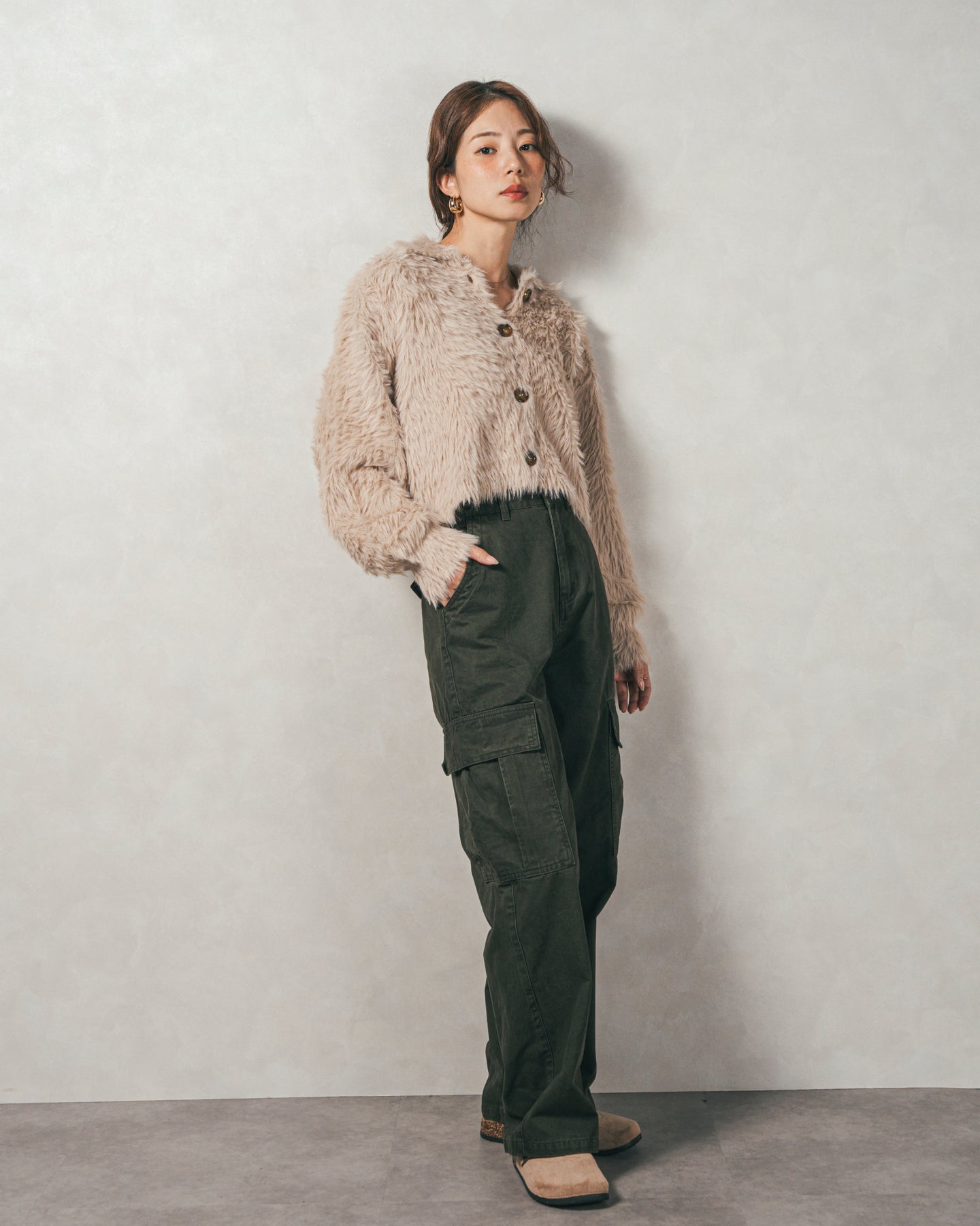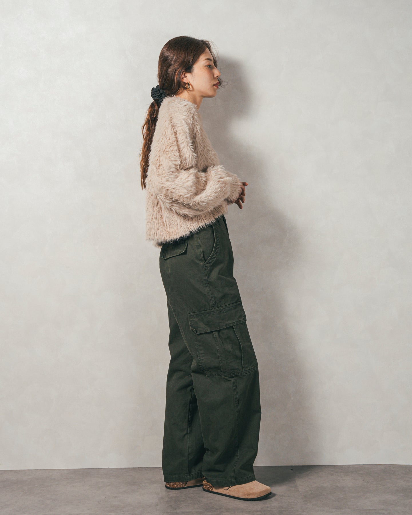 [SET]フェザーヤーン 衿付きカーディガン+ピグメントツイルカーゴパンツ(2SET)