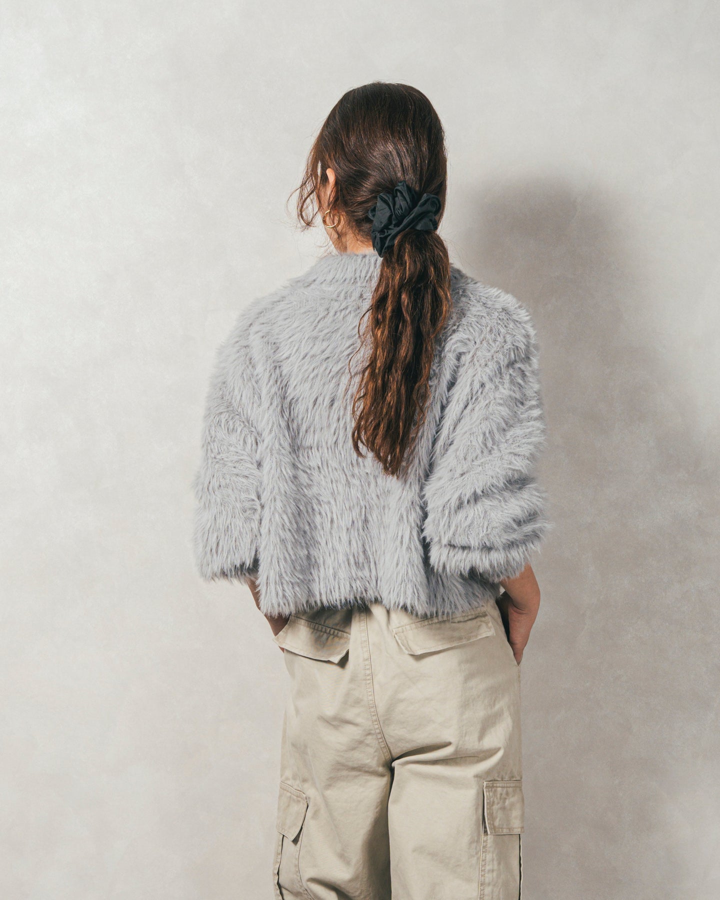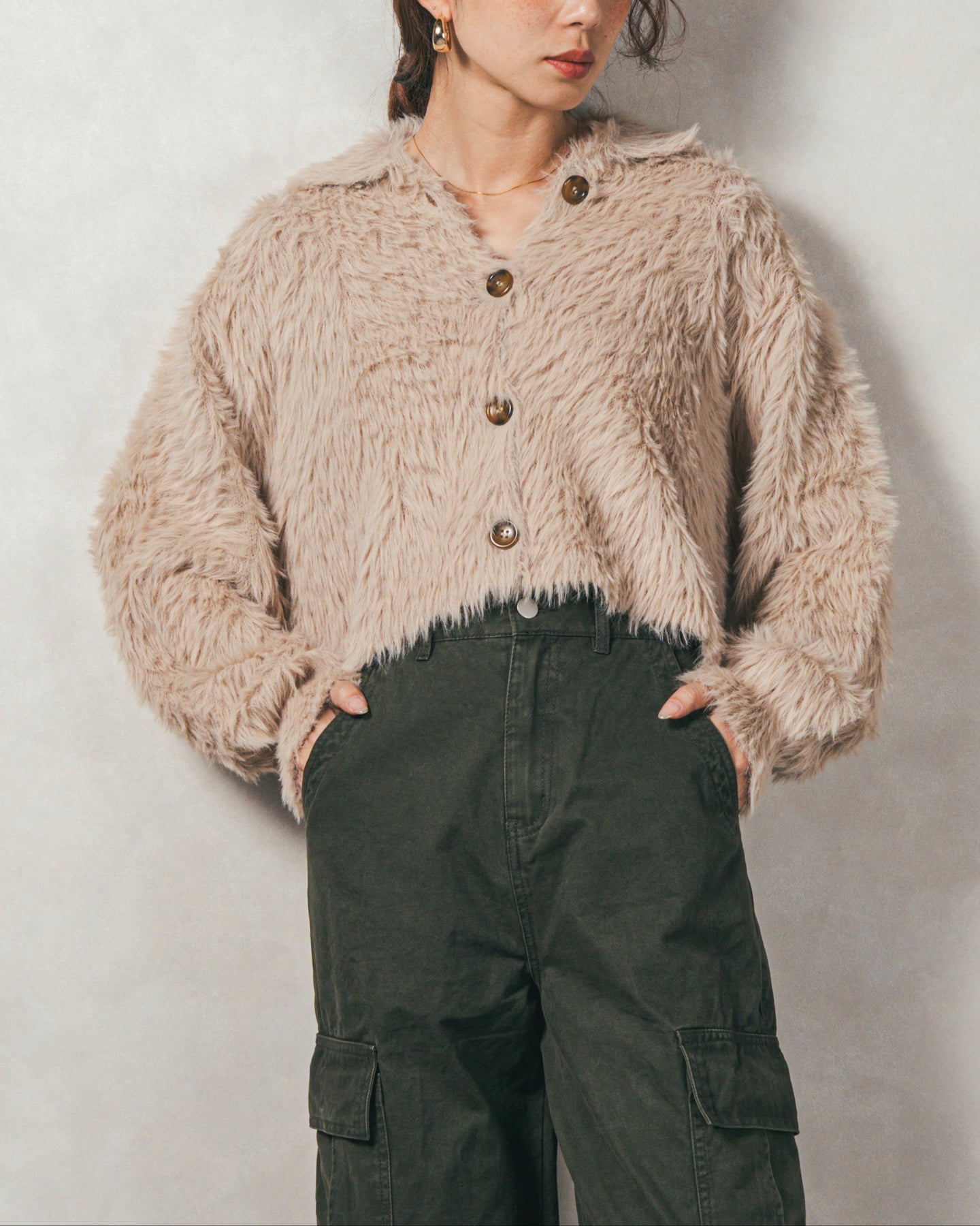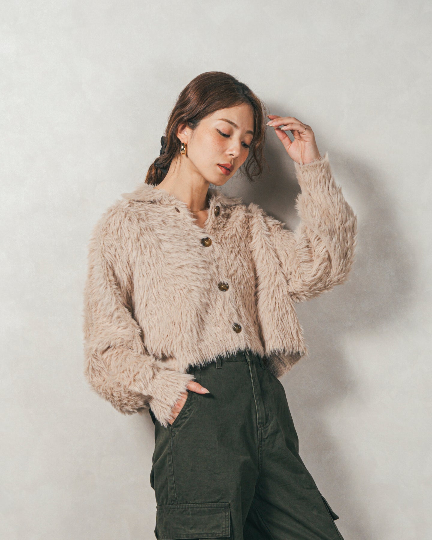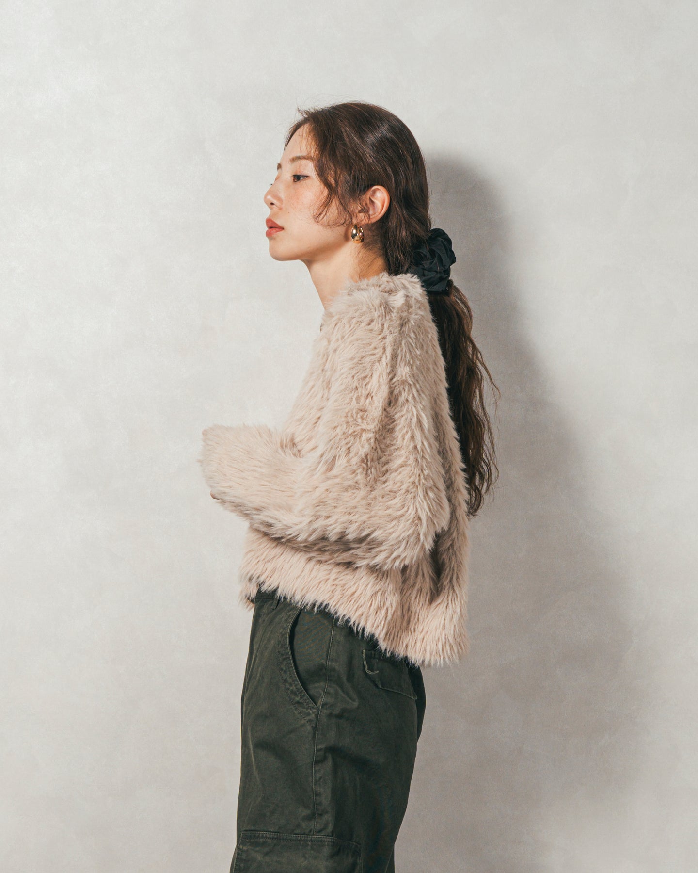 ボリューミーになりすぎない、ふわふわフェザーのトレンドカーデ