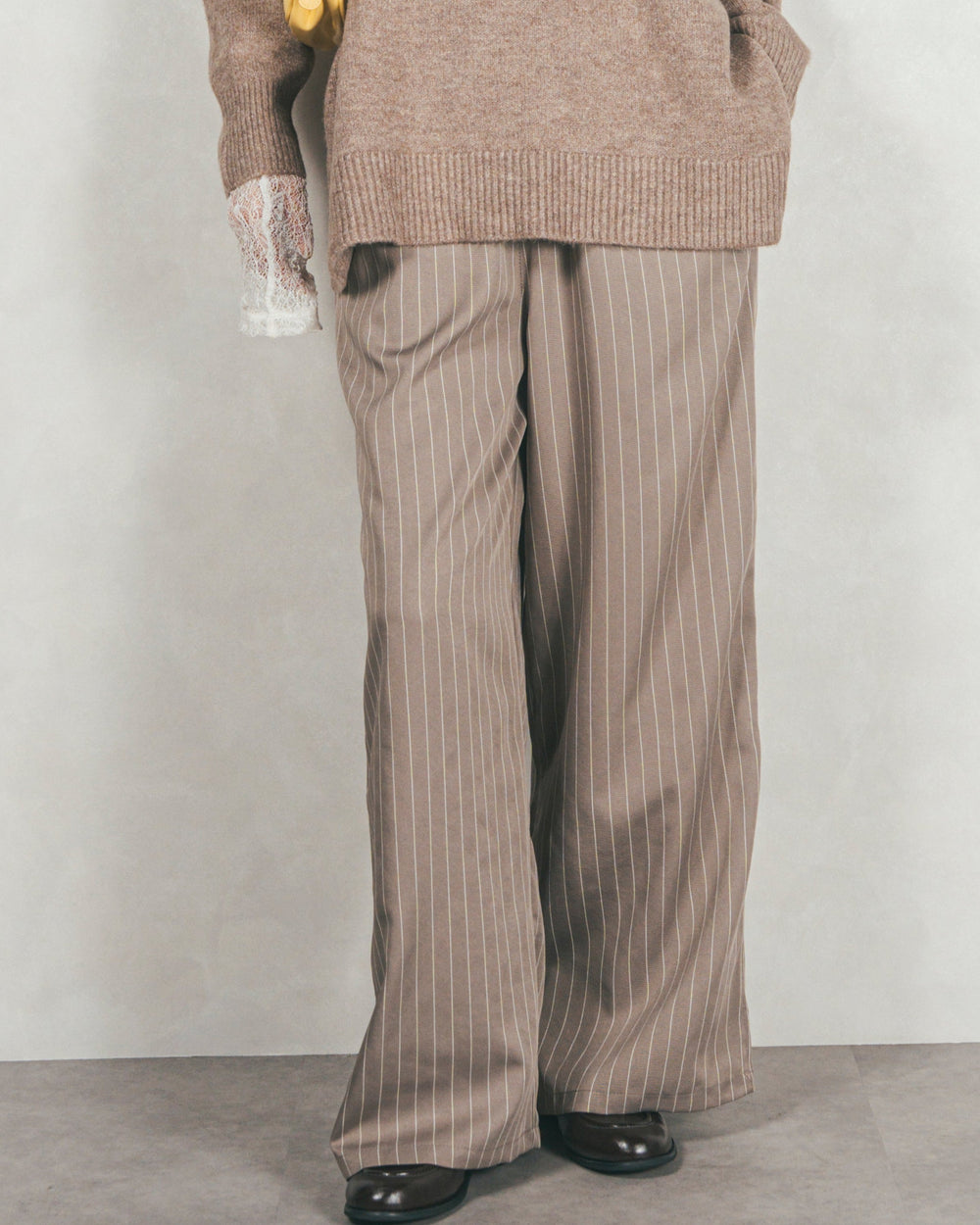 [SET]サイドスリット襟付きスキッパーニット+Relaxストライプパンツ