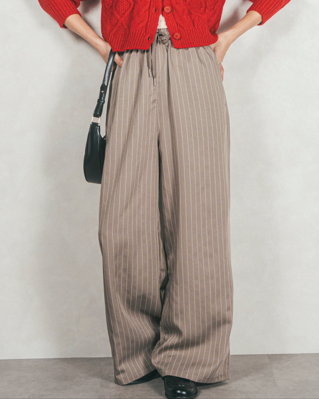 [SET]ケーブルKnitクルーカーディガン+Relaxストライプパンツ